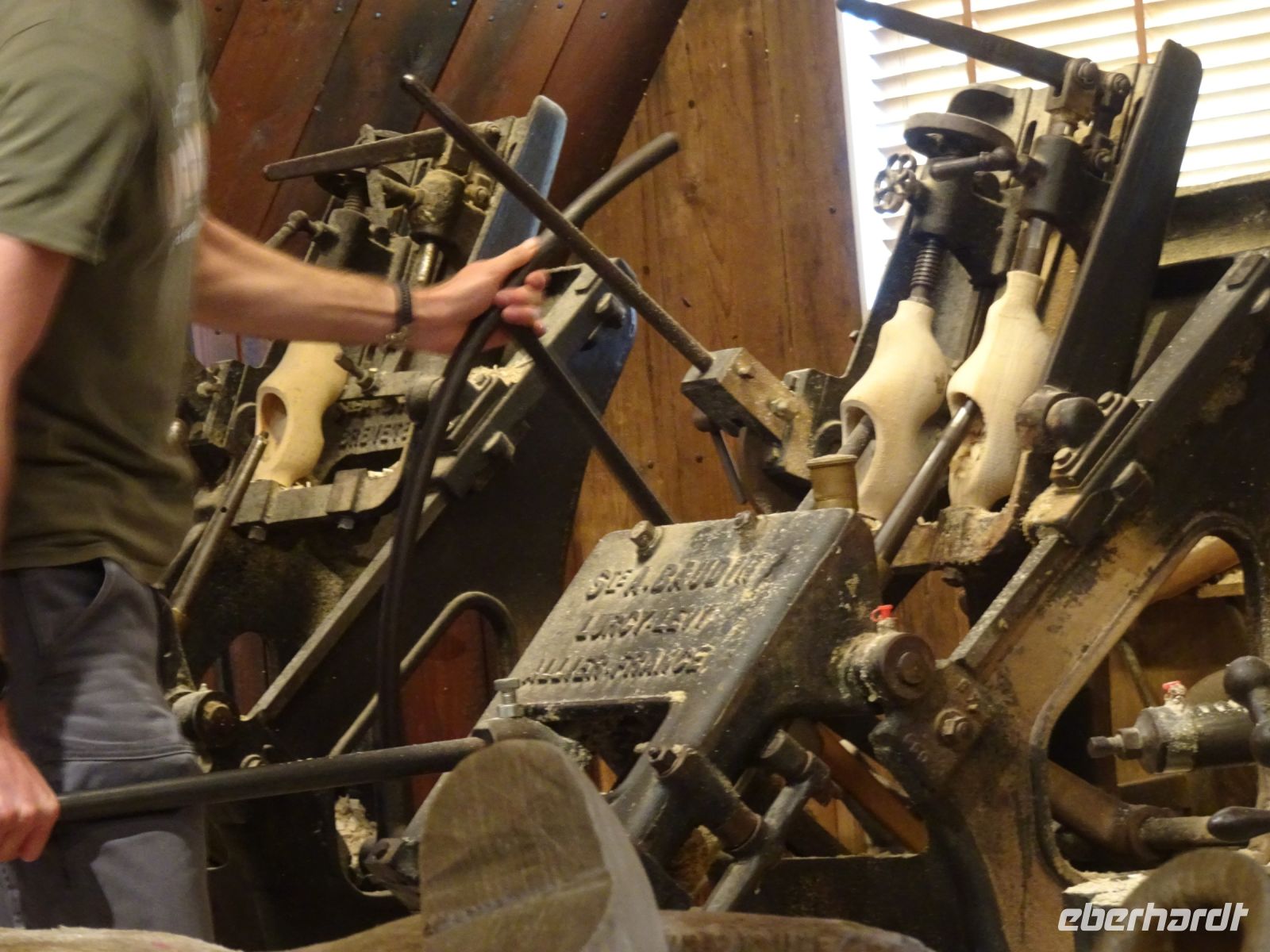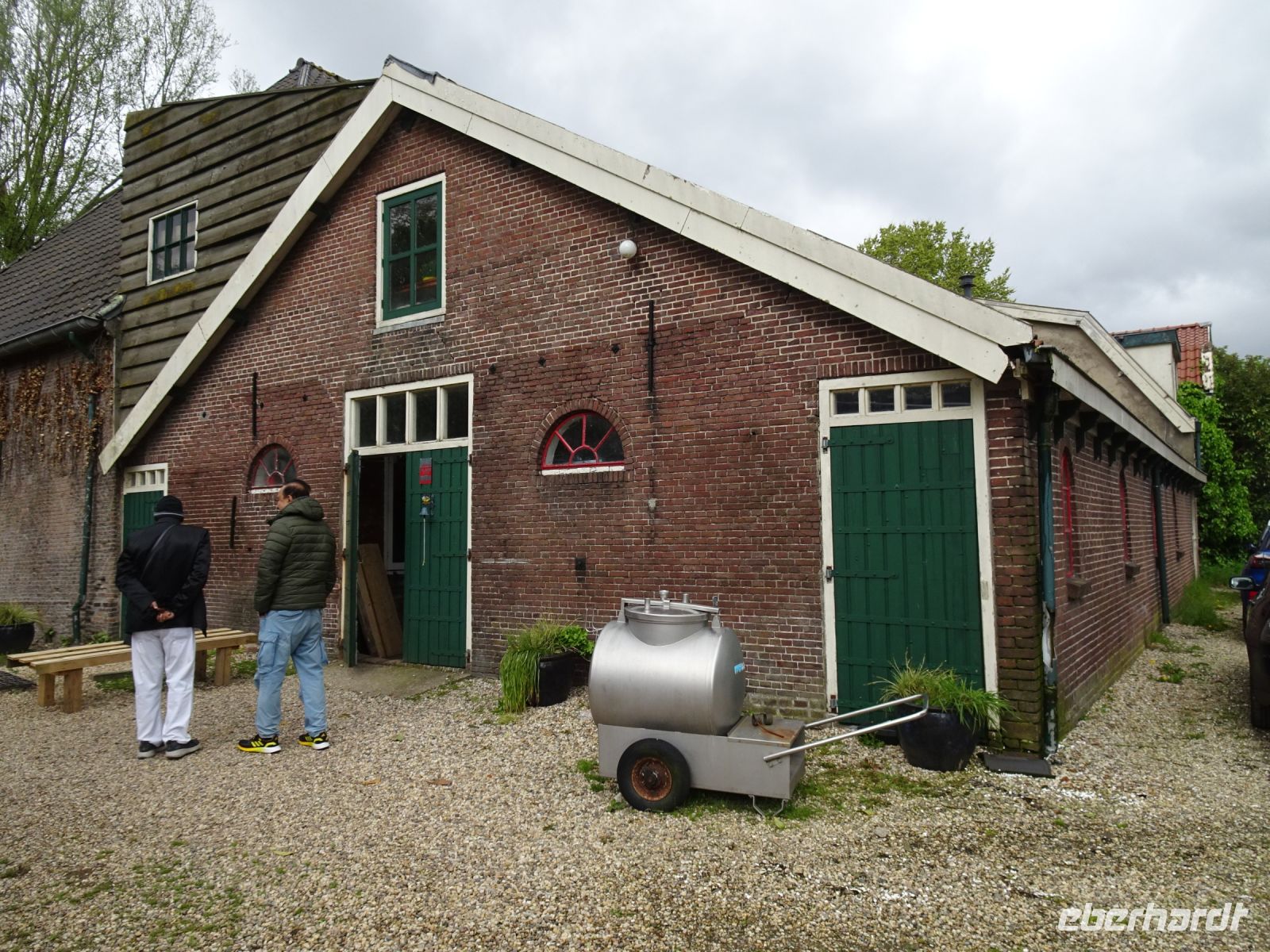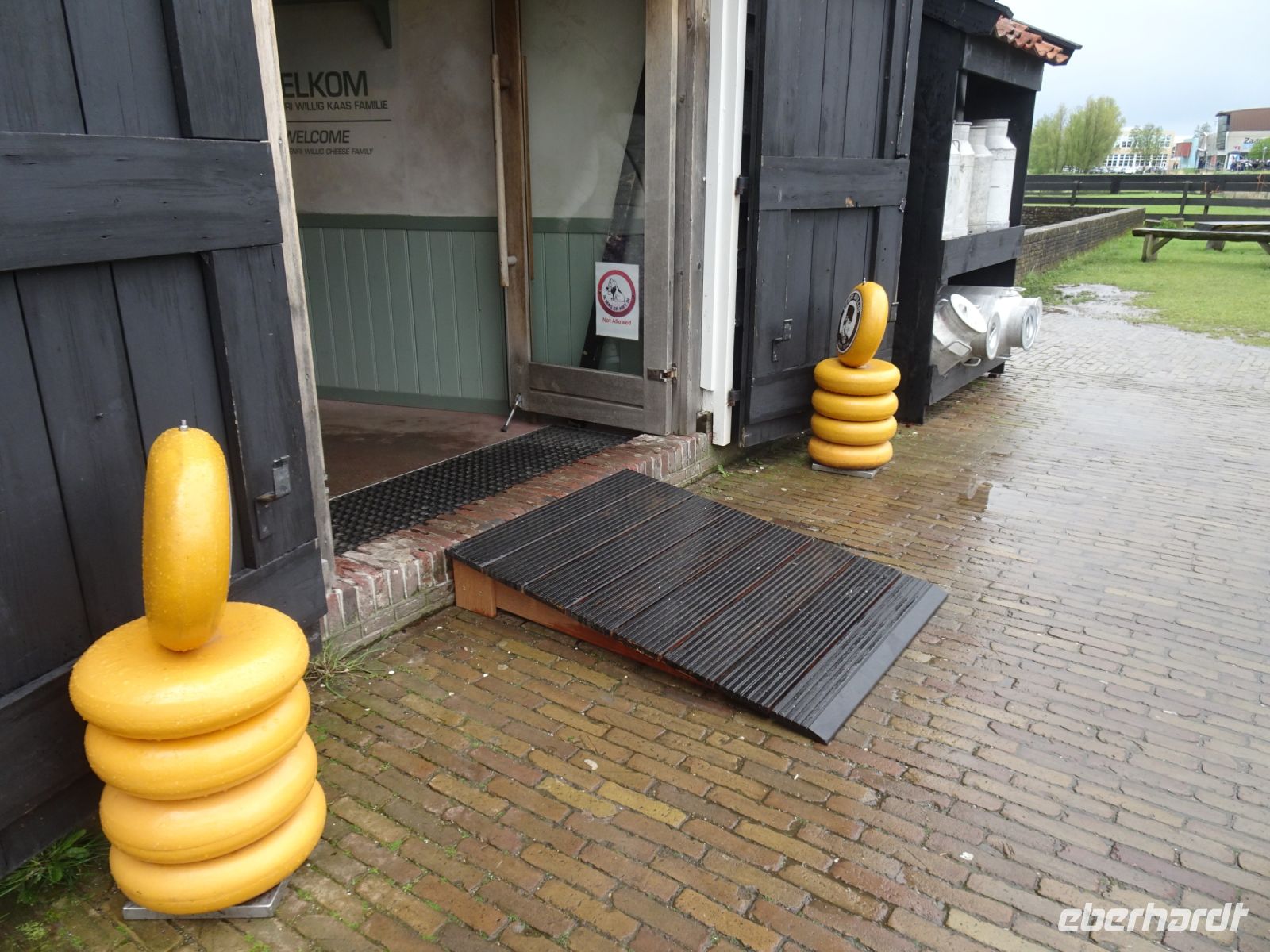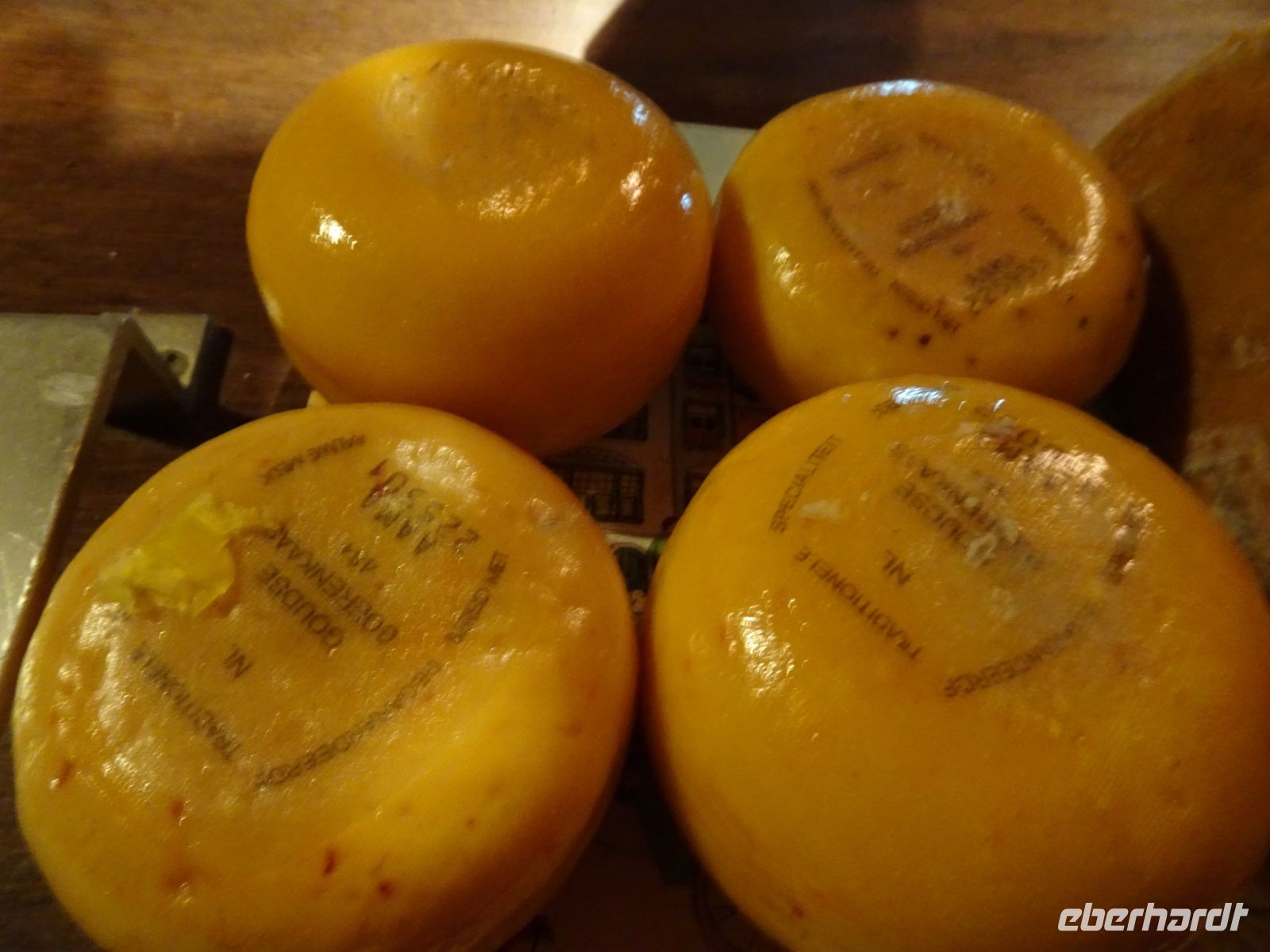 Durch unseren Busstandort in Sassenheim konnten wir auch nach dem Korso problemlos zu unserem nächsten Reiseziel starten: den Rembrandt Hoeven bei Amsterdam. Im Gegensatz zu den Catharina Hoeven in Zaanse Schans sind die Rembrandt Hoeve ein aktiver Bauerhof. Die Kühe auf dem Hof begrüßten uns arttypisch. Eine kurze Darstellung der Käseherstellung mit dem Verweis auf den für eine bäuerliche Hofproduktion kennzeichnenden Erzeugerstempel machten Appetit auf den anschließenden Verkauf. Schon bekannt war mit den historischen Maschinen die Holzschuhferigung. Säcke voll Holzschuhen zeigten uns, dass hier nicht nur museal sondern wirtschftlich gearbeitet wird. Der anschließende Hofladen verzeichnete dann sehr gute Umsätze, da ja am Sonntag bereits der Heimreisetag anstand.
