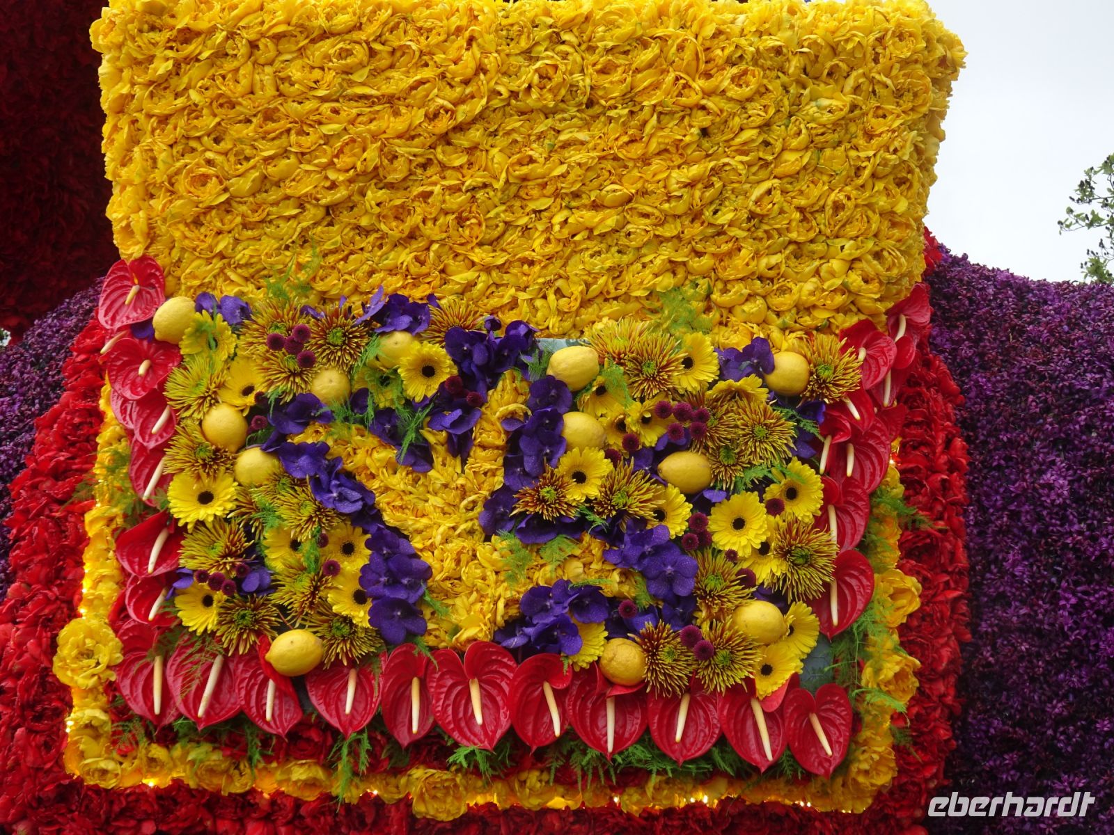 Über 45 Minuten ging der Zug an uns vorbei. Dabei konnten wir viele der Fahrzeuge und Korsowagen vollständig geschmückt sehen, die am Donnerstag noch geschmückt wurden. Eine Bilderauswahl finden Sie in der Bildergalerie. Und auch ein kurzer Videoclip ist auf der Facebookseite bei EBERHARDT Travel eingestellt. Da haben die kurzen Schauer nicht gestört, alle waren begeistert.