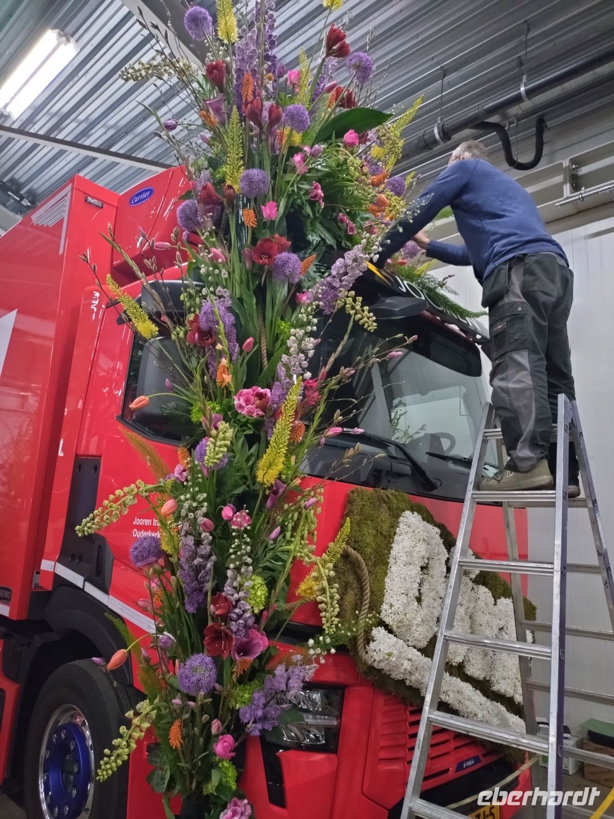 Weiter ging es am Nachmittag gemäß dem Motto unserer Reise nach Noordwijkerhout zur Besichtigung der Vorbereitungen der Festwagen zum Blumenkorso.