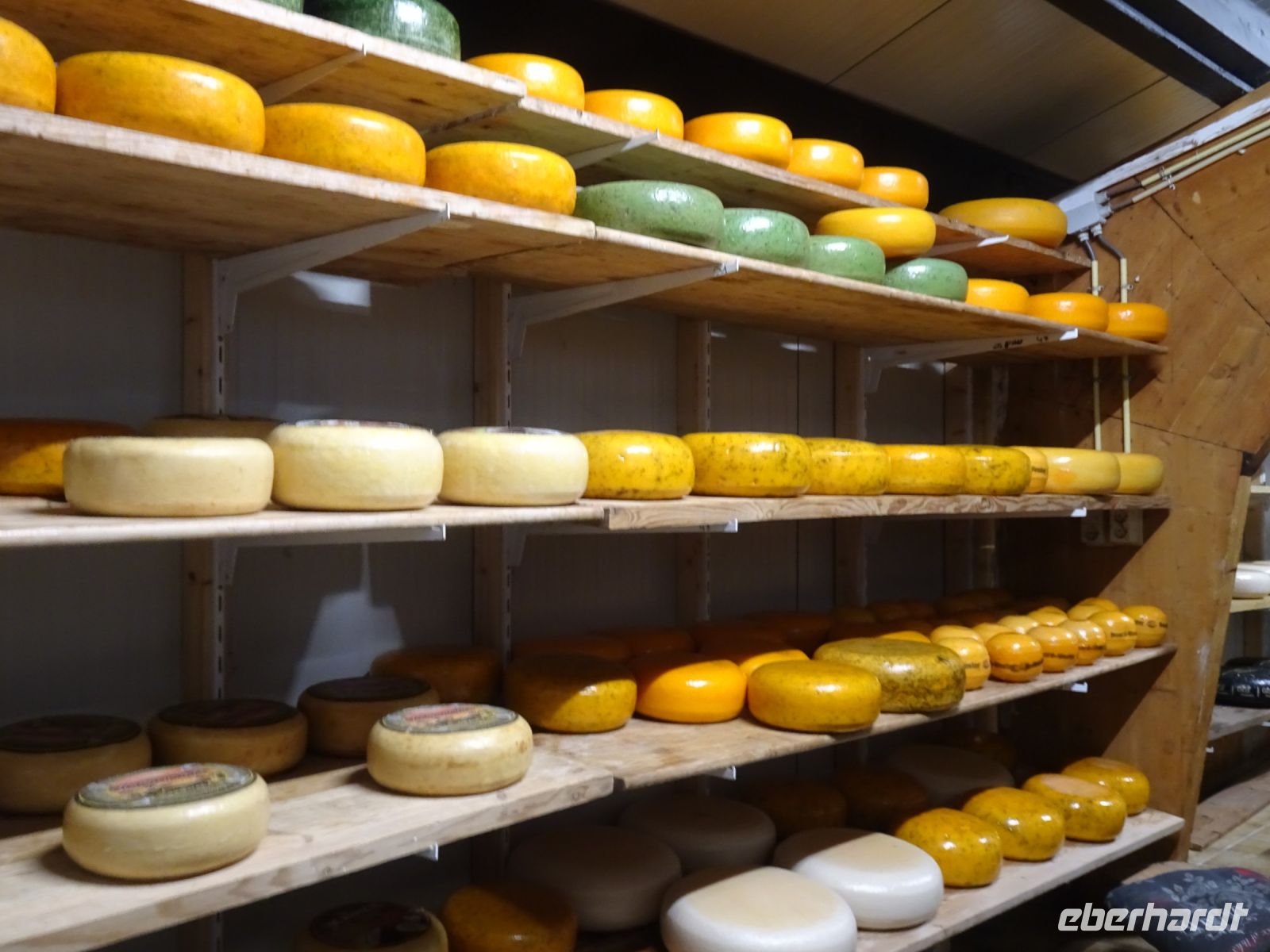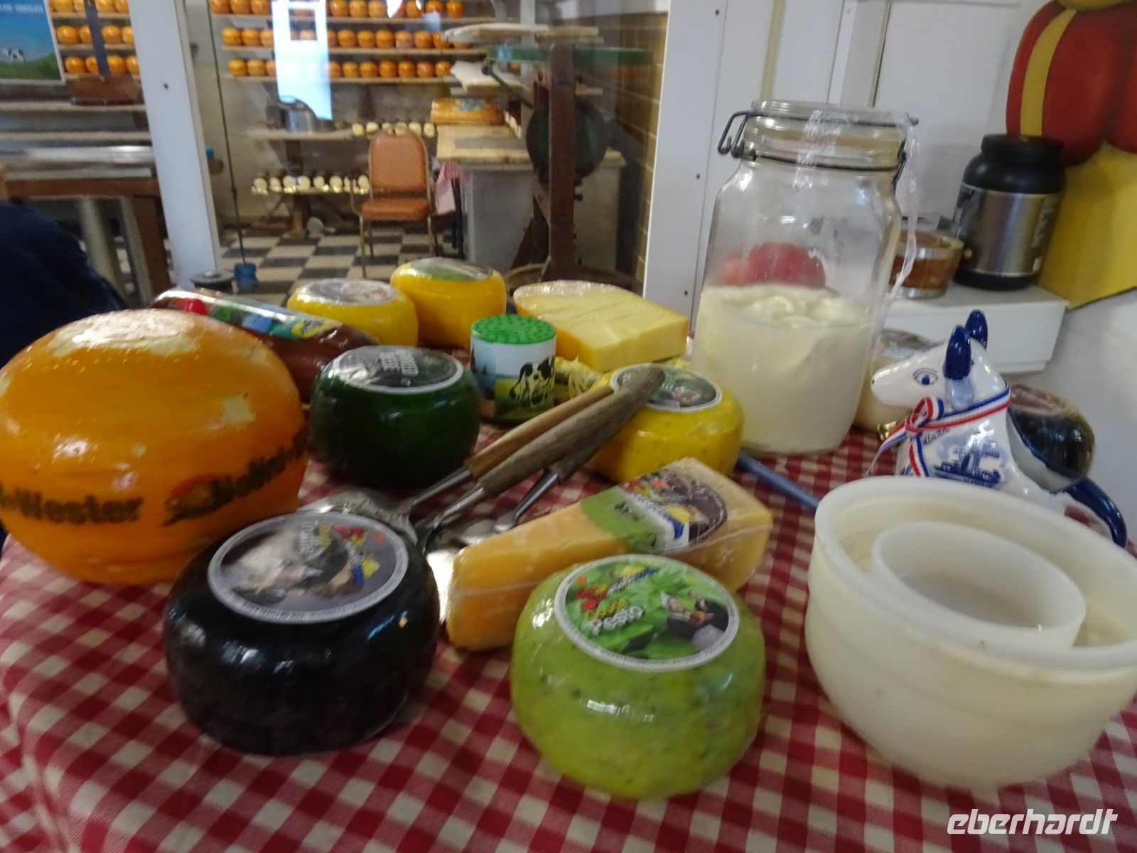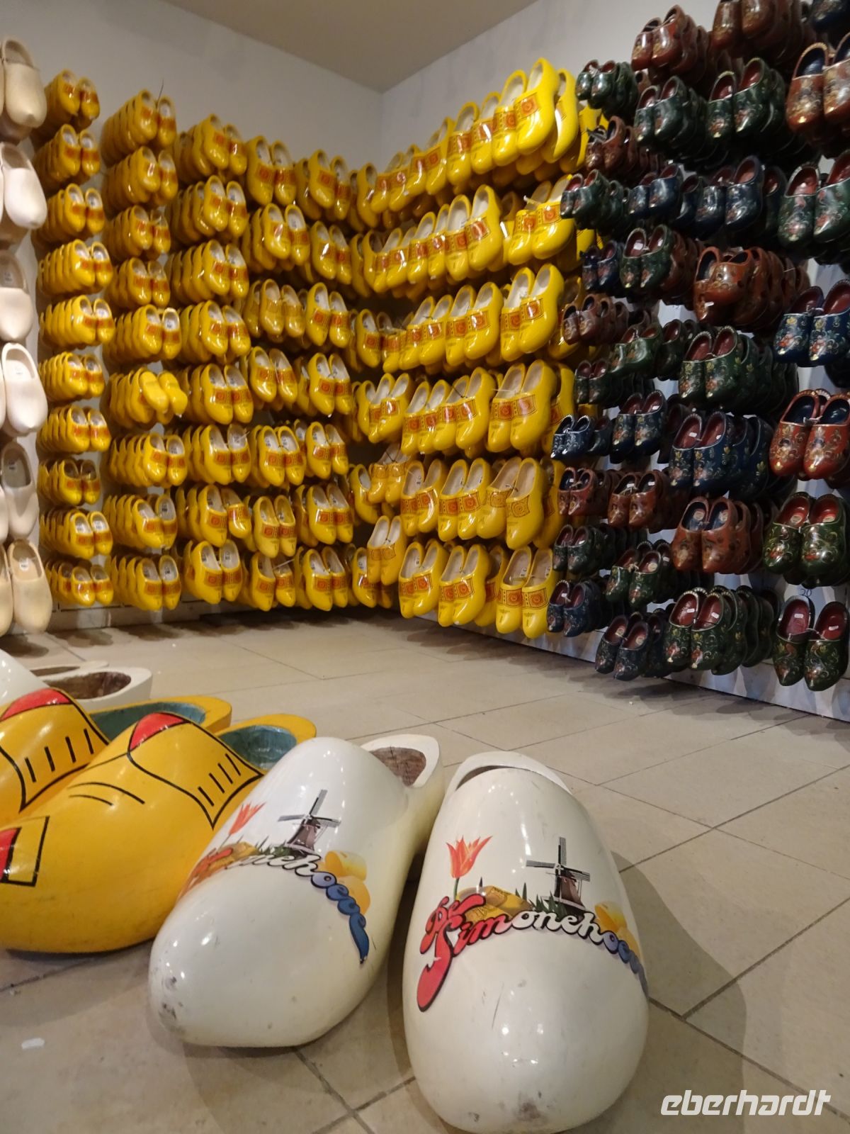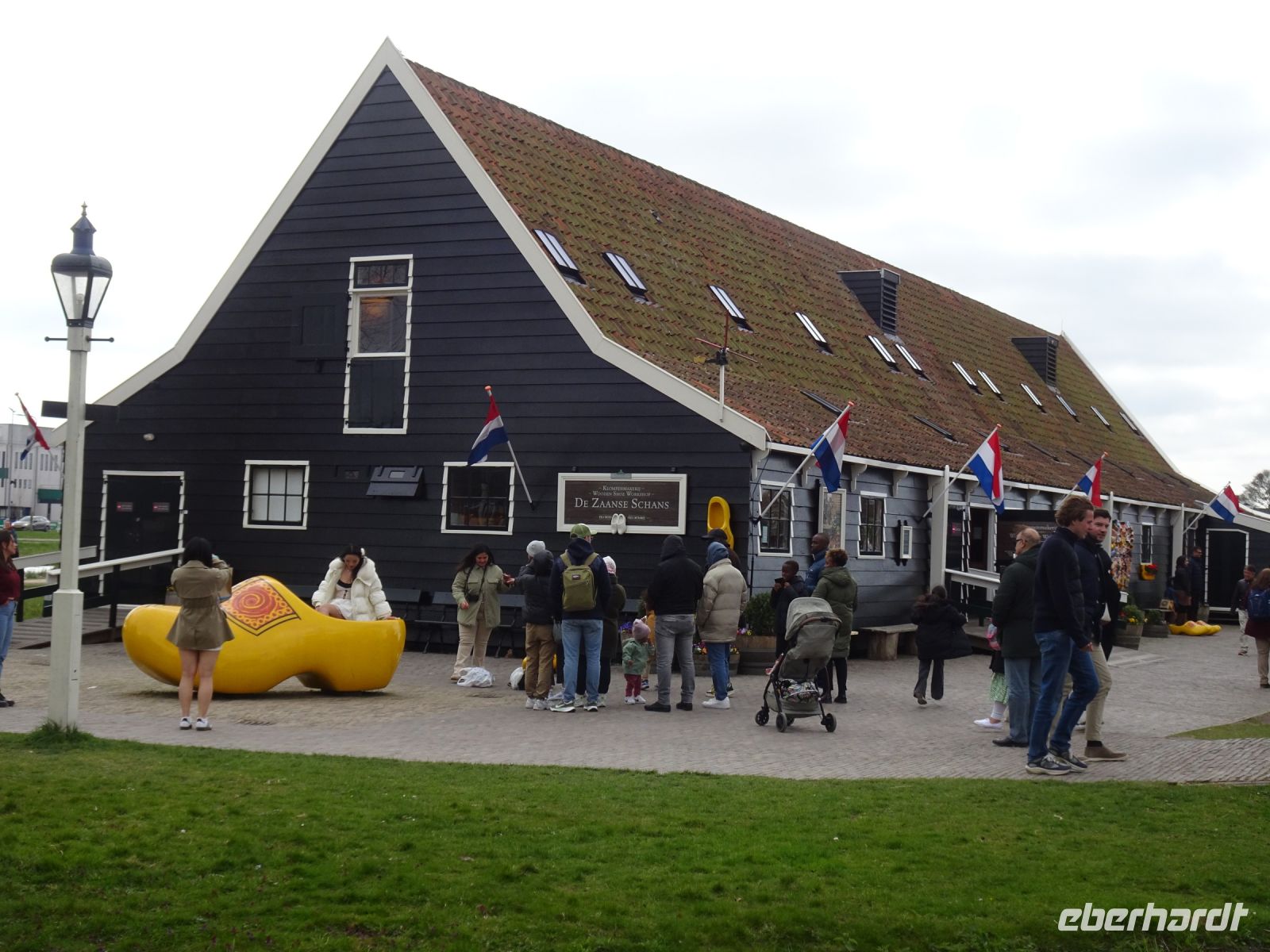 Am Nachmittag stand dann der Besuch des typischen Hollanddorfes Zaanse Schans auf dem Programm. Ein typischer Bauernhof, die Catharina Hoeve mit der Käserei von Henri Willig, die Vorführung der Holzschuhfertigung mit Ausstellung vielfältiger Holzschuhe von praktisch bis edel, eine große Zahl an Verkaufsständen von Diamanten bis Süßigkeiten und natürlich mehrere Mühlen waren zu besichtigen.