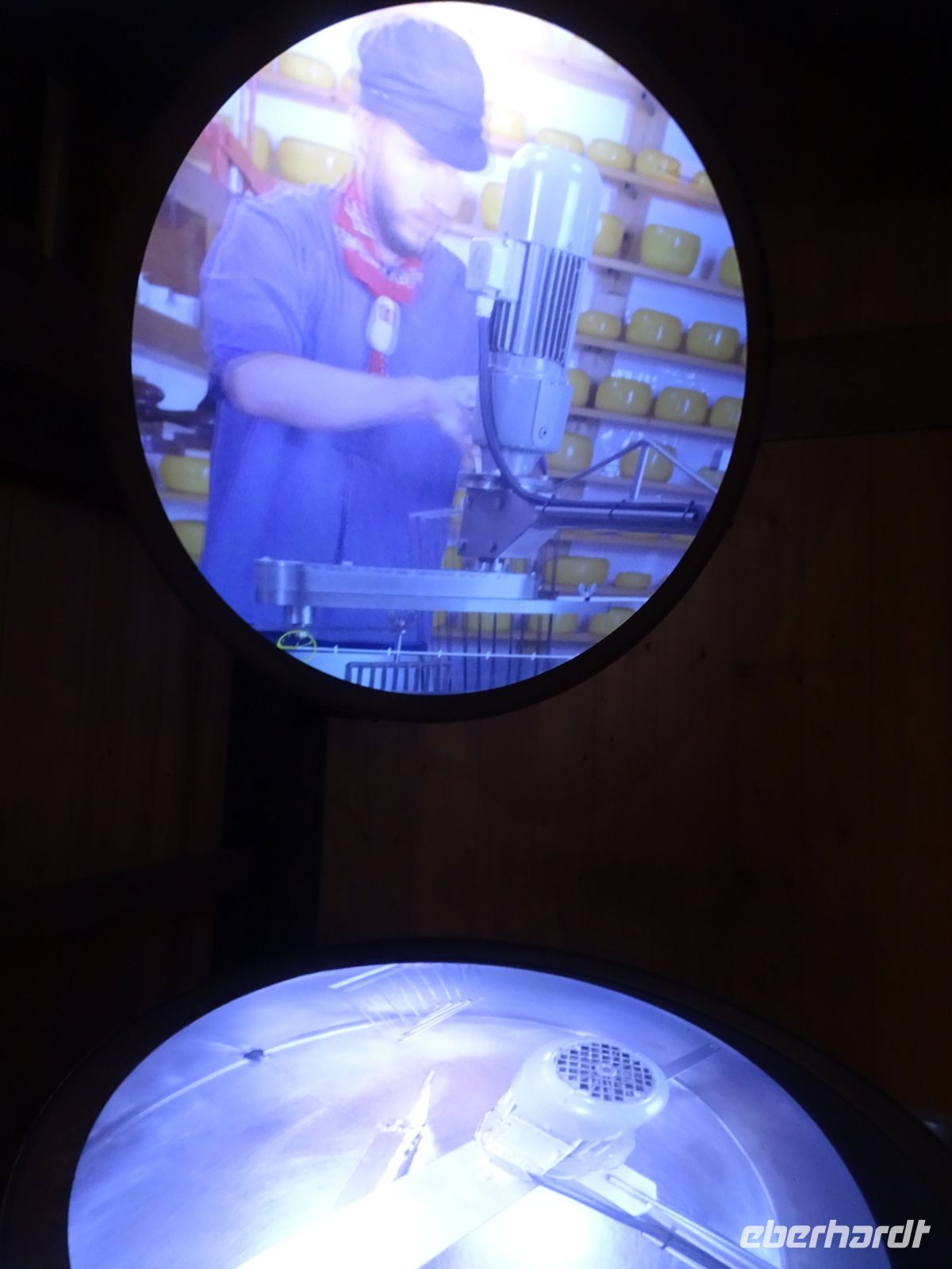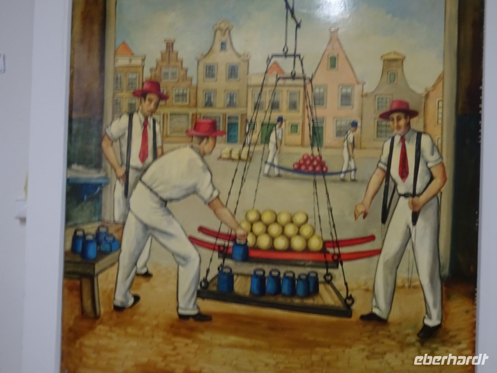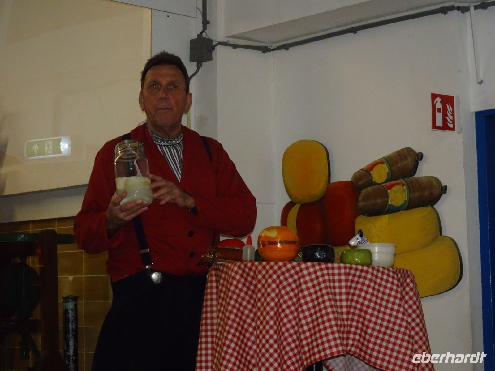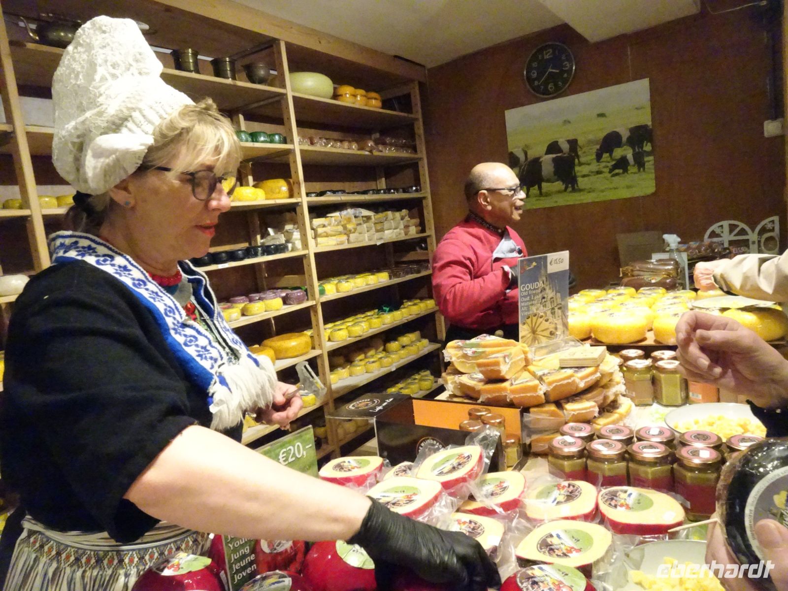 Am Nachmittag stand dann der Besuch des typischen Hollanddorfes Zaanse Schans auf dem Programm. Ein typischer Bauernhof, die Catharina Hoeve mit der Käserei von Henri Willig, die Vorführung der Holzschuhfertigung mit Ausstellung vielfältiger Holzschuhe von praktisch bis edel, eine große Zahl an Verkaufsständen von Diamanten bis Süßigkeiten und natürlich mehrere Mühlen waren zu besichtigen.