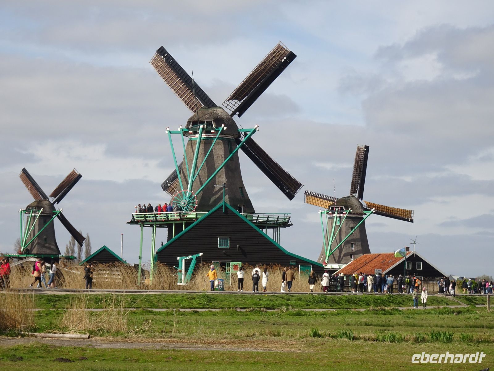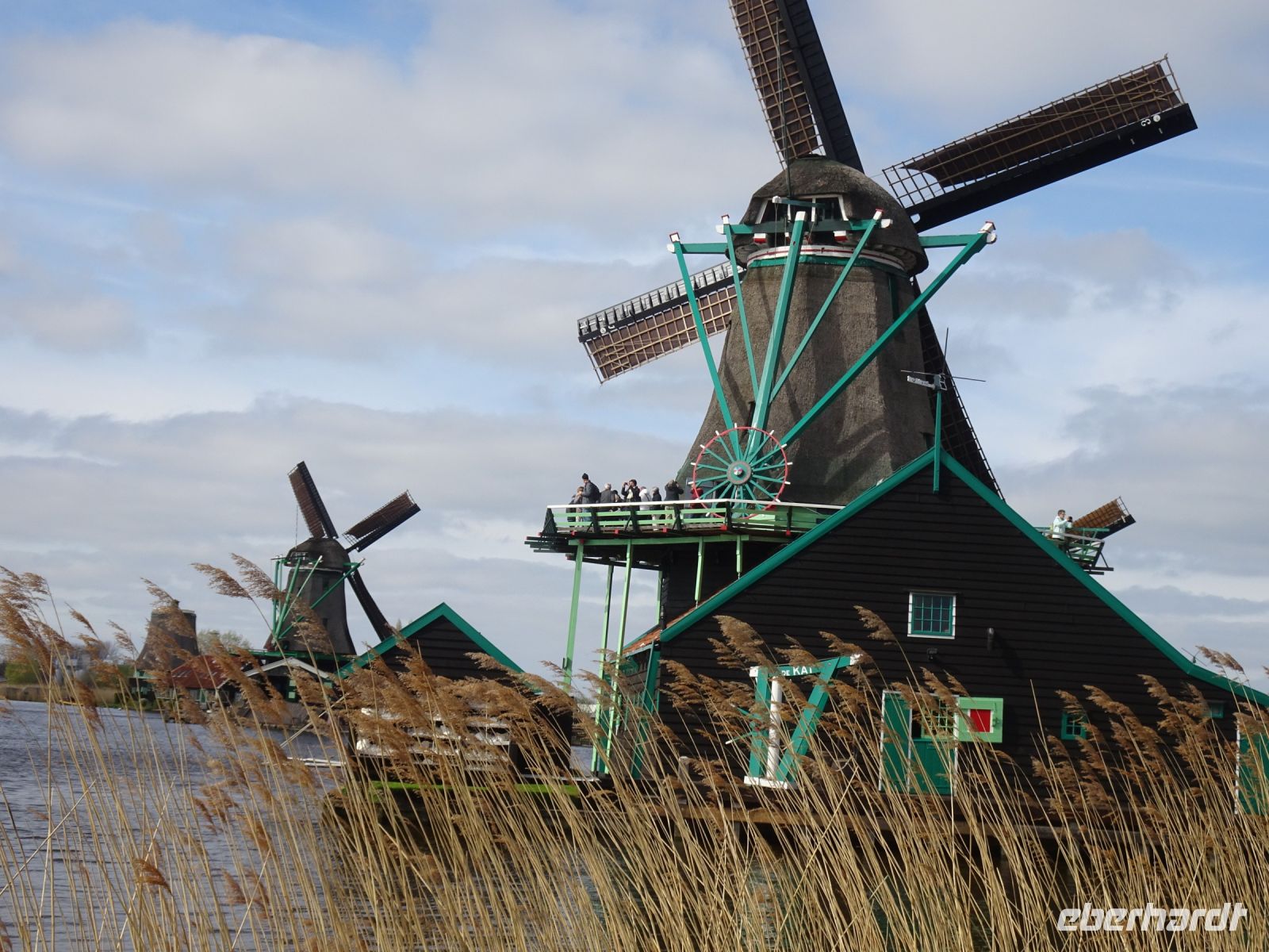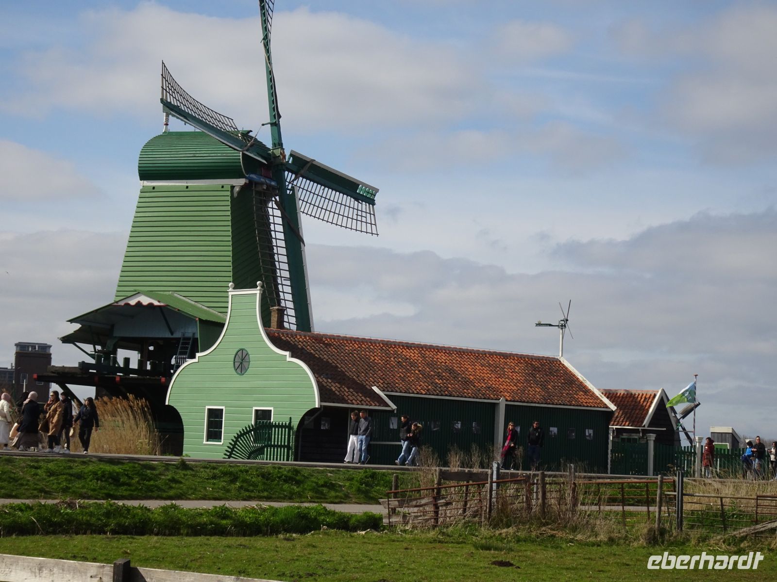 Da bei unserem Besuch viele Mühlen geöffnet und somit zu besichtigen waren, konnten sich die Reisegäste bei Interesse kundig machen. Öl-, Mehl- aber auch Sägemühlen zeigten die Vielfalt der Mühlen neben ihrem Einsatz als Poldermühlen für Pump- und Trockenlegungsaufgaben. Interessant: die Sägemühle "Het jonge Schaap" wurde erst 2007 vollständig neu errichtet und ist heute als Sägemühle in Betrieb. Früher waren in dieser Region Zaanstreek über 1000 Mühlen, 1925 noch fünfzig. Heute gibt hier ein Mühlenmuseum für Interessenten einen kompetenten Einblick.