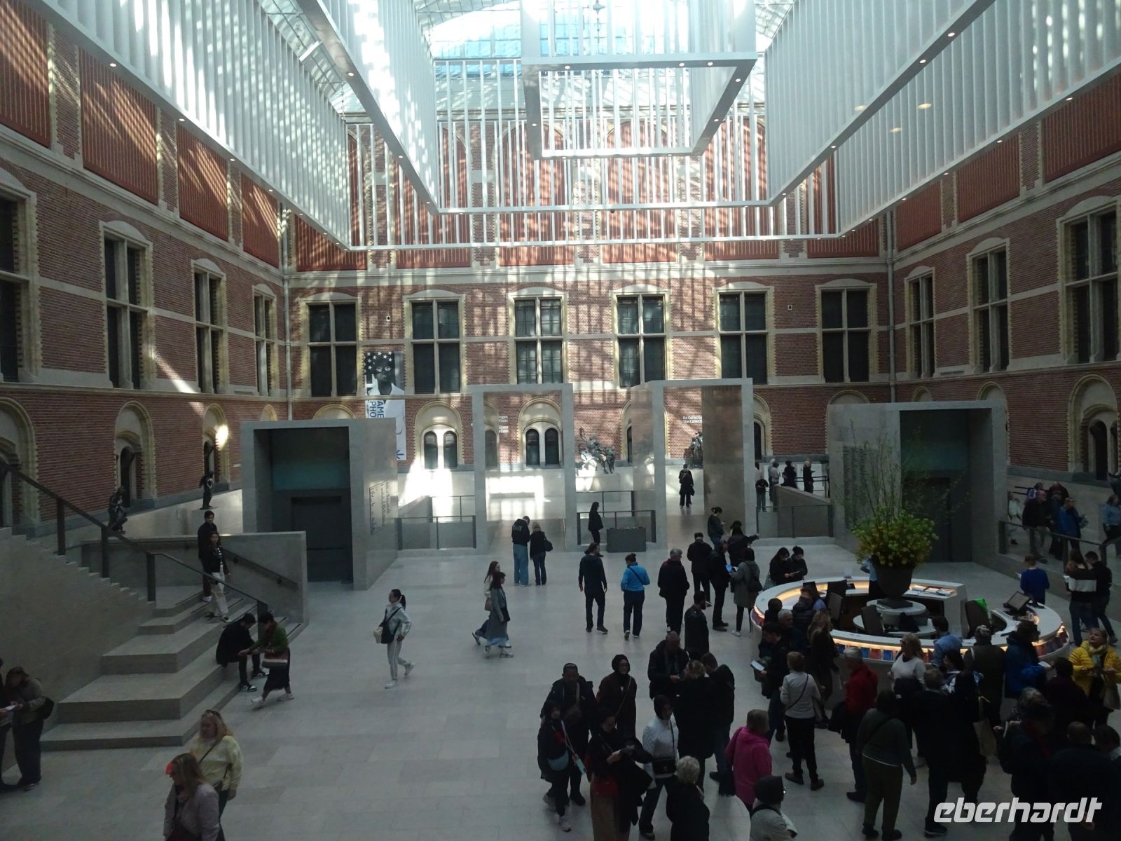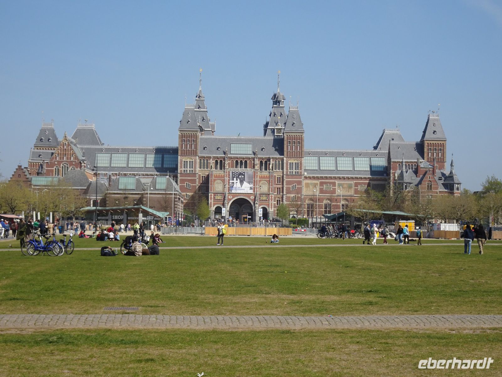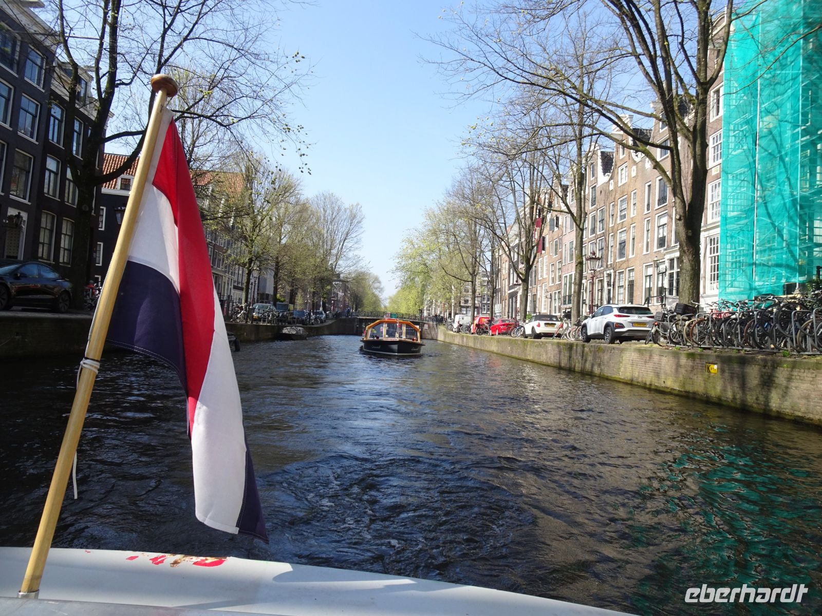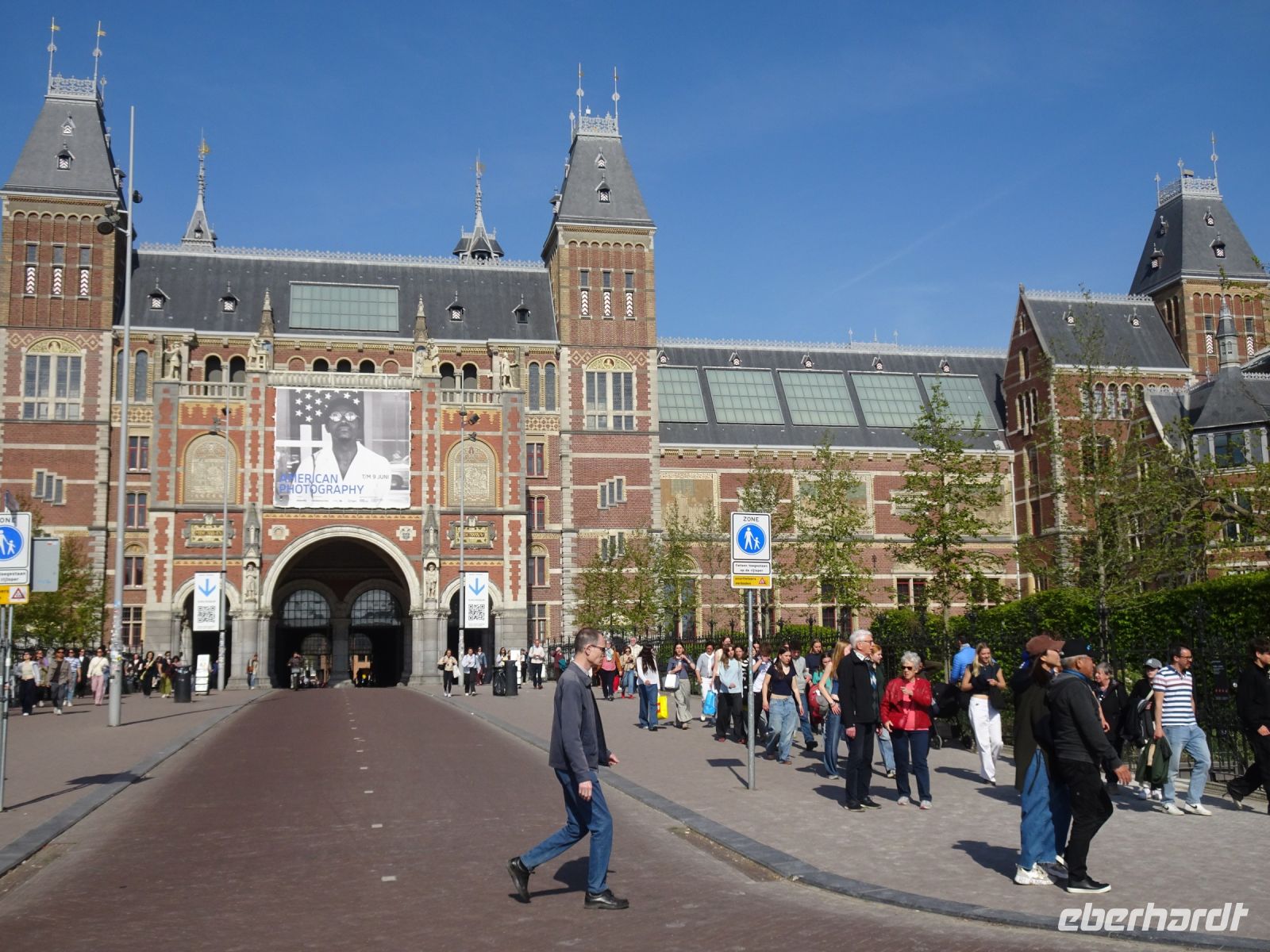 Anschließend ging unsere Fahrt nach Amsterdam. Amsterdam setzt den Kampf gegen die Touristenflut konsequent weiter um, indem die Befahrbarkeit für Reisebusse erschwert wird. Umfangreiche Baustellen erfordern ebenso Zugeständnisse an die Fußgänger. Aber Vorsicht! Niederländische Radfahrer kämpfen sich ihre Wege geschickt frei. Da hilft nur Vorsicht, um nicht das Nachsehen zu haben. So konnten wir nicht dort aussteigen, wo wir wollten. Vorbei am Rijksmuseum hatten wir nach etwa 500 m unsere Anlegestelle erreicht. Die für uns reservierte Grachtenfahrt führte durch berühmte Grachten, wie z. B. die Keizers- und Brouwersgracht, vorbei an prächtigen Wohn- und Kaufmannshäusern. Beeindruckend, wie der Reichtum Amsterdams als Handelsmetropole dokumentiert wurde. Gute Erläuterungen in Deutsch brachten uns auf diesem Weg Amsterdam näher. Wer wollte und vorbestellt hatte, konnte im Museumsareal das Van Gogh- oder Rijksmuseum besuchen. Es ist auf Grund des Besucheransturms sehr zu empfehlen, die von EBERHARDT Travel angebotene Möglichkeit der vorherigen Buchung zu nutzen, denn tagesaktuelle Karten sind schwer zu bekommen. Aber auch sonst hatten alle Reisegäste gute Möglichkeit, Amsterdam zu Fuß oder mit einer Tageskarte von Busanbietern zu erkunden, bevor es um 17 Uhr zu unserem Hotel zurückging. Ein langer aber interessanter Tag lag hinter uns.