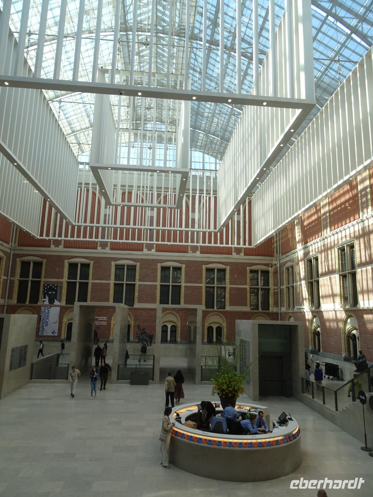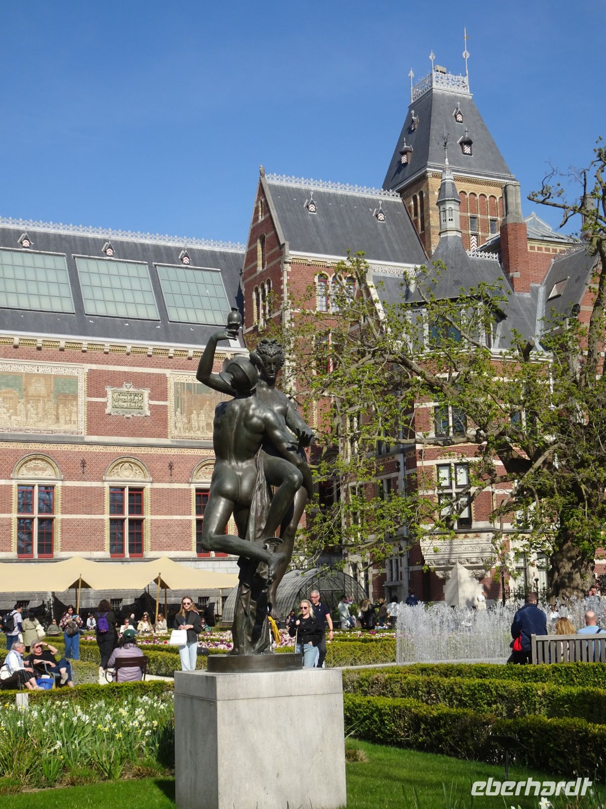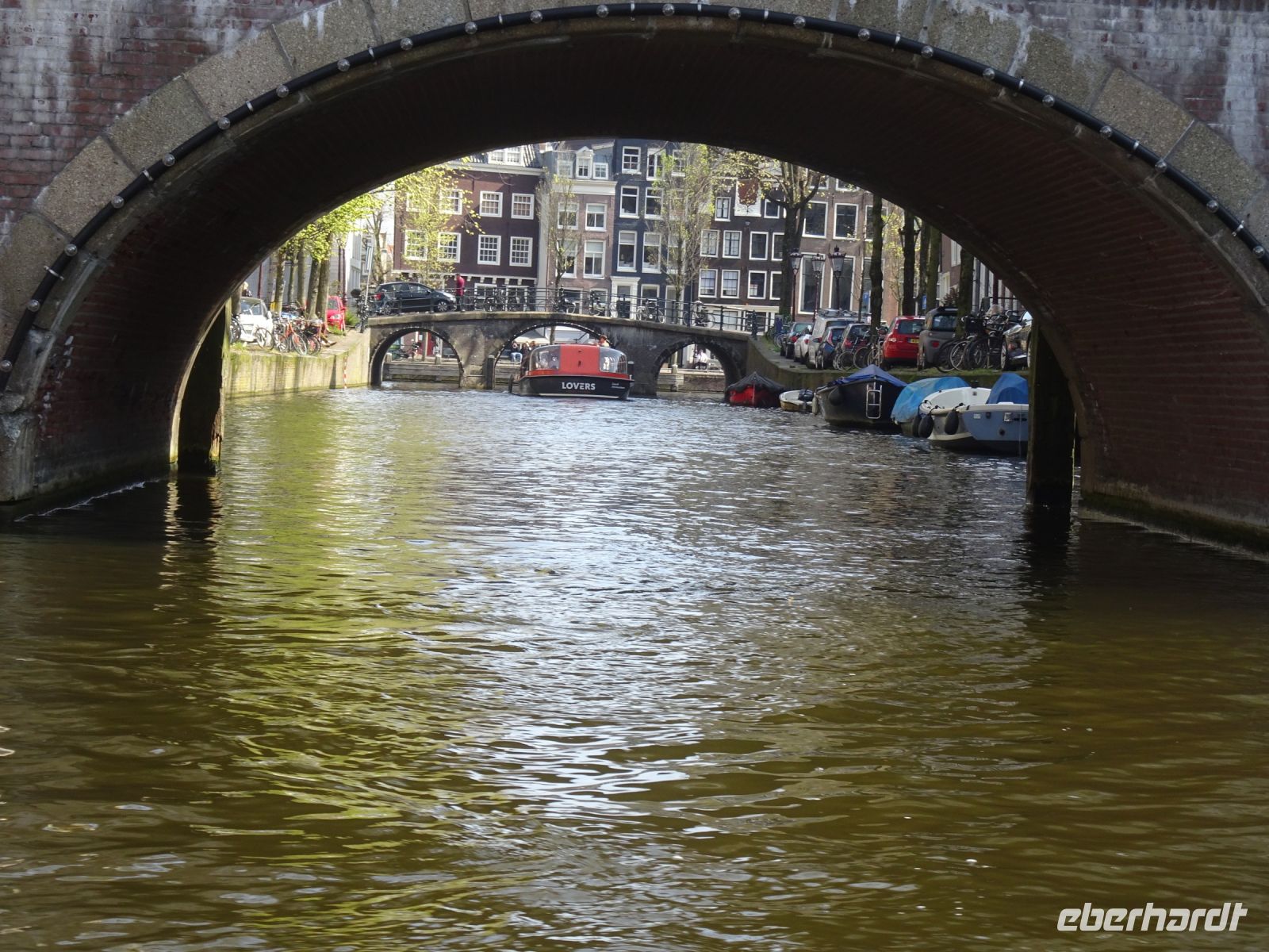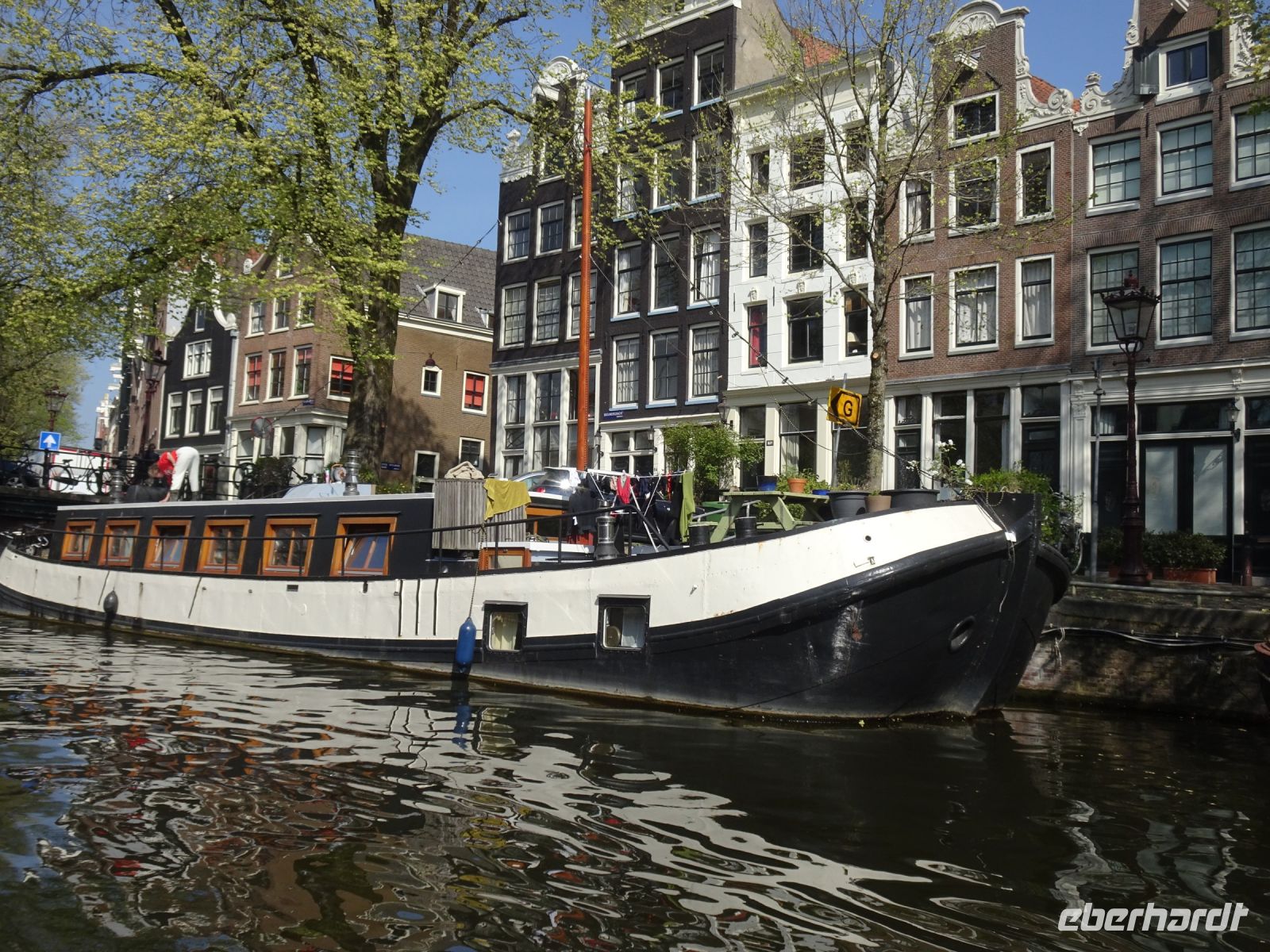 Anschließend ging unsere Fahrt nach Amsterdam. Amsterdam setzt den Kampf gegen die Touristenflut konsequent weiter um, indem die Befahrbarkeit für Reisebusse erschwert wird. Umfangreiche Baustellen erfordern ebenso Zugeständnisse an die Fußgänger. Aber Vorsicht! Niederländische Radfahrer kämpfen sich ihre Wege geschickt frei. Da hilft nur Vorsicht, um nicht das Nachsehen zu haben. So konnten wir nicht dort aussteigen, wo wir wollten. Vorbei am Rijksmuseum hatten wir nach etwa 500 m unsere Anlegestelle erreicht. Die für uns reservierte Grachtenfahrt führte durch berühmte Grachten, wie z. B. die Keizers- und Brouwersgracht, vorbei an prächtigen Wohn- und Kaufmannshäusern. Beeindruckend, wie der Reichtum Amsterdams als Handelsmetropole dokumentiert wurde. Gute Erläuterungen in Deutsch brachten uns auf diesem Weg Amsterdam näher. Wer wollte und vorbestellt hatte, konnte im Museumsareal das Van Gogh- oder Rijksmuseum besuchen. Es ist auf Grund des Besucheransturms sehr zu empfehlen, die von EBERHARDT Travel angebotene Möglichkeit der vorherigen Buchung zu nutzen, denn tagesaktuelle Karten sind schwer zu bekommen. Aber auch sonst hatten alle Reisegäste gute Möglichkeit, Amsterdam zu Fuß oder mit einer Tageskarte von Busanbietern zu erkunden, bevor es um 17 Uhr zu unserem Hotel zurückging. Ein langer aber interessanter Tag lag hinter uns.