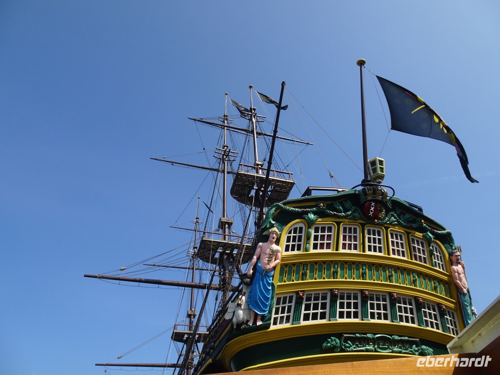 Holland und die Niederlande sind mehr als ein Land der Blumen. Der stetige Kampf gegen das Meer ermöglichte erst die Anlage von Siedlungen und Feldern. Das Projekt "Abschlussdeich" mit der Wandlung des salzhaltigen Zuidersees durch den 1932 in Betrieb genommenen Abschlussdeich in das süßwasserhaltige Ijsselmeer ist grandios und nur durch intensive Beschäftigung mit Details verständlich. Wir wollten diese nordseenahe Dünen- und Deichlandschaft erleben und umrundeten das Ijsselmeer deshalb bei unserer Fahrt. 32 km lang ist der Abschlussdeich. Im "Wadden Center" kann man sich kundig machen. Als neuer Ort ist Lelystad enstanden (benannt nach dem Ingenieur Lely des Abchlussdeiches). Kurzer Fotostopp für einen Nachbau des legendären Schiffes "Batavia". Allein dieses Schiff wäre schon einen vertiefenden Besuch wert. Und dann weiter nach Enkhuizen - einem Ort, der schon zu Zeiten der legendären Ostindien Company vom Reichtum der Seefahrt profitierte. Unser kleiner Stadtrundgang mit dem auffälligen Turm des Kulturzentrums "Drommedaris" als Bestandteil der ehemaligen Stadtfestung, dem historischem Hafen, aufwändig rekonstruierten Häusern und typischen Grachten zeigte uns ein interessantes Bild. Sehr sehenswert, aber nur mit mehr Zeit möglich, ist das Zuiderseemuseum in Enkhuizen.