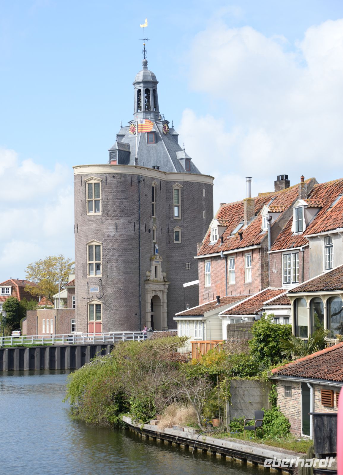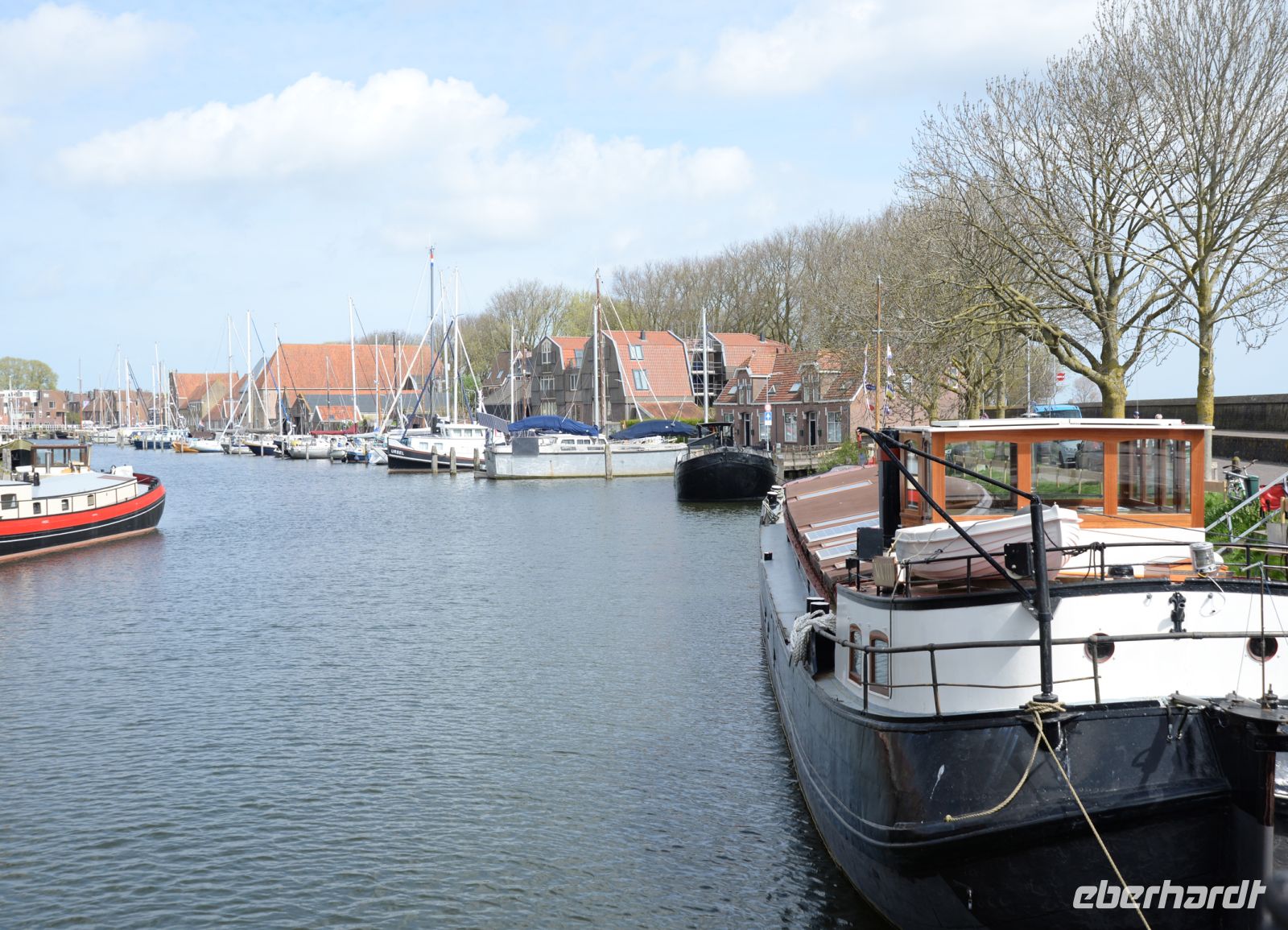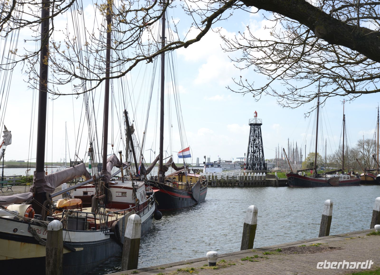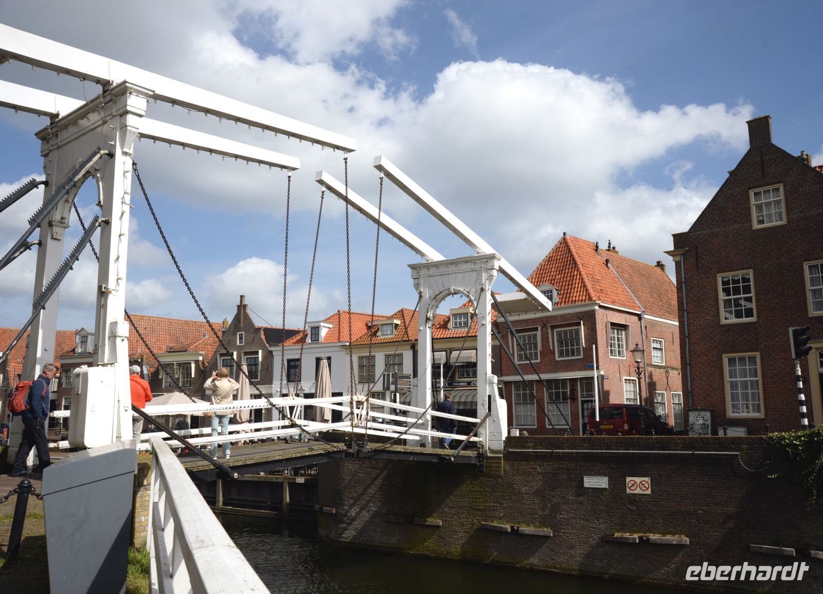 kommen wir in Lelystad am Beginn des Markermeerdeiches an. Nachdem wir über die Schleuse auf den Damm fahren, hat man den Eindruck mitten im Meer zu sein. Wir sehen Segelboote und bald auch das andere Ufer mit der historischen Stadt Enkhuizen. Nachdem wir am Bahnhof mit Nähe zum Hafen einen guten Parkplatz gefunden haben, gehen alle Gäste in Richtung Hafen. Am weithin sichtbaren alten Stadttor Drommedaris verteilen sich die Gäste in den mittelalterlich anmutenden Gassen. Das Hafenviertel mit kleinen Backsteinhäusern und historischen Schiffen hat Enkhuizen zu einem ganz besonderen Charme verholfen. Hier wird deutlich, dass es einstmals ein bedeutender Handelsort war.