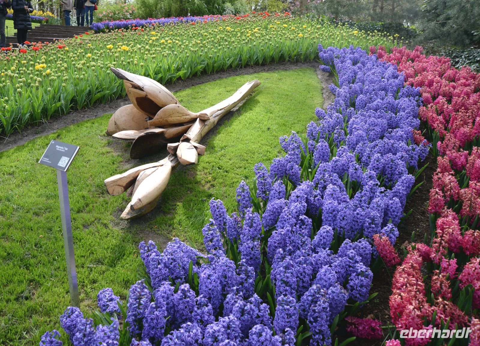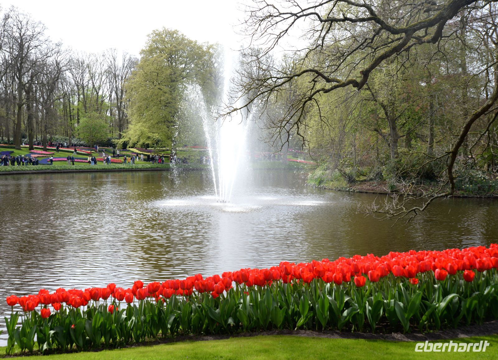 Unser erstes Ziel ist heute der Keukenhof. Auf der Fahrt nach Lisse bei Leiden bekommen wir einen Eindruck von der riesigen Fläche der blühenden Tulpenfelder und genießen diese herrliche Blütenpracht im Sonnenschein. Vom Busparkplatz bis zum Eingangsbereich waren es nur