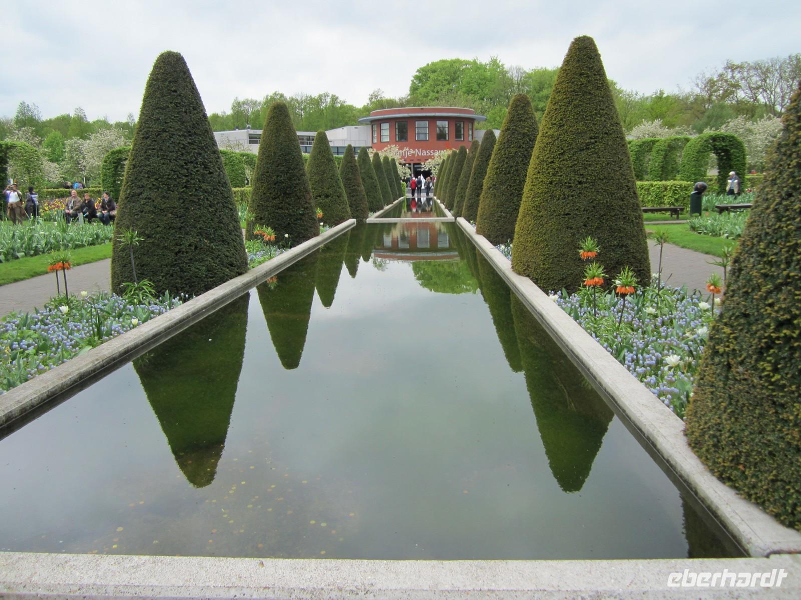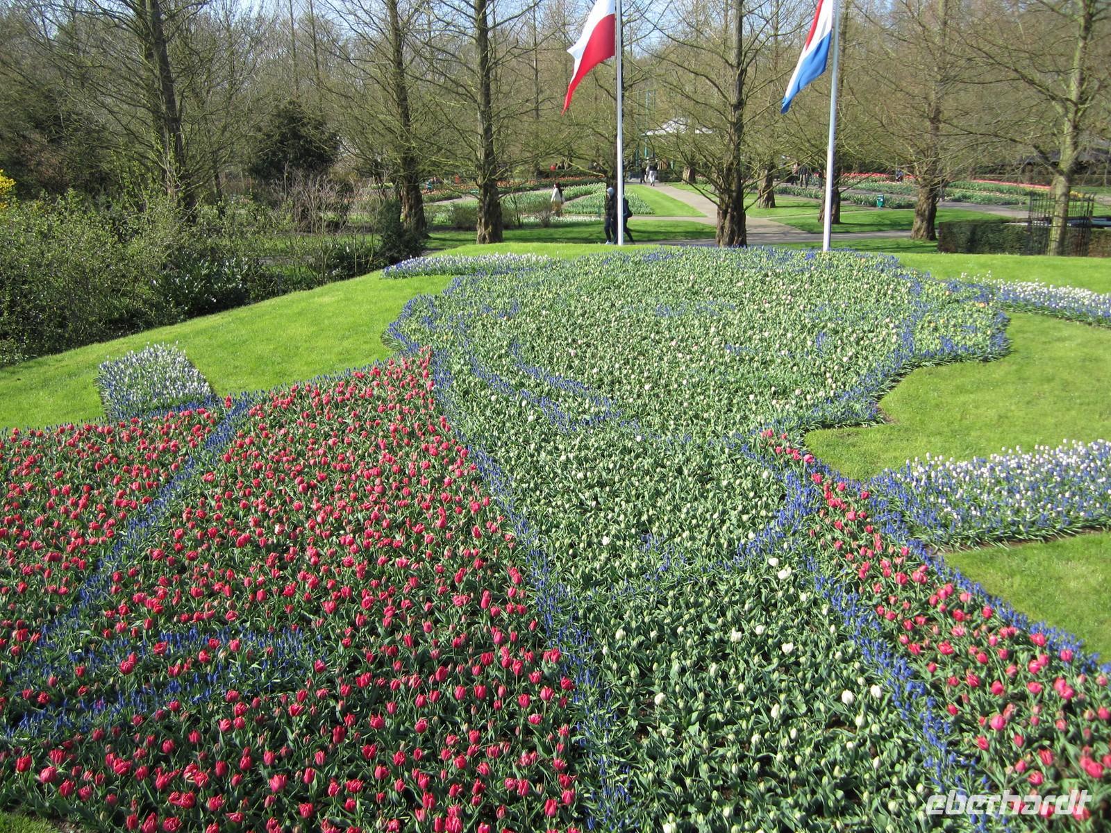 Hier blühen Meere von Tulpen, Narzissen, Traubenhyazinten. Seit einigen Jahren gibt es Partnerländer auf dem Keukenhof. In diesem Jahr ist es Polen. Das Mosaik aus 50 000 Blumenzwiebeln das den 1810 in Polen geborenen Pianisten F. Chopin darstellte, sehen wir nicht mehr. Dieses Bild ist bereits verblüht.