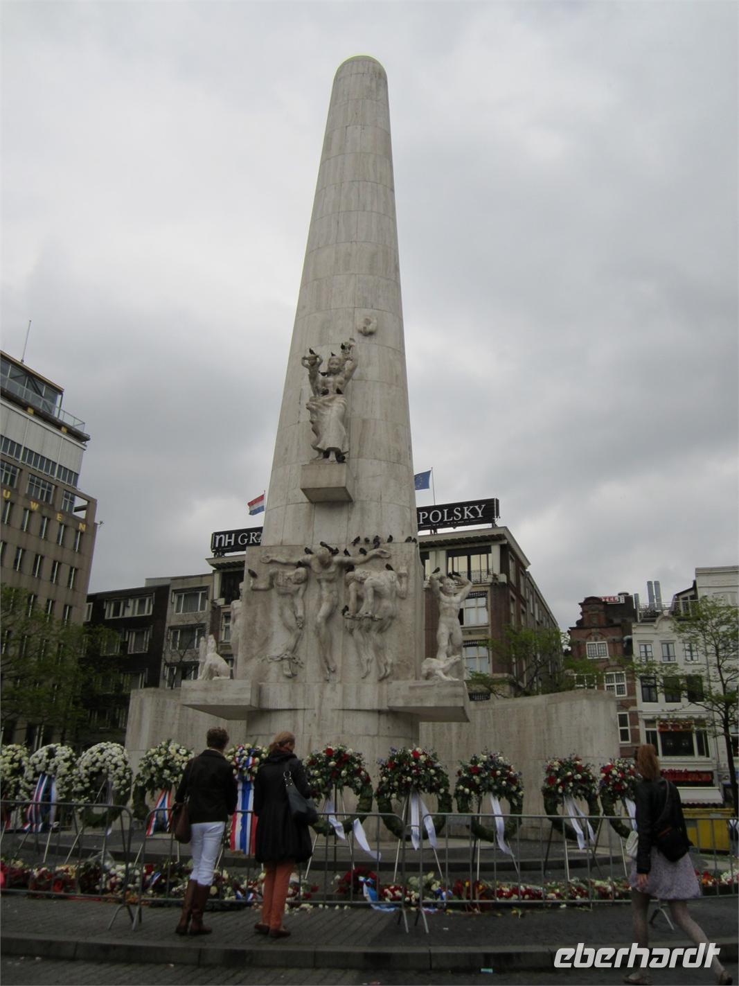Am Bahnhof wieder angekommen, spazieren wir durch die historische Stadt an der Beurs von Berlage vorbei. Ein Backsteingebäude, das heute Veranstaltungsort ist, zum Dam. Hier sehen wir das Nationalmonument, dem Königlichen Palast, Madam Tussaud’s und Nieuwe Kerk.