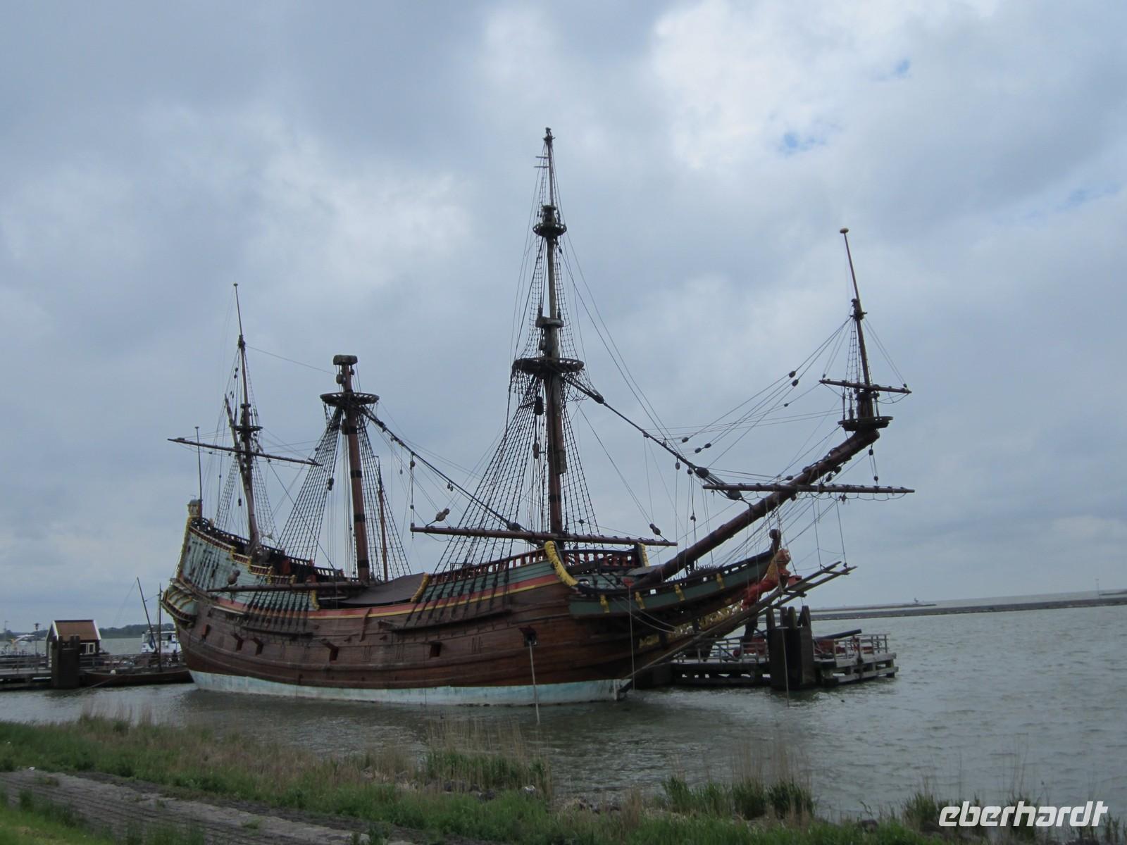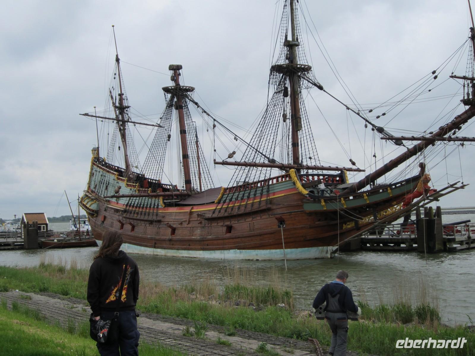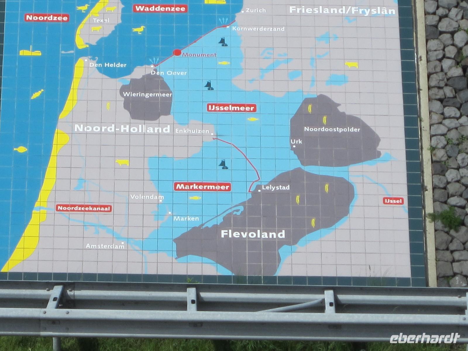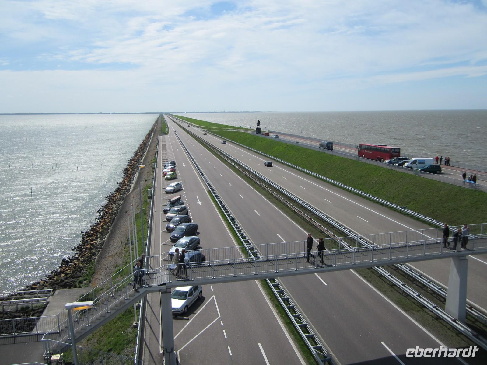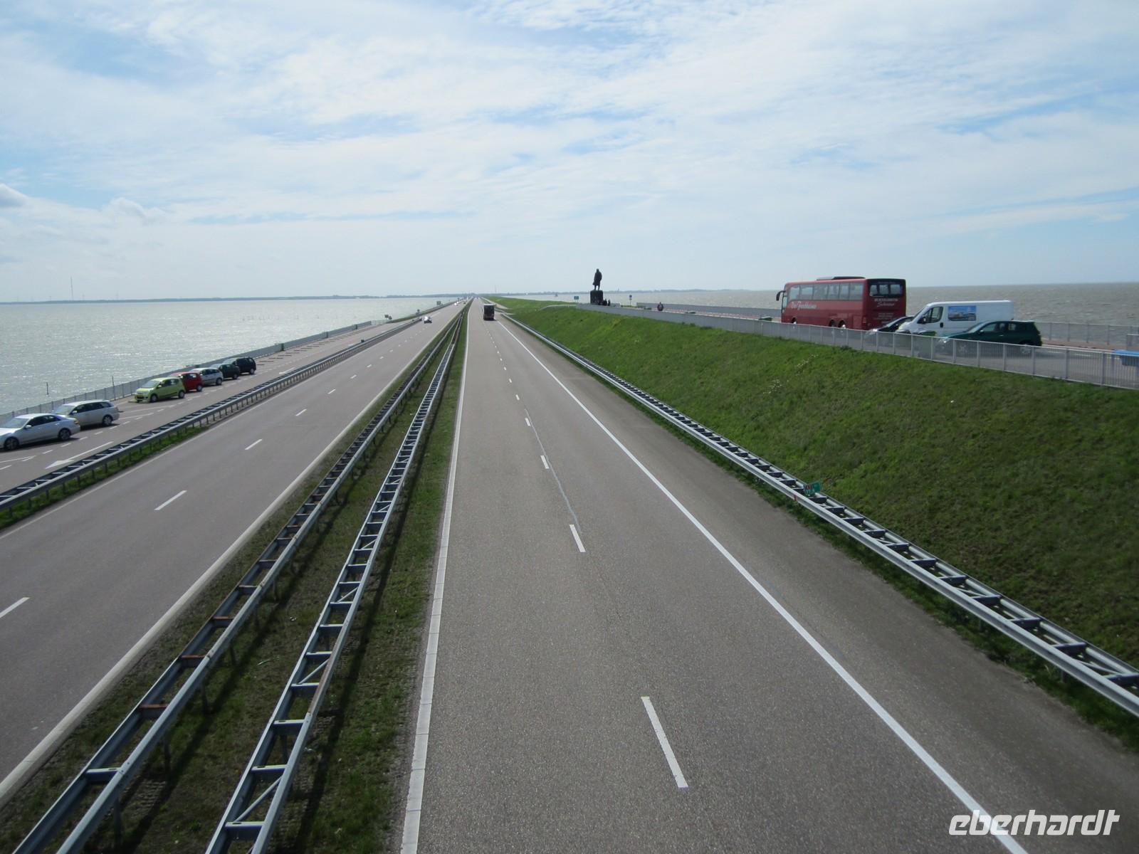 Wir fahren Richtung Enkhuisen und machen in dem bezauberten Ort auch eine Pause bevor wir über den Markerwaarddijk fahren und an der Batavia einen Fotostopp einlegen. Unsere Fahrt setzen wir über die A6 Noordoostpolder fort. In Friesland angekommen befahren wir den Abschlussdeich. Der Deich, der Friesland und Nordholland verbindet und 32 km lang ist. Am Denkmal für Ingnieur Lely machen wir Pause und besteigen den Turm um einen tollen Blick über den Abschlussdeich zu haben.