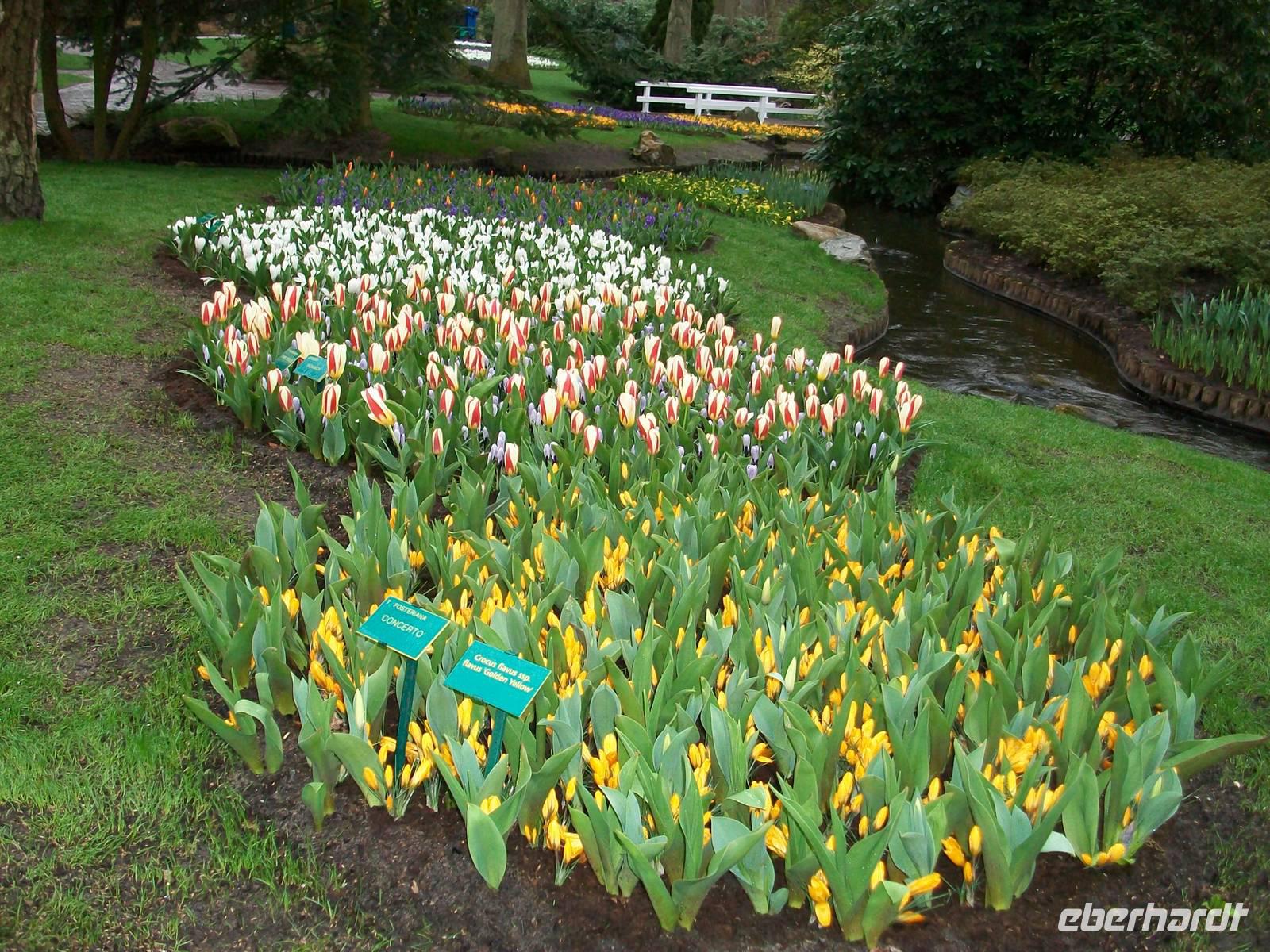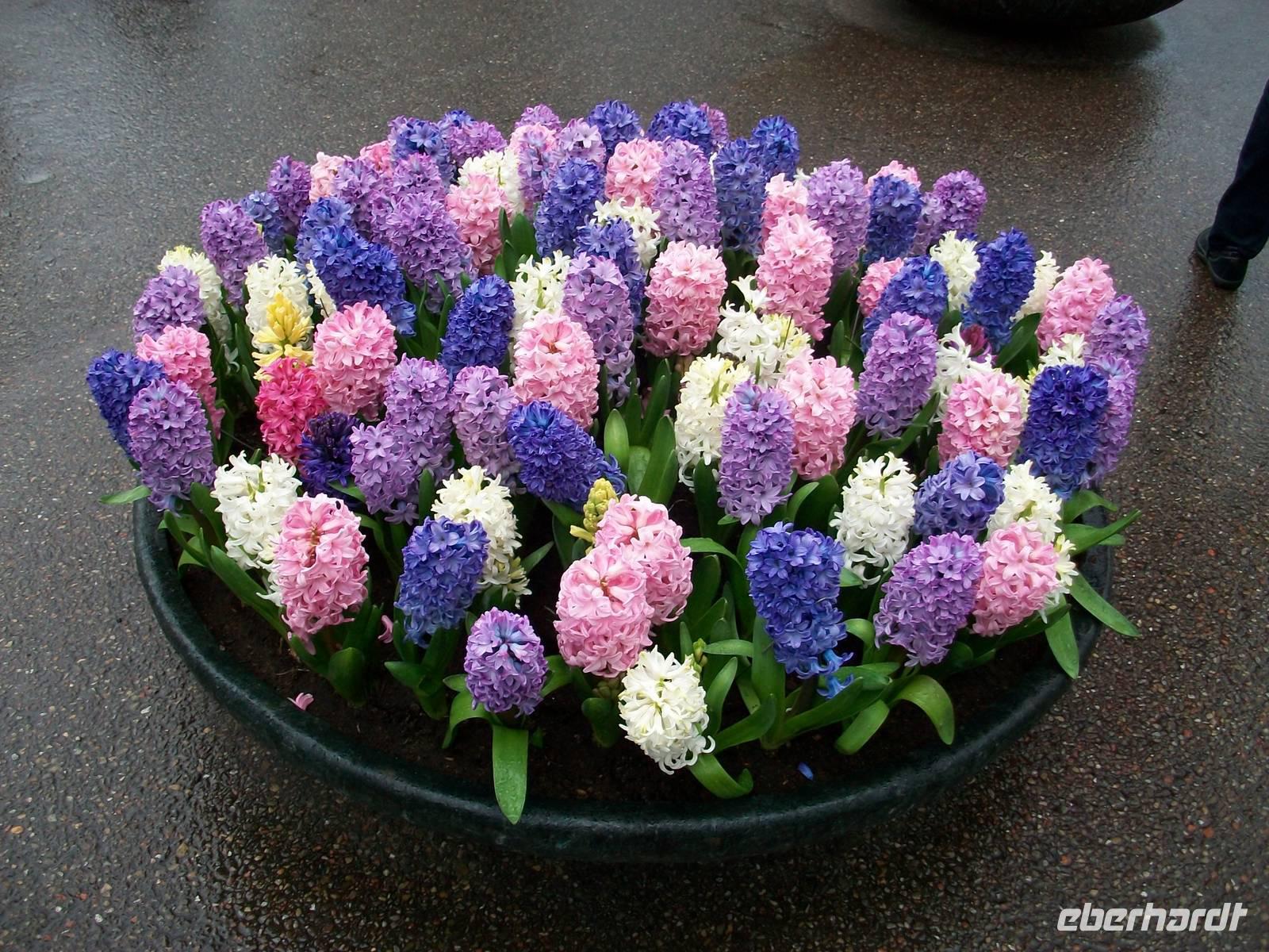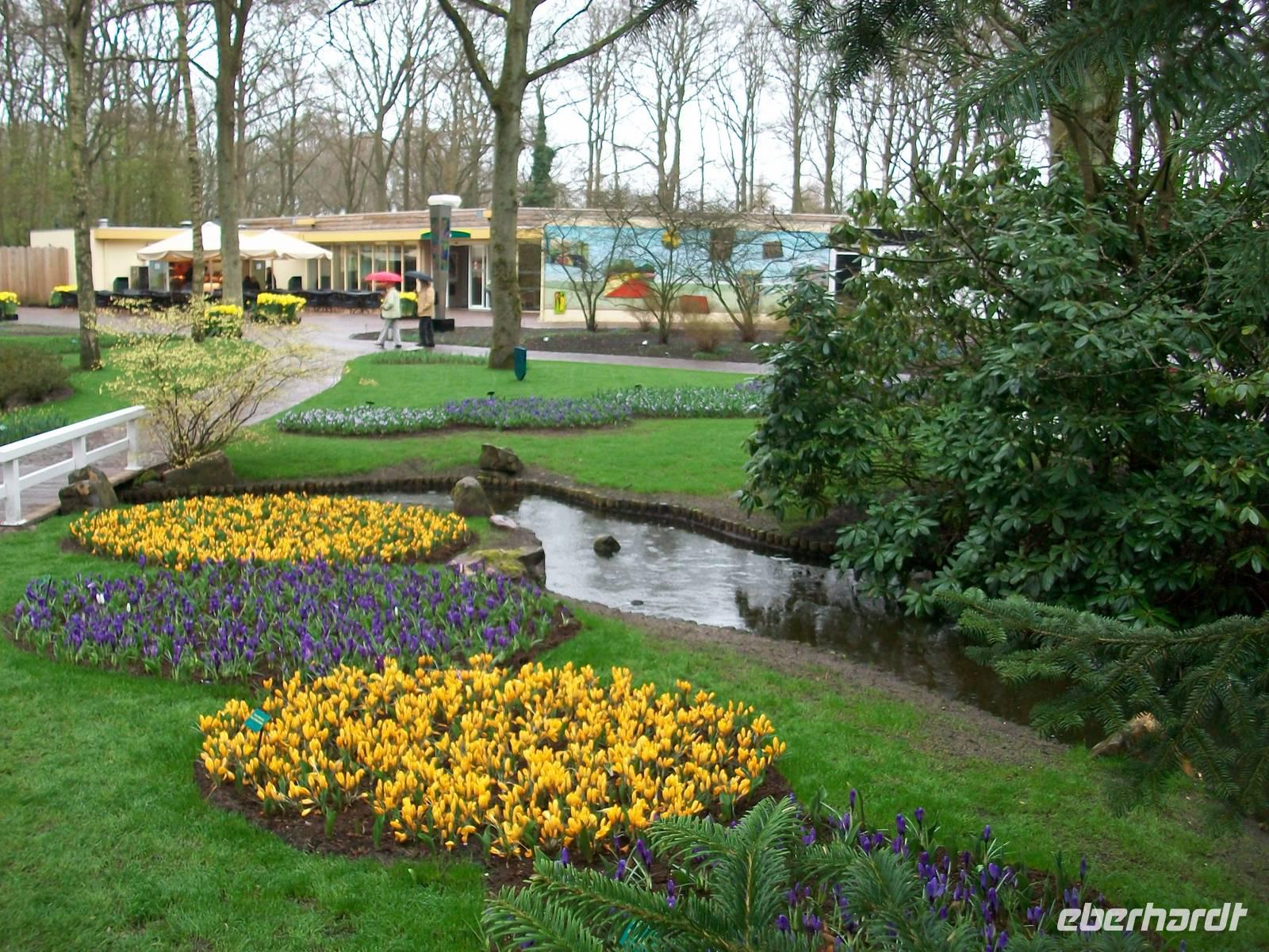 15.4.2013. Auch diese Nacht war wieder kühl, nachdem wir vom Hotel gestartet sind glitzern die Wiesen auf dem flachen Land, Tautröpfchen haben sich hier festgesetzt. Nach einer guten Stunde Fahrzeit langen wir beim Ort Lisse am Keukenhof an. Leider hat sich der Himmel bezogen und dicke Wolken bringen leichten Regen. Das stört aber unseren Tatendrang nicht, bald sind die Tickets verteilt und es beginnt das individuelle Entdecken in diesem faszinierenden Park. Auch wenn es noch keine so große Blütenpracht gibt wie sonst zu dieser Jahreszeit, ist der Genuss sehr groß. Viele Blumen wurden in Glashäusern vorbereitet und die verschiedenen Pavillons bieten eine große Auswahl floristischen Könnens, so dass der Aufenthalt trotz des lausigen Wetters doch noch zum Genuss wird.