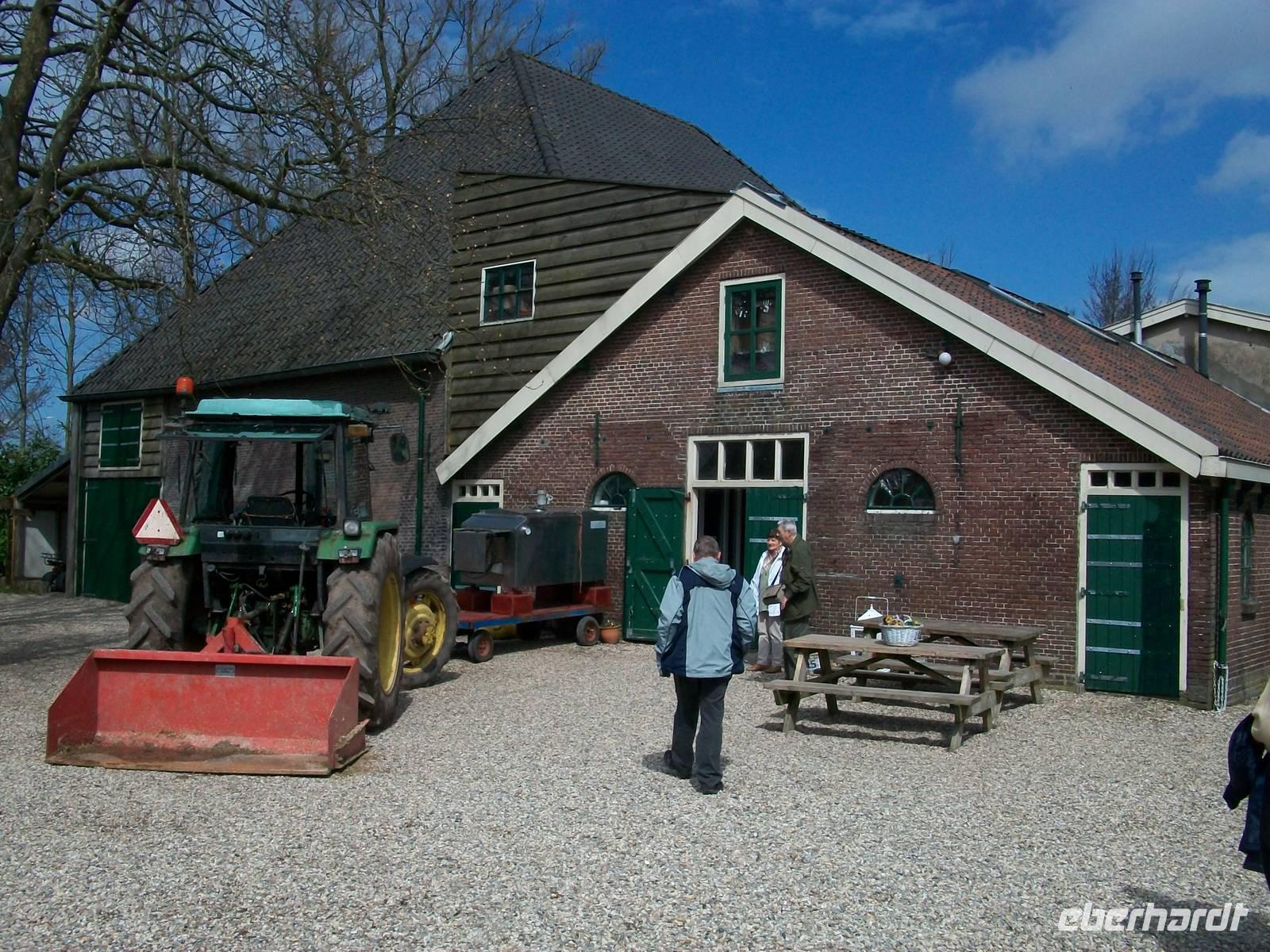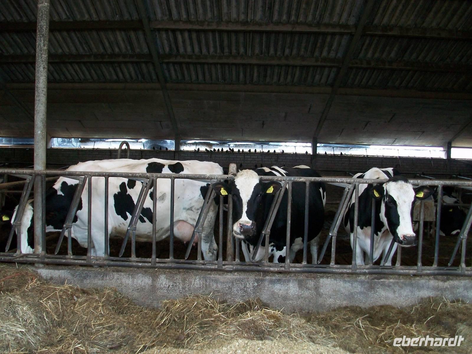 13.40 Uhr. Die ganz dicken Wolken haben sich verzogen als wir entlang eines Kanals im ländlichen Bereich von Amstelveen auf den Hof des Käsebauern einrollen. Beim Aussteigen können wir die würzige Landluft schnuppern, im Stall sind die fleißigen Milchproduzenten, die Kühe zu sehen. Neugierig äugen sie zu uns Touristen, wie wir den Bus verlassen und im Gebäude verschwinden.