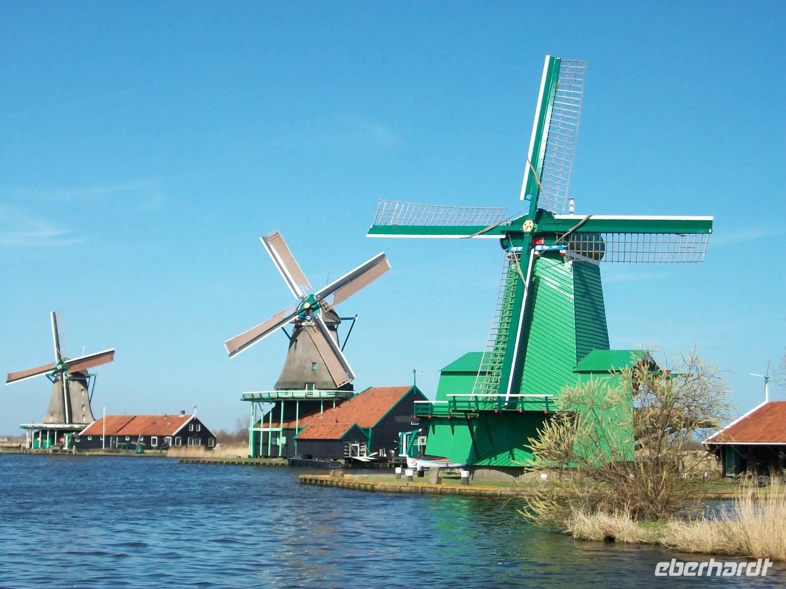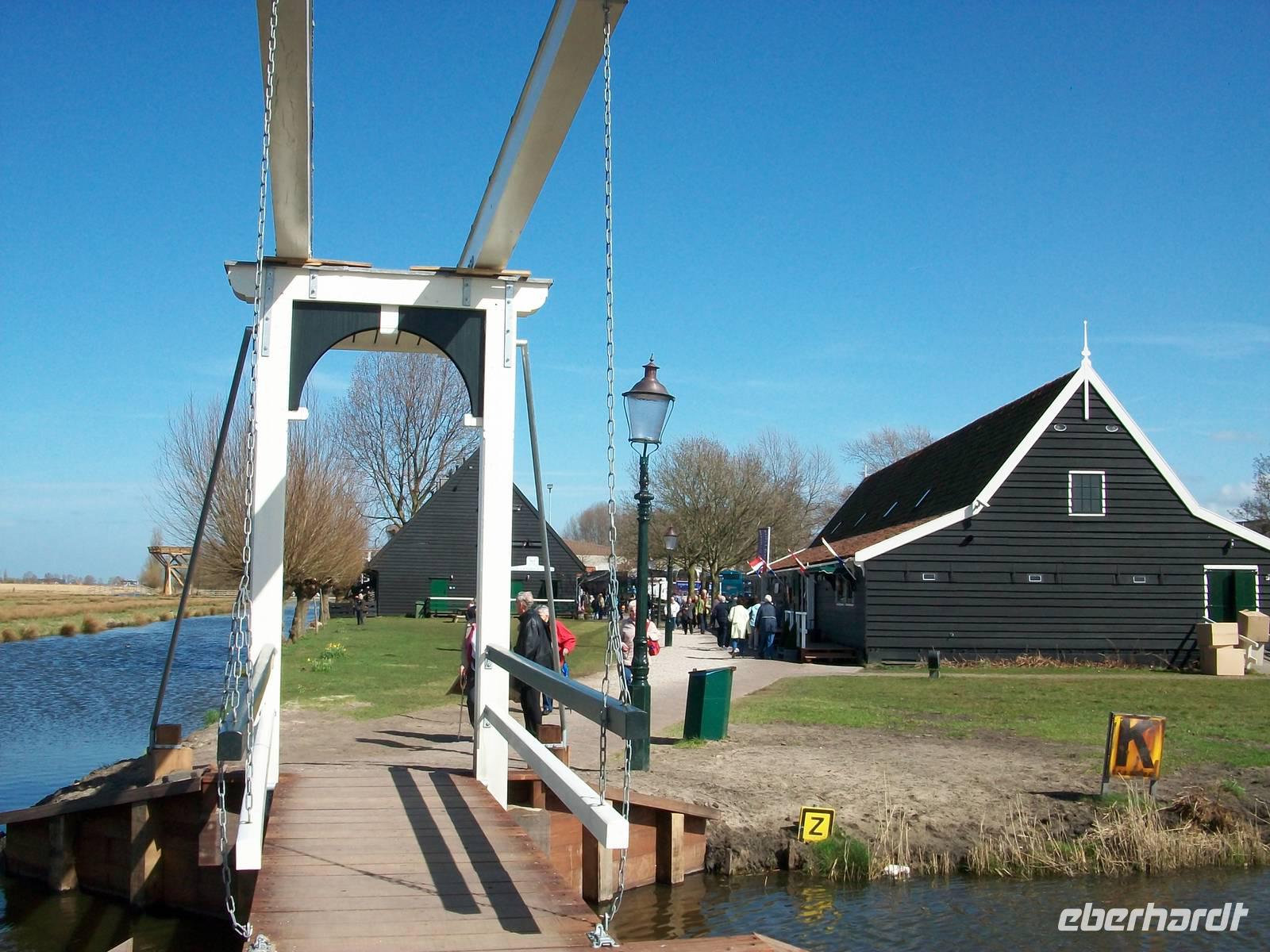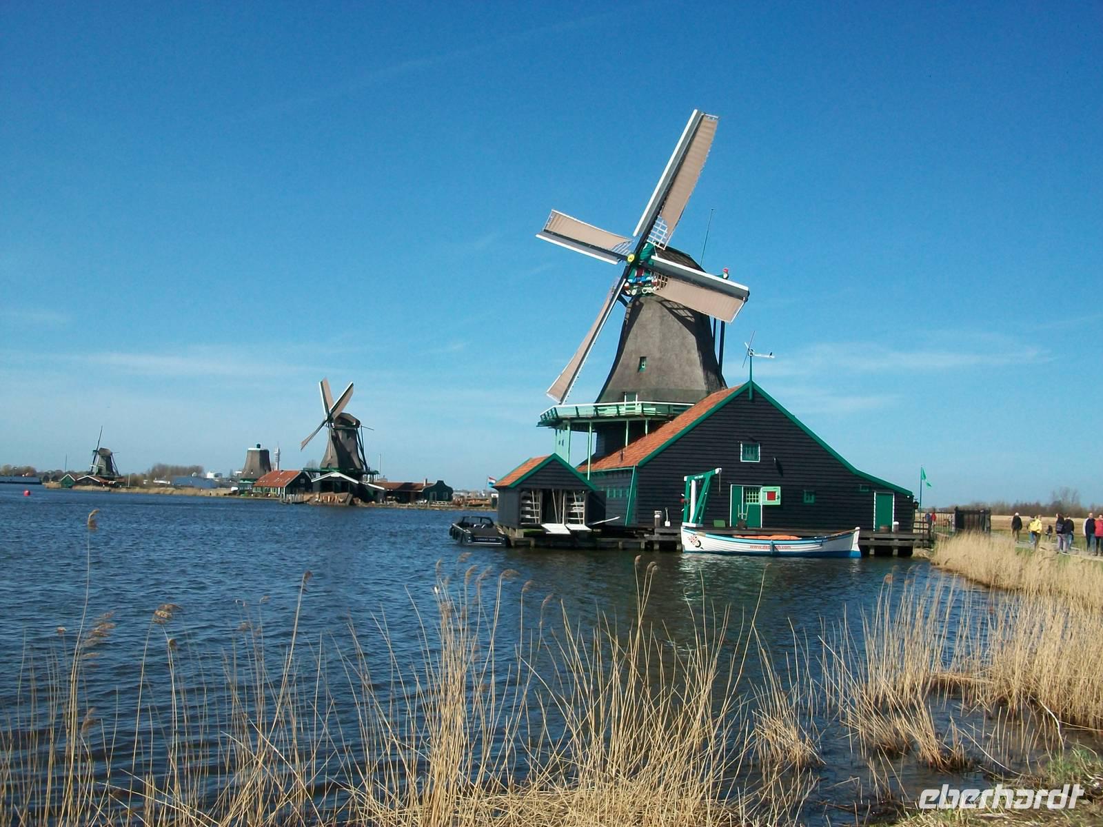 Die Niederlande sind bekannt für ihre Windmühlen. Sie dienten einst vielen Zwecken; neben dem Mahlen von Korn hat man mit ihrer Hilfe auch Sägewerke angetrieben und durch Schöpfwerke das Land trocken gelegt. In der Nähe von Zanstad haben sich schon vor Jahrzehnten die Niederländer ihrer langen Tradition erinnert und hier ein Ensemble vieler Mühlen aufgebaut. Über schmale Wege gelangen wir auch zu den ehemaligen Wohnhäusern und können in die Stuben der Menschen schauen die vor mehreren Jahrhunderten auf einfachste Art ihr Leben fristeten. Etwas weiter sind auch Werkstätten zu sehen, dort informieren wir uns wie damals Schuhe entstanden, Eisen geschmiedet und Brot gebacken wurde.