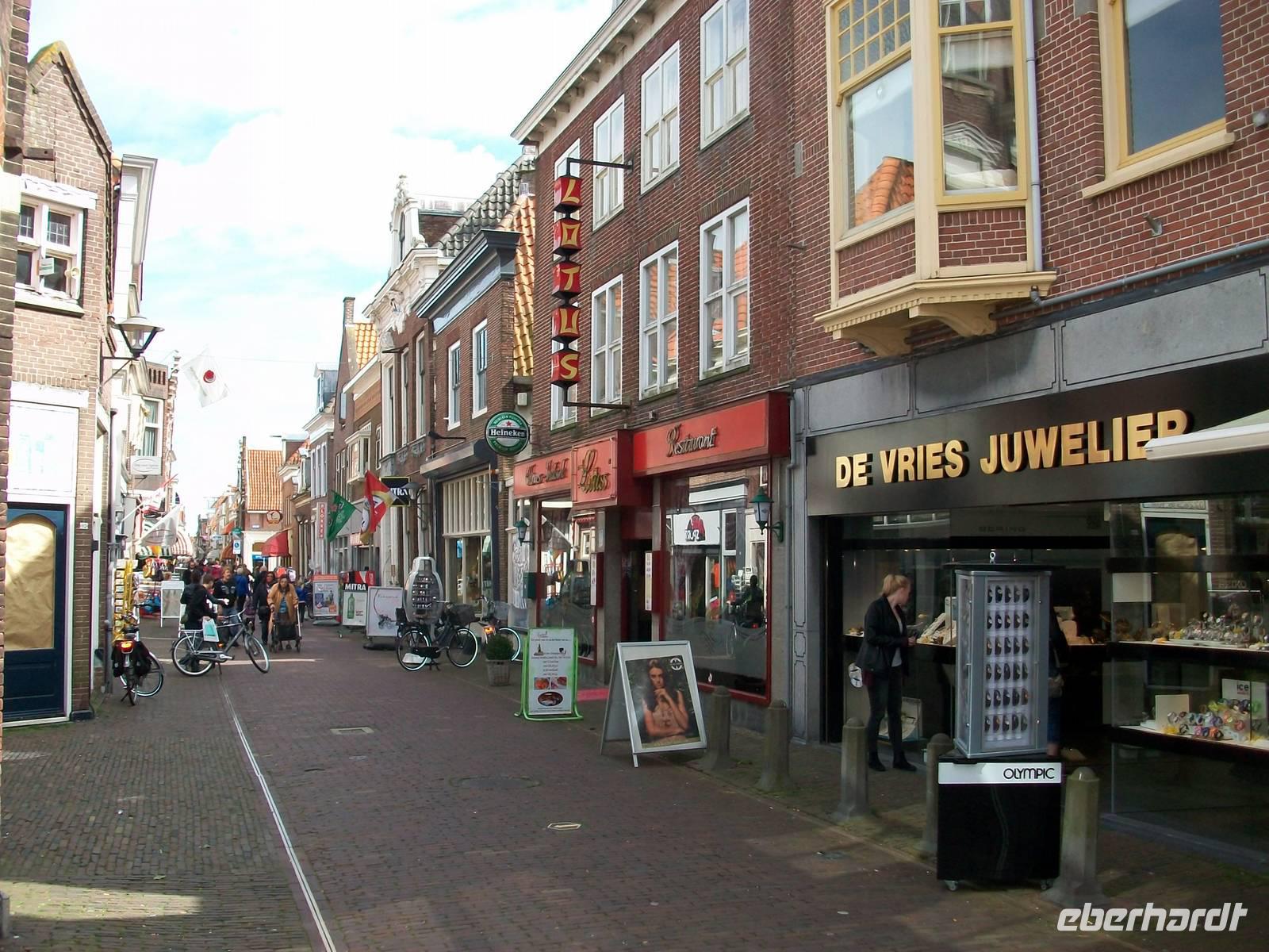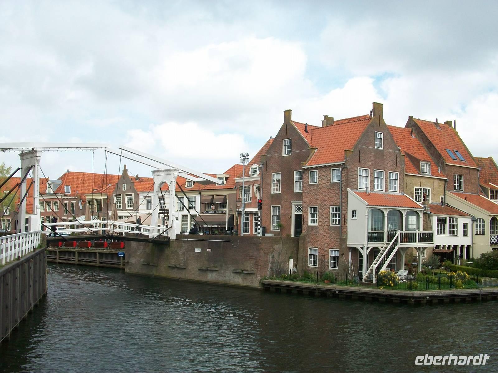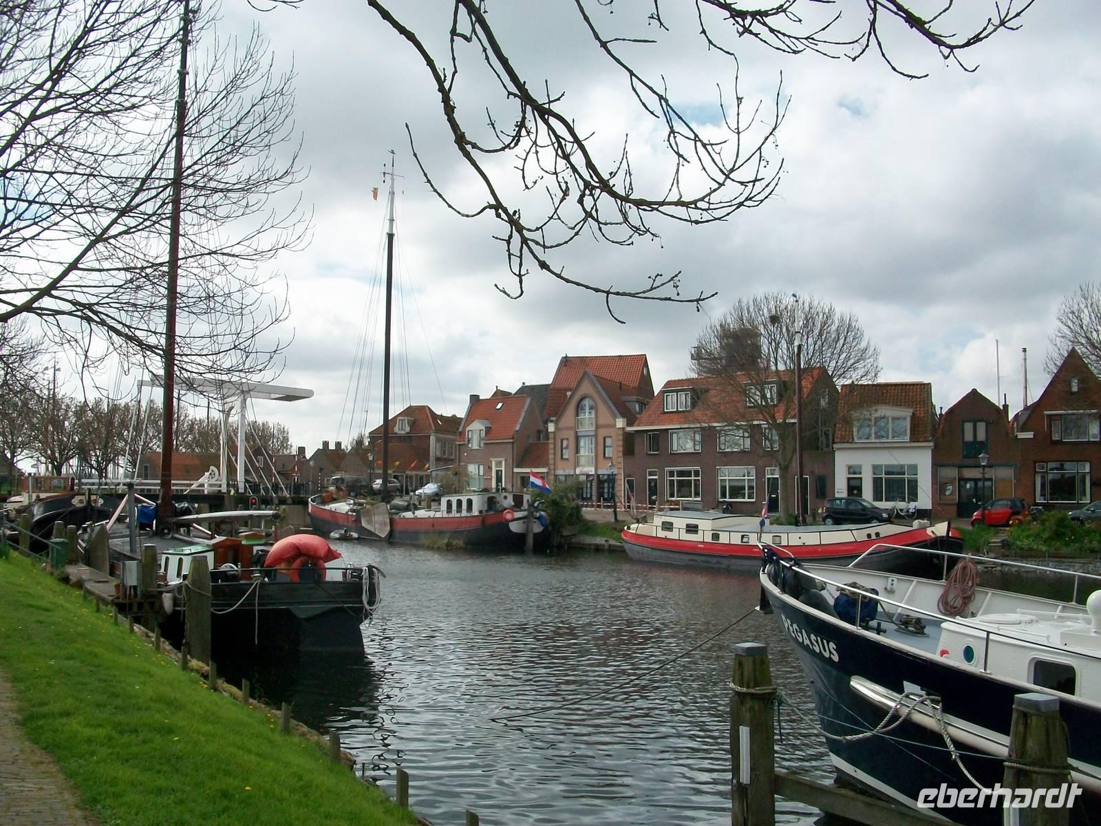 Im Hintergrund taucht schon der Ort Enkhuizen vor unseren Augen auf; hier begeben wir uns nun auf eine Reise zurück in der Zeit. Unmittelbar am Alten Hafen gelangen wir in diese schöne und historische holländische Stadt. Hier ist nun die malerische Architektur zu bewundern, uralte Giebelhäuser, pittoreske Plätze und ein munterer Markt lassen uns diesen Aufenthalt zu einem Genuss werden.
