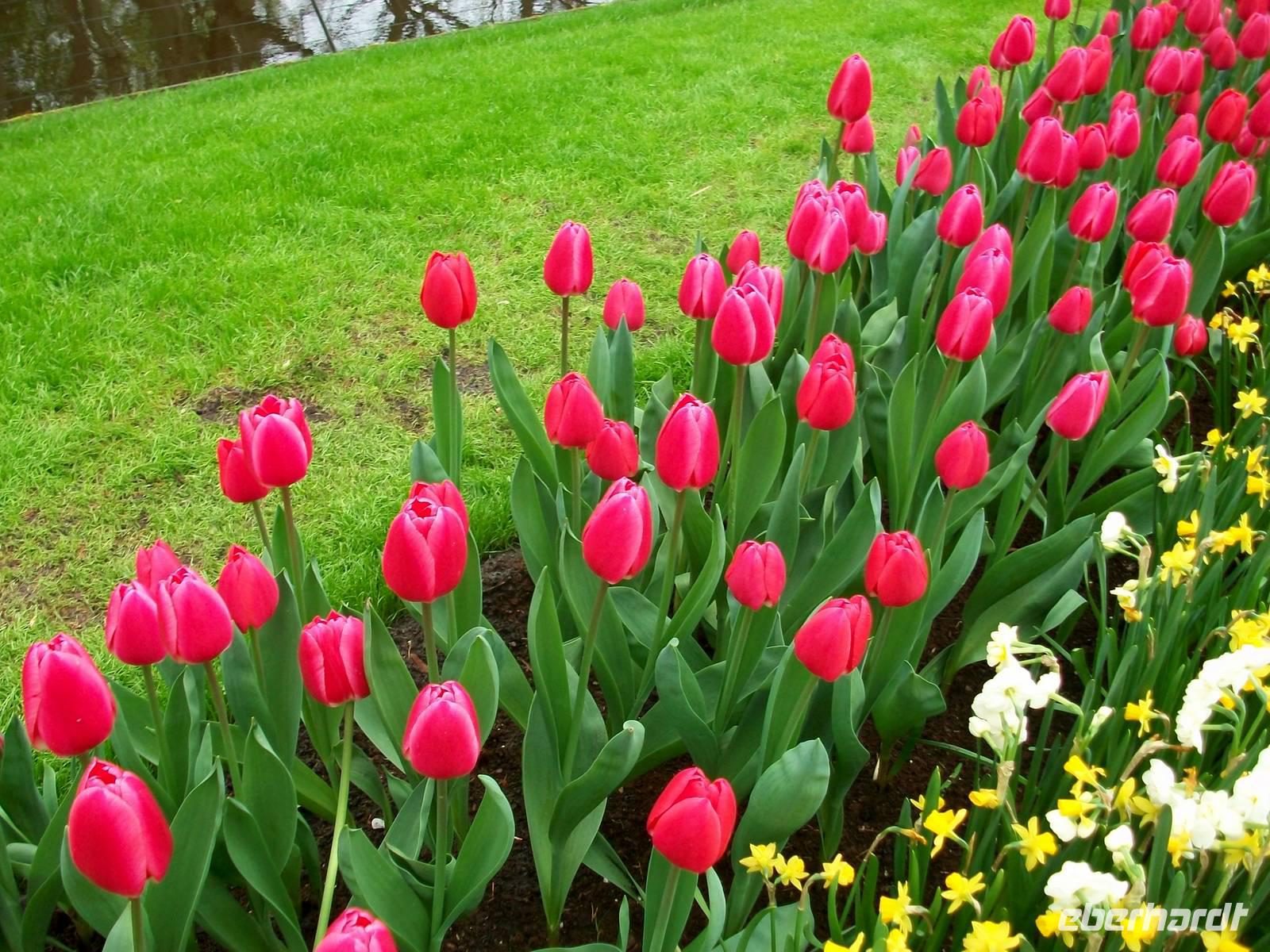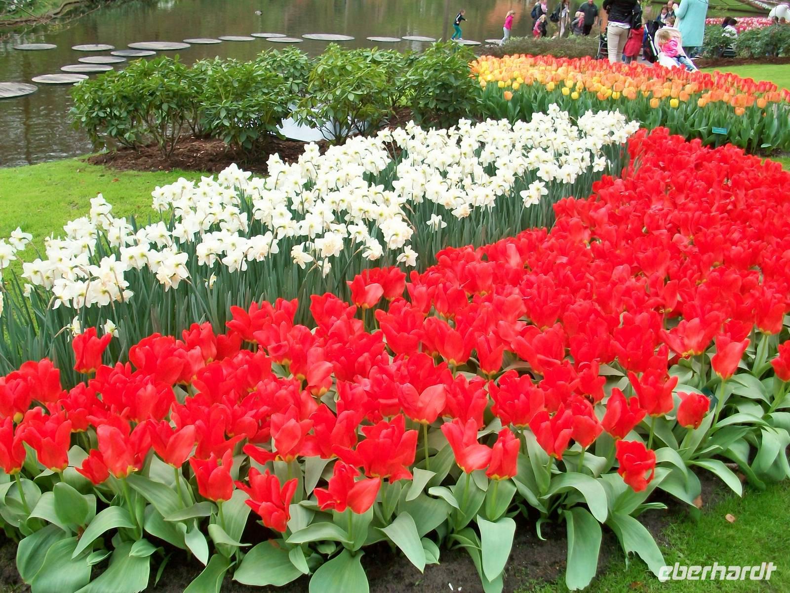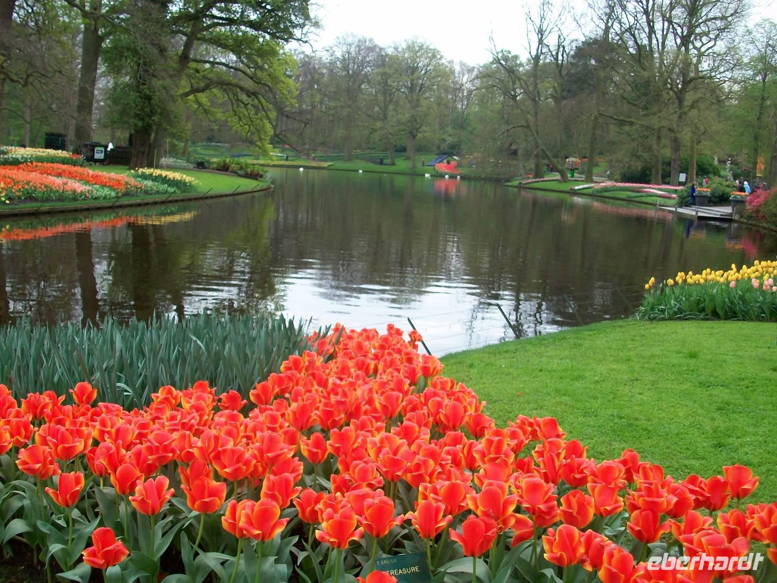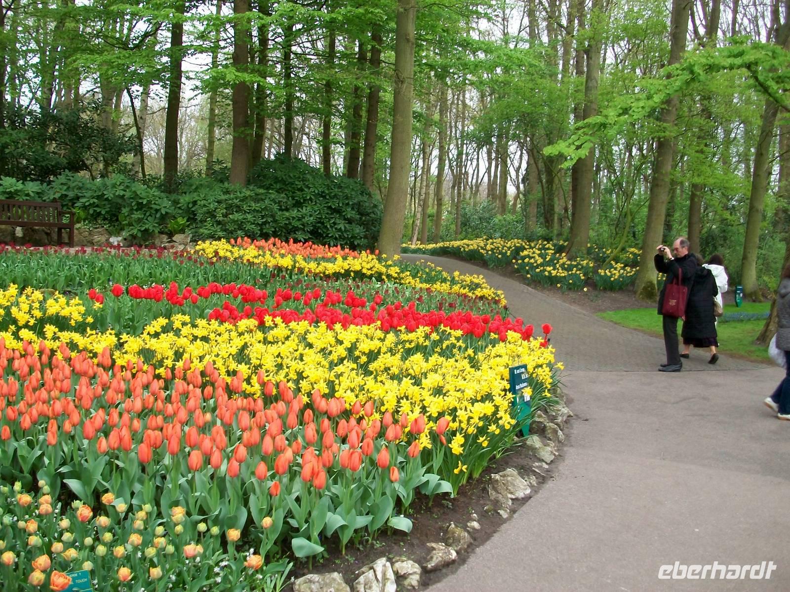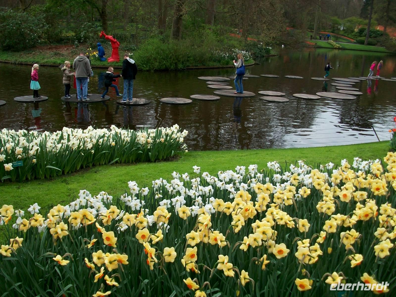Durchzogen ist der Keukenhof von zahlreichen Kanälen, auch ein See ist hier angelegt und überall sind die Touristen aus aller Herren Länder unterwegs- ein tolles Erlebnis.