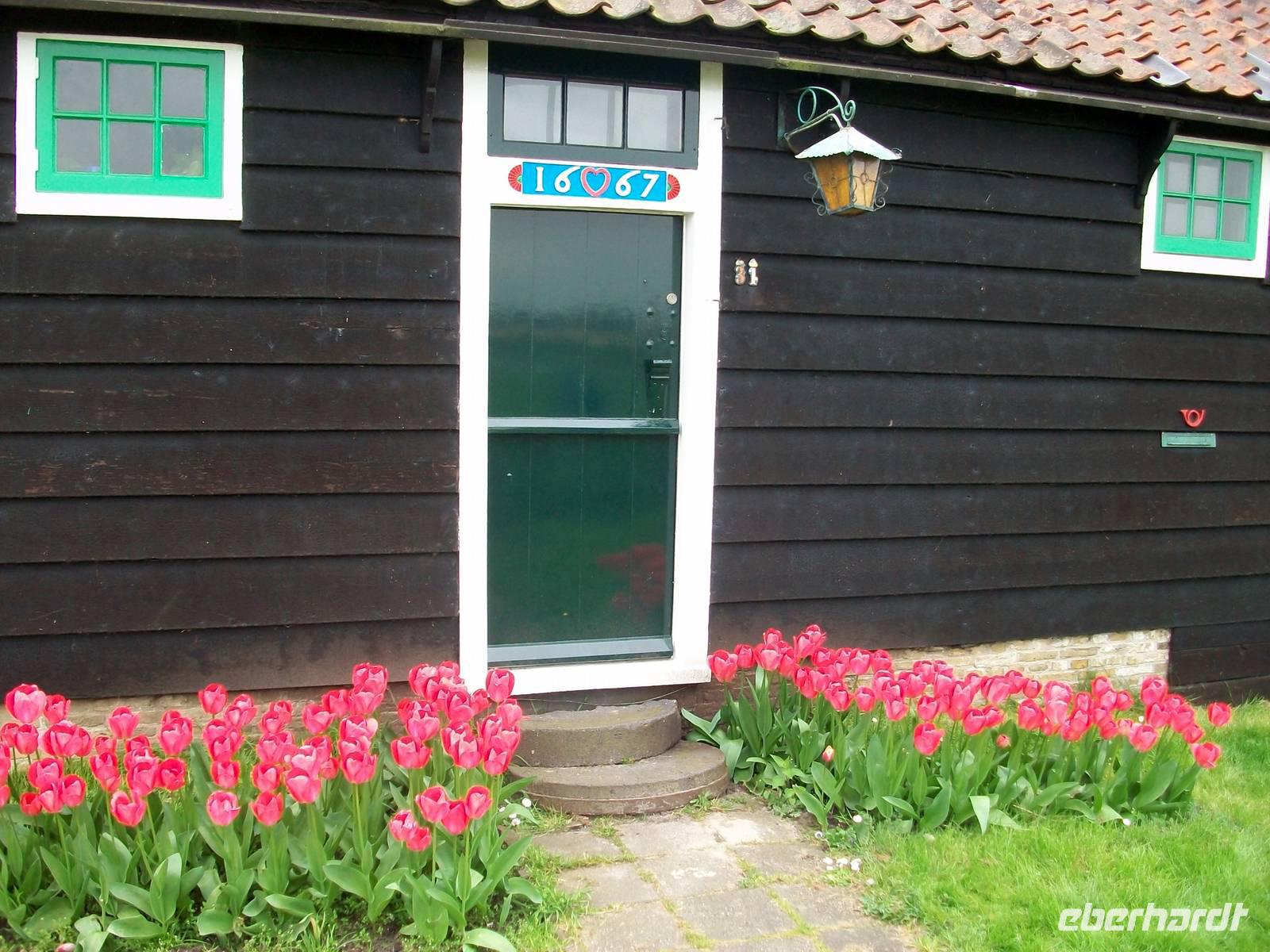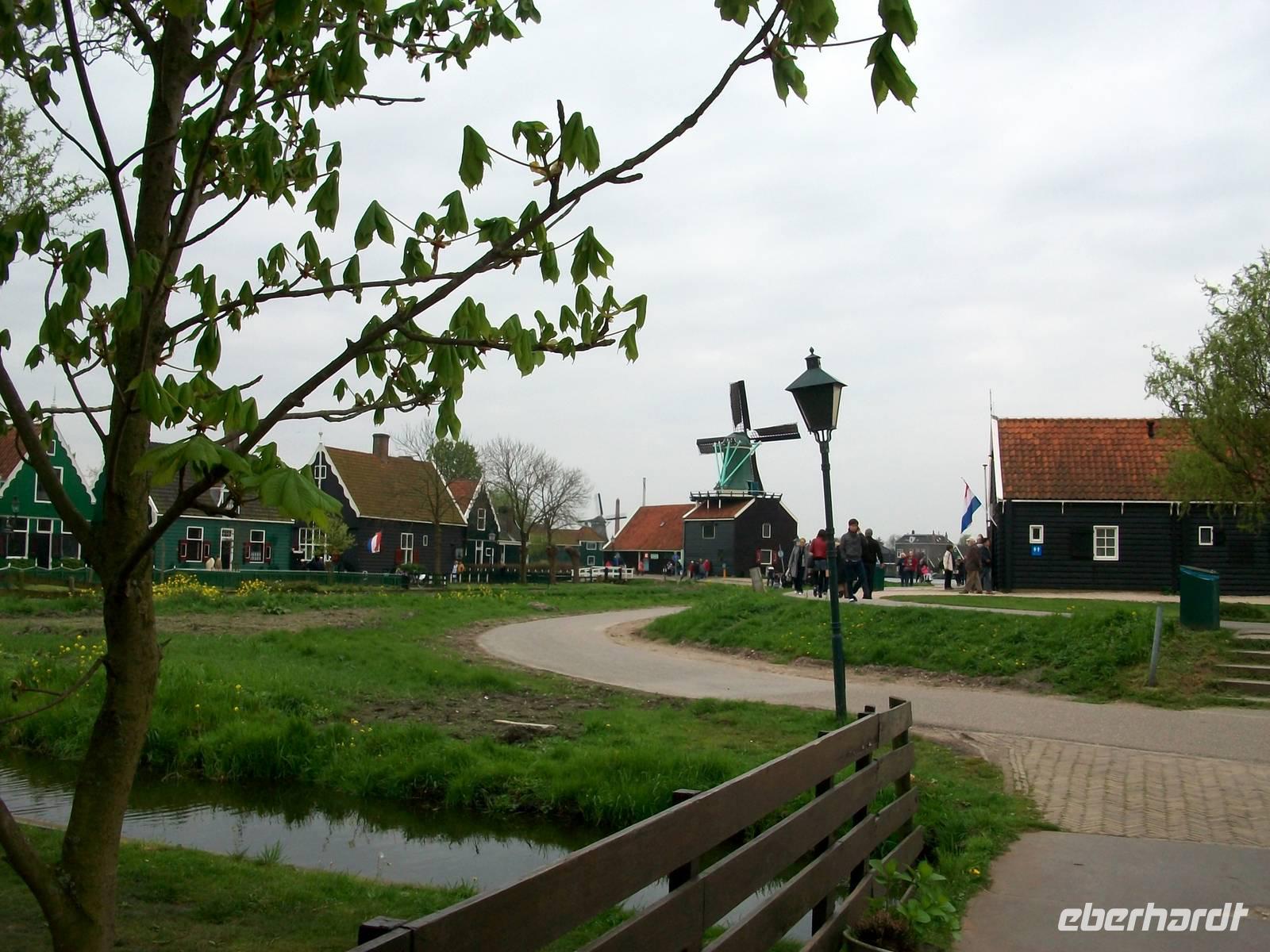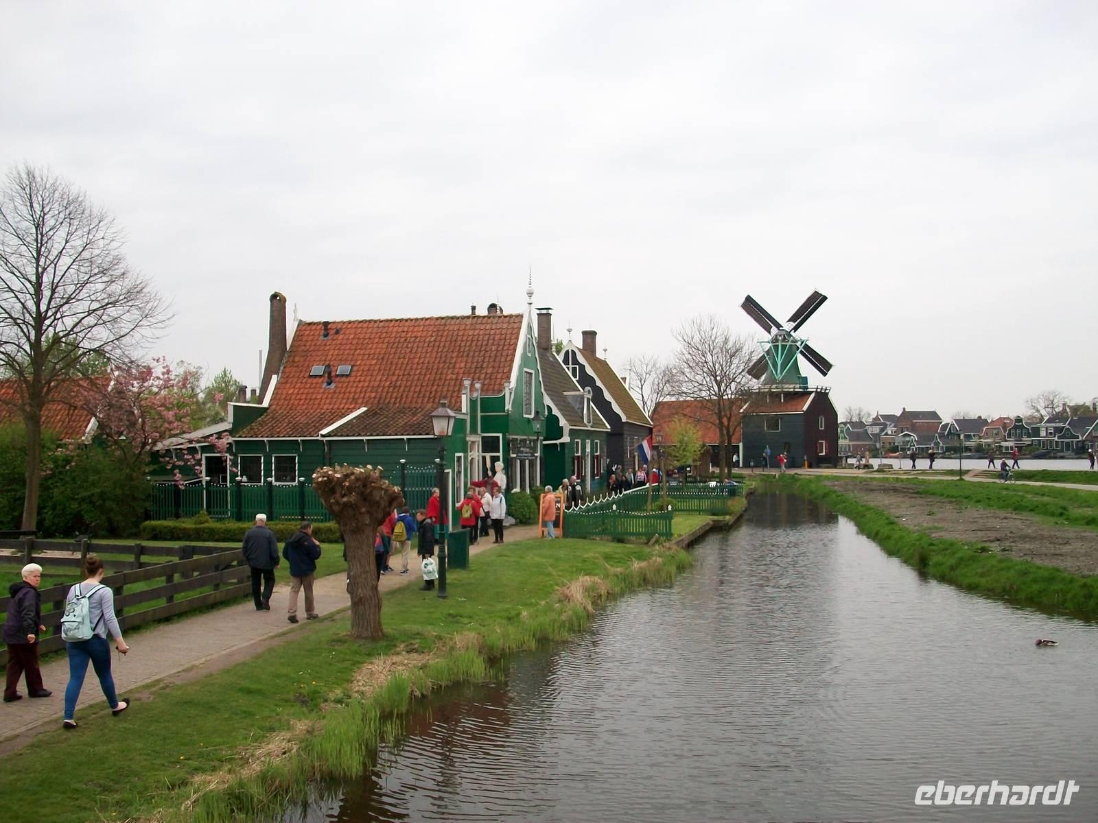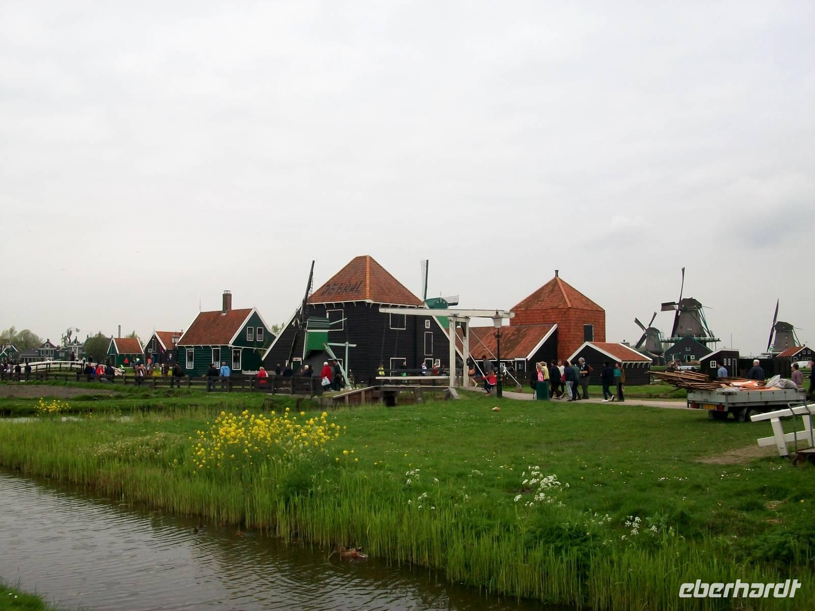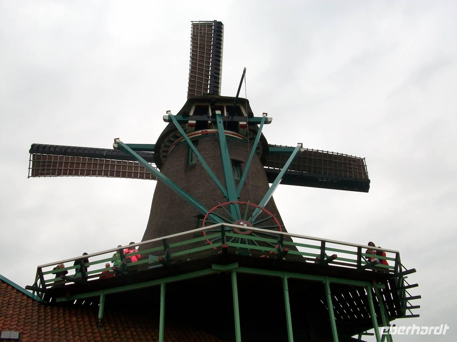 Es geht in Richtung Zaanstad, hier erlernte einst der russische Zar das Handwerk eines Schiffszimmermanns und hier ist auch ein Museumsdorf aufgebaut welches wir nun besuchen: Zaanse Schans. Schon von weiten sind die zahlreichen Windmühlen zu sehen, lustig drehen sich die mächtigen Flügel im Wind; hier tauchen wir nun ein in das Holland vergangener Jahrhunderte. Wir sehen die alten Wohnhäuser und erahnen das Leben der Menschen zur damaligen Zeit. Über Brücken welche über kleine Kanäle führen geht der Weg hinüber zu den großen Windmühlen. Mit ihnen wurde nicht nur Getreide gemahlen sondern auch Ölfrüchte durch Pressung zu Öl verarbeitet. Eine andere Mühle diente zum Holz sägen; die Palette der Nutzung der Windkraft war damals riesengroß.