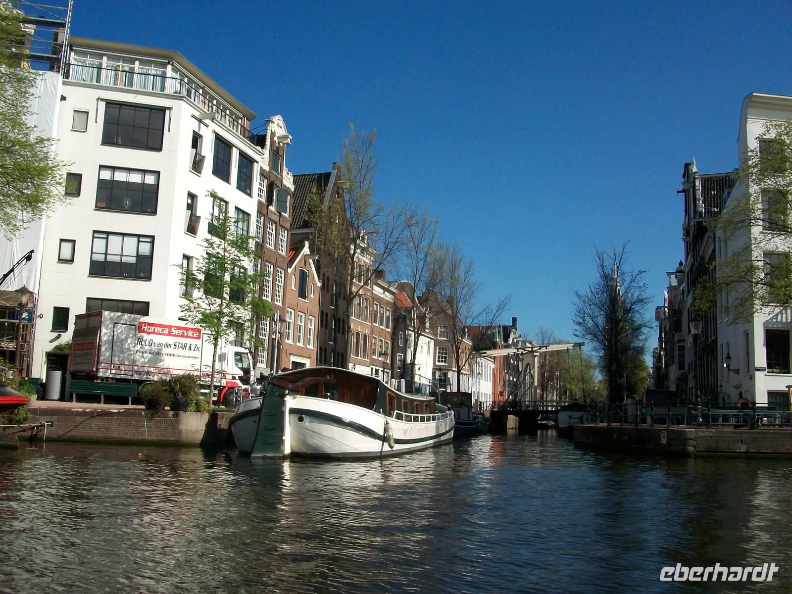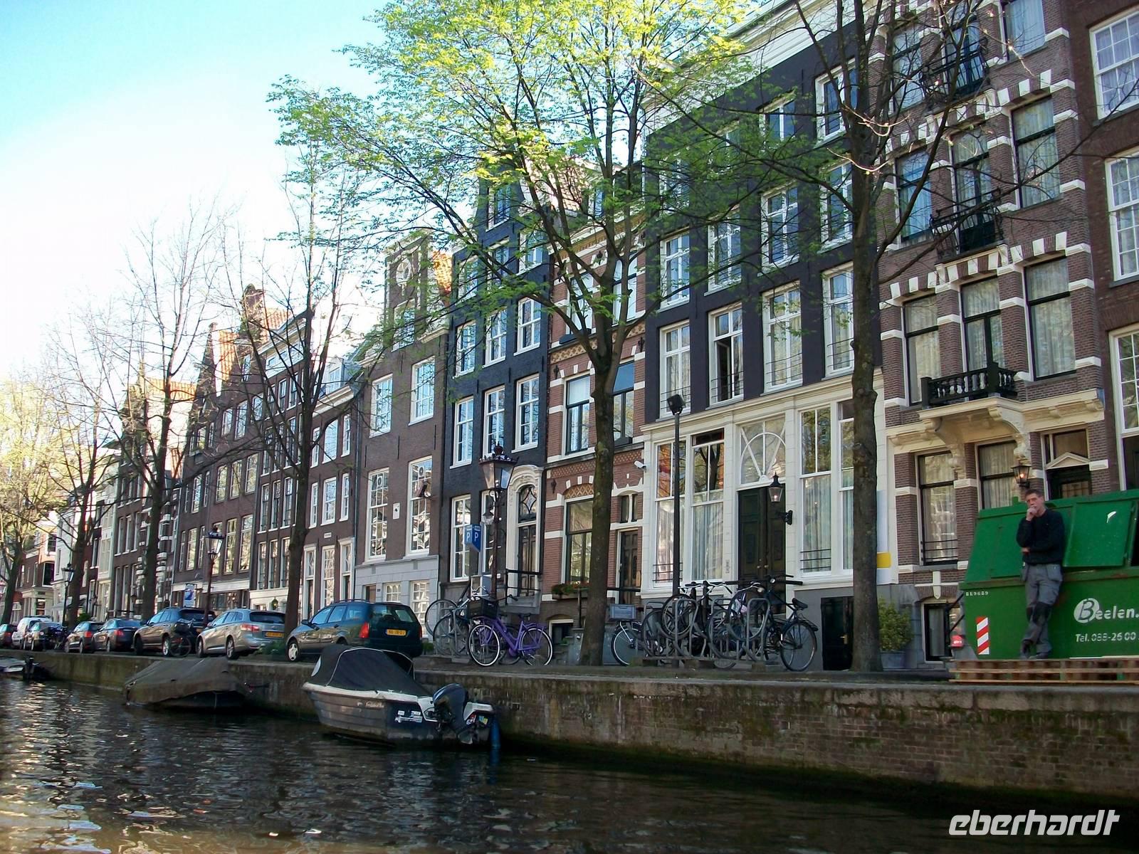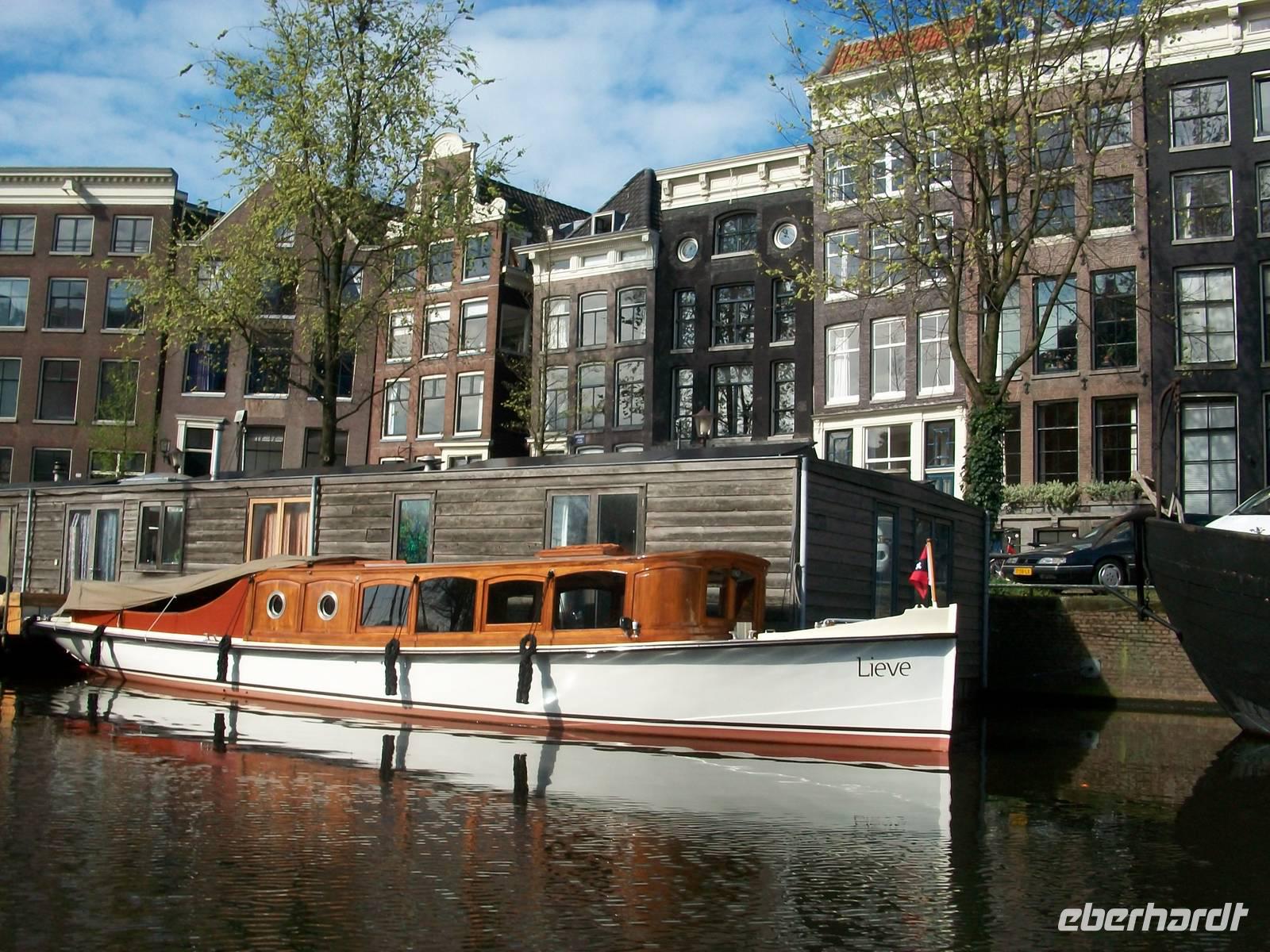 Bei sonnigem Wetter hat es sich unserer Reisegruppe im Schiff bequem gemacht, nun kann sie losgehen, die Erkundung Amsterdams vom Wasser aus. Leise schaukelnd nehmen wir unsere Bahn durch die zahlreichen Kanäle dieser Stadt die hier Grachten heißen. Wir sehen pittoreske Hausboote, fahren an den reichen und herrschaftlichen Häusern mit ihren schönen Fassaden und Giebeln vorbei, und erfahren so manch wissenswertes Detail über diese Stadt.