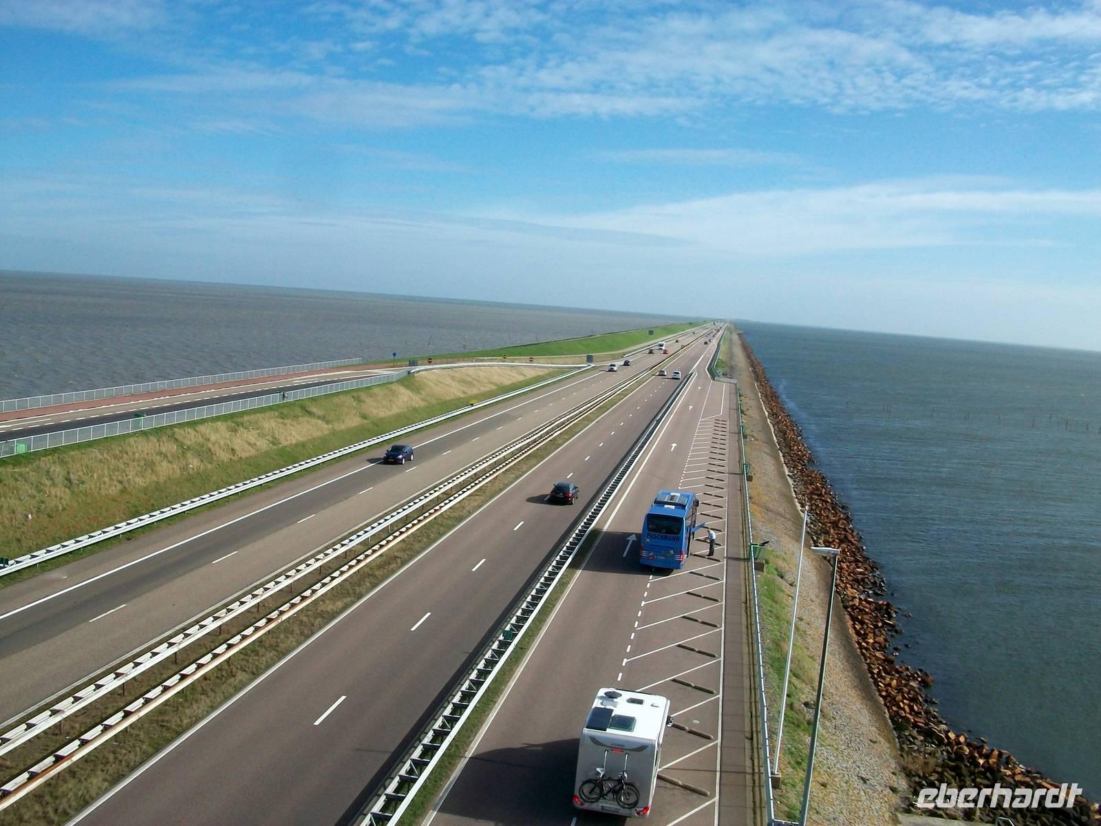 Weiter führt uns der Weg hinüber nach Friesland und schließlich nach Flevoland. Das ist ein ganz besonderes Land; große Teile wurden dem Meer erst nach dem 2. Weltkrieg abgewonnen, und durchschnittlich 5 Meter unter dem Meeresspiegel rollen wir auf ehemaligem Meeresgrund dahin. Der Gedanke daran ist faszinierend, und die Vorstellung wie von Menschenhand solche Wunder vollbracht werden können, setzt uns in Erstaunen. Beim Ort Lelystad nehmen wir dann über einen weiteren Damm unseren Weg, er trennt das IJsel- vom Markermeer.