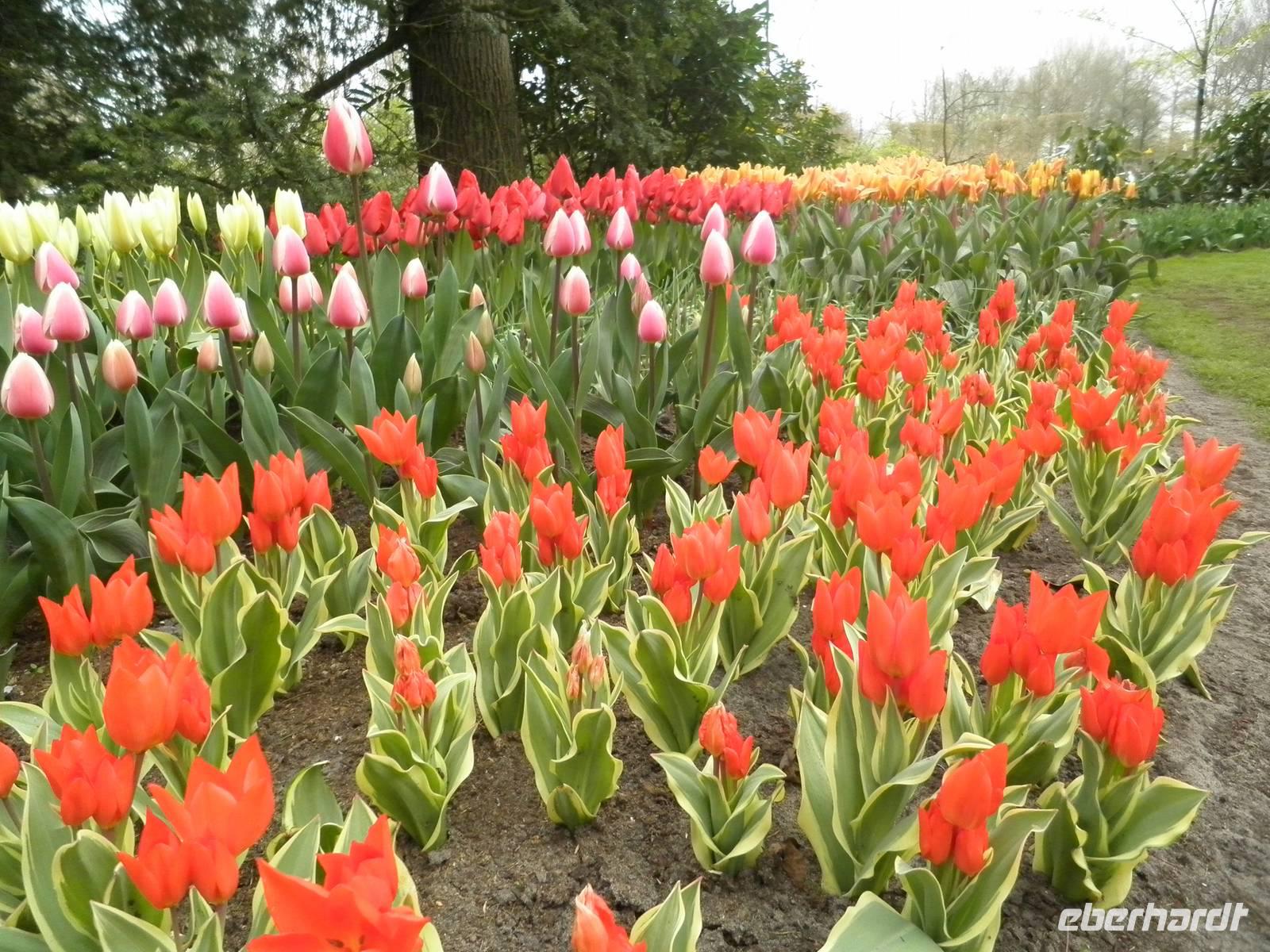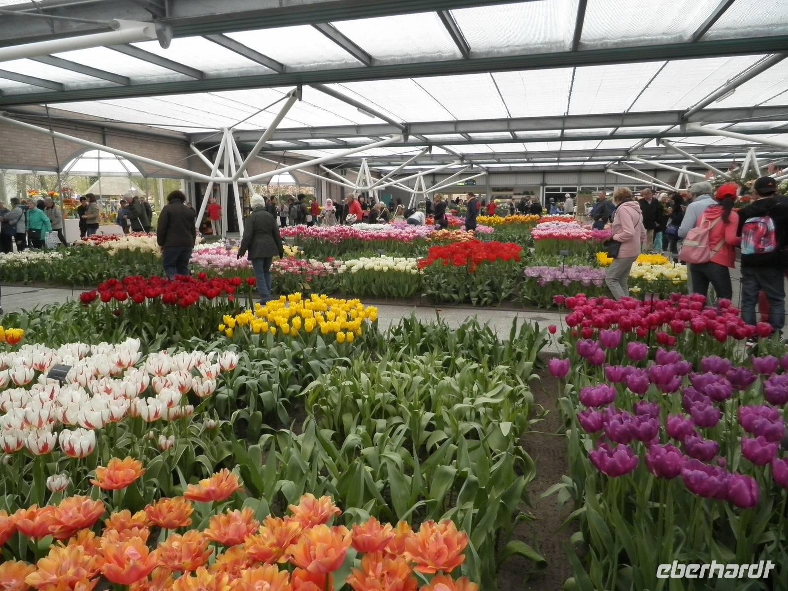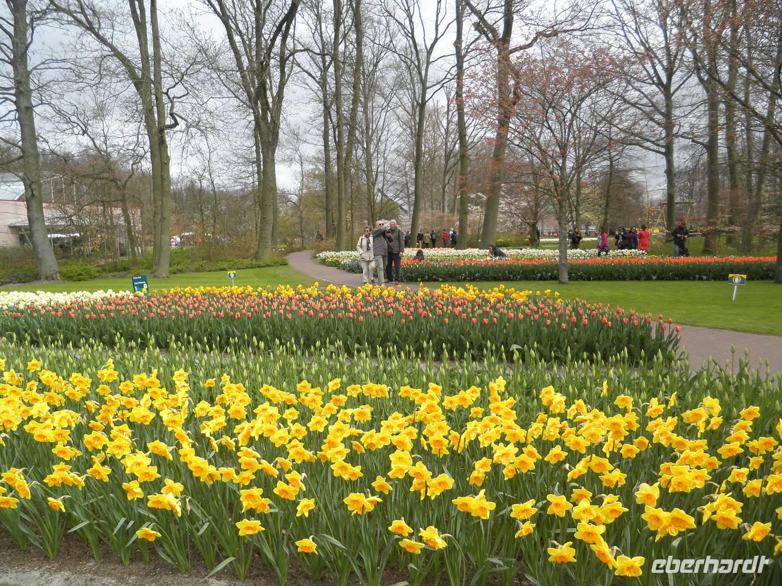 Am Morgen brachen wir auf und besuchten zuerst den Keukenhof. Wir waren früh da, so dass wir noch vor dem größten Ansturm den Park betraten. Wir bestaunten nicht nur herrlichste Felder mit Zwiebelblumen, sondern konnten auch zwischen prachtvollen Blütenarrangements in den verschiedenen Themenhallen wandeln. Die Blumen im Freigelände hatten sich über die ersten Sonnenstrahlen der letzten Tage gefreut, heute aber war der Himmel bedeckt, dennoch blieb es zu unserer Freude trocken. Im Anschluss an den Besuch des Keukenhofs hatten wir Gelegenheit, bei einem Blumenhändler Tulpenzwiebeln und andere Pflanzen zu erstehen.