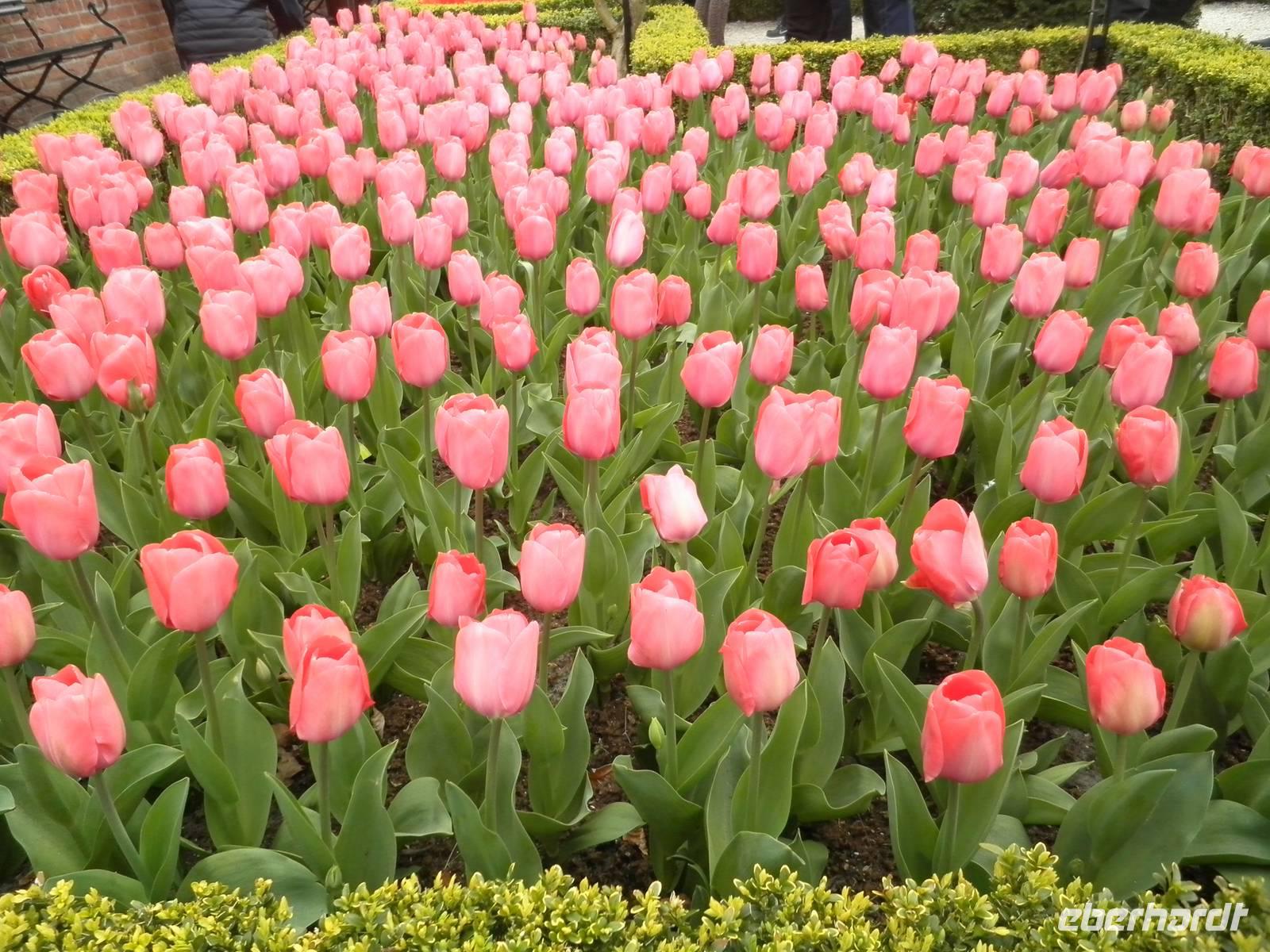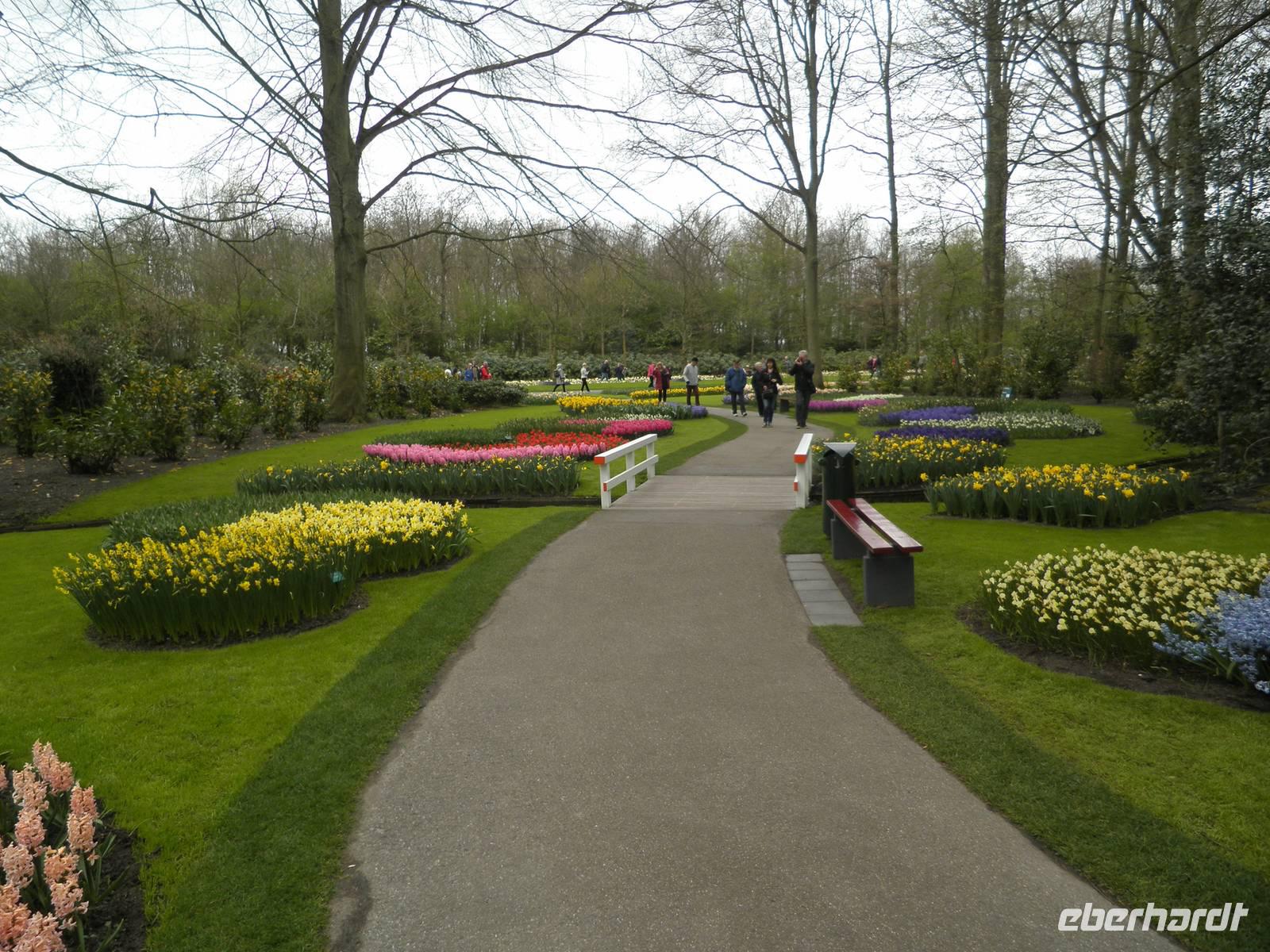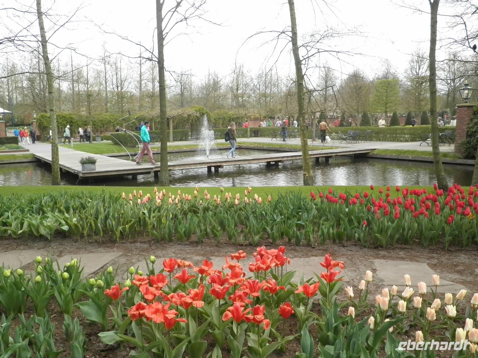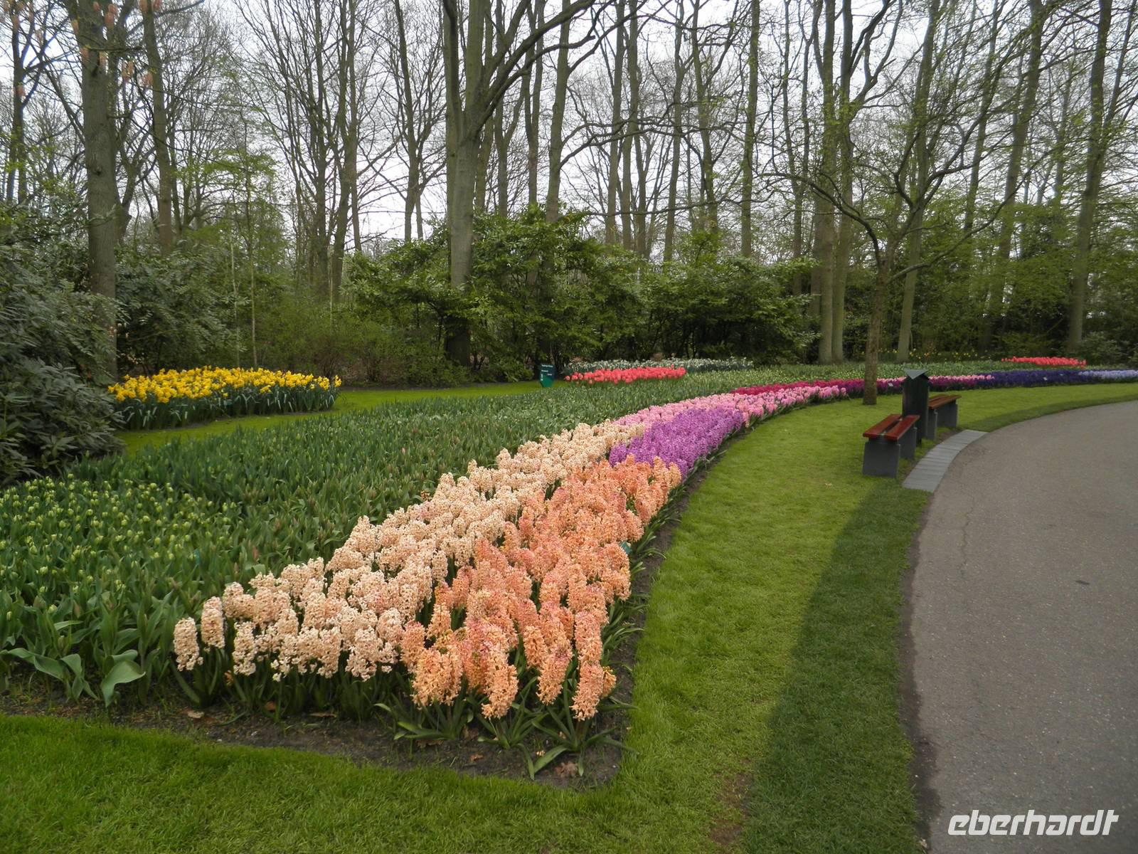 Am Morgen brachen wir auf und besuchten zuerst den Keukenhof. Wir waren früh da, so dass wir noch vor dem größten Ansturm den Park betraten. Wir bestaunten nicht nur herrlichste Felder mit Zwiebelblumen, sondern konnten auch zwischen prachtvollen Blütenarrangements in den verschiedenen Themenhallen wandeln. Die Blumen im Freigelände hatten sich über die ersten Sonnenstrahlen der letzten Tage gefreut, heute aber war der Himmel bedeckt, dennoch blieb es zu unserer Freude trocken. Im Anschluss an den Besuch des Keukenhofs hatten wir Gelegenheit, bei einem Blumenhändler Tulpenzwiebeln und andere Pflanzen zu erstehen.