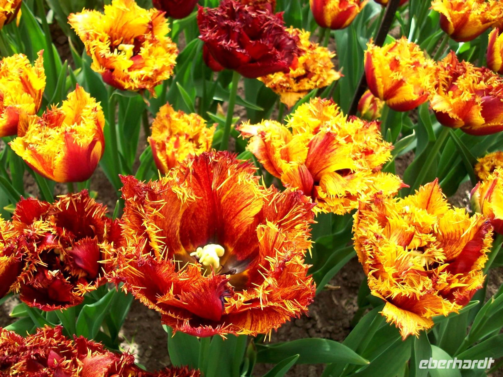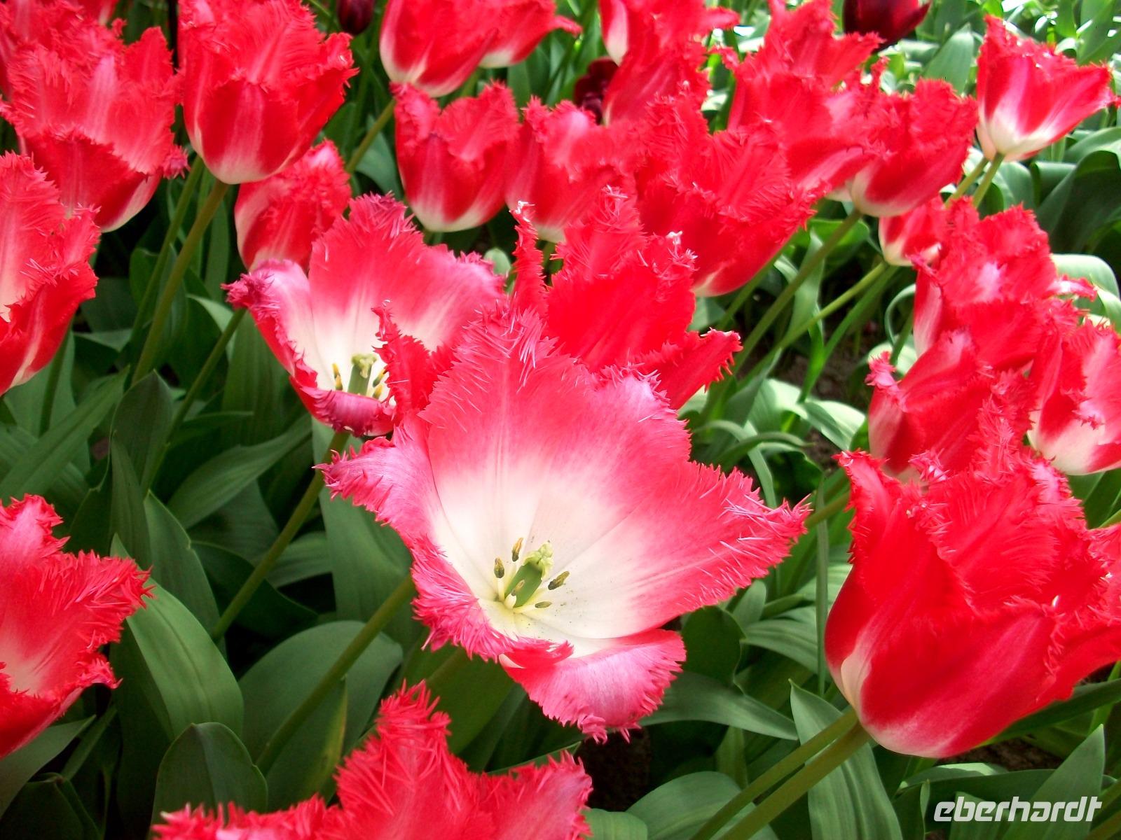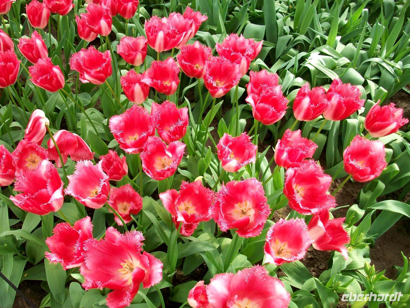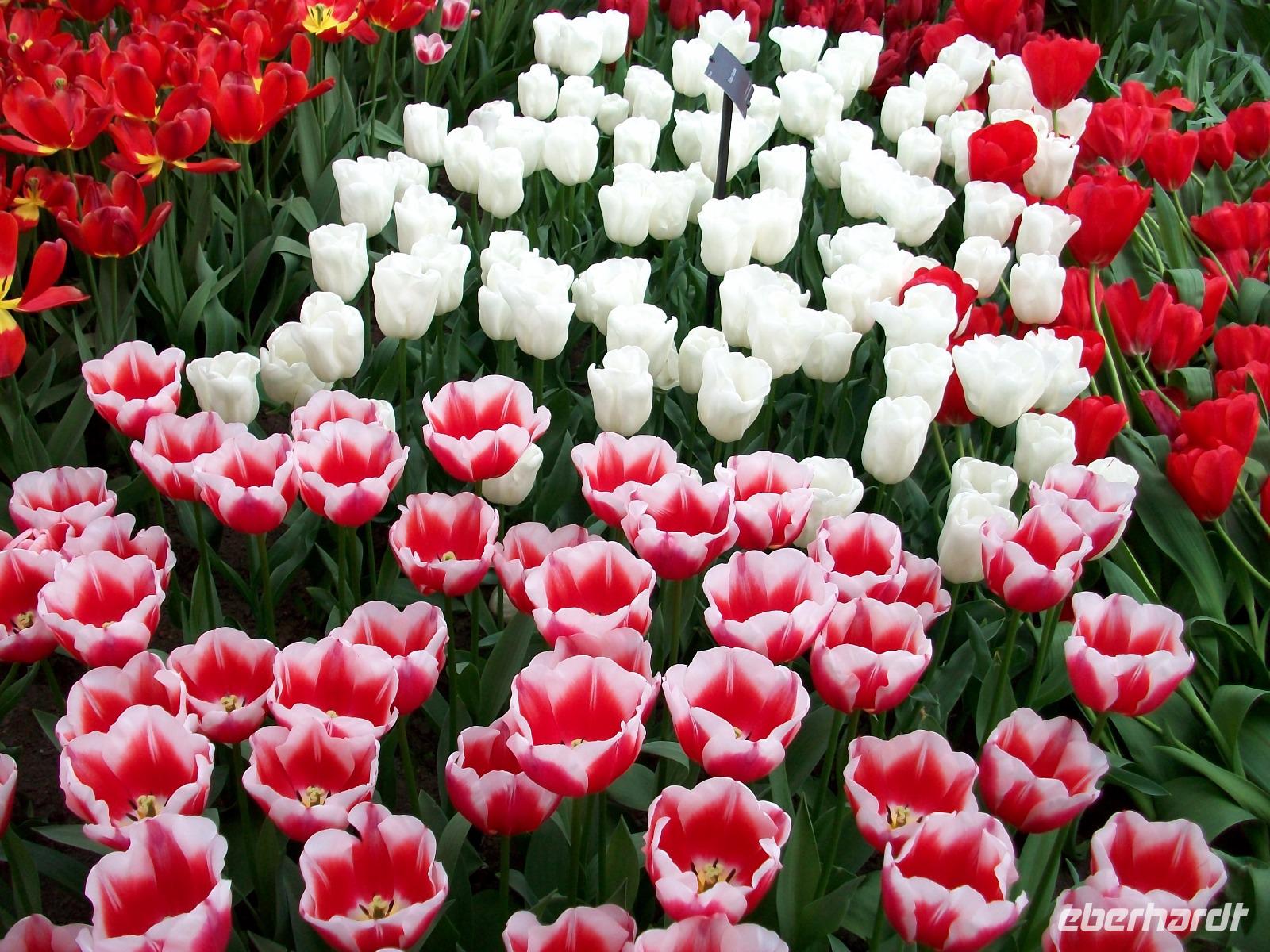 8.30 Uhr. Unser Bus steht bereit; eine kühle Brise umweht uns, aber bald sind wir unterwegs. Leider geht es nicht ganz ohne Stau, aber nach einer knapp zweistündigen Fahrt langen wir dann an unserem ersten Ziel an, dem Keukenhof. Einstmals diente er zum Anbau allerlei würziger Pflanzen, daher sein Name (deutsch: Küchenhof), heute jedoch ist er ein Muss für Blumenfreunde aus der ganzen Welt. Zahlreiche Busse sind schon auf dem Parkplatz zu sehen, bald sind die Karten verteilt und der Besuch kann beginnen. Zunächst gelangen wir zu einem kleinen See mit Springbrunnen, von hier beginnen dann die Wege durch den Park. Flankiert wird der Rundgang von immer neuen farbenprächtigen Impressionen und das Auge kann sich gar nicht satt sehen an der Farbenpracht der Blumen. Überall sind Tulpen zu sehen in Formen und Farben die es wohl nur hier gibt. Aber das nicht allein; ein intensiver Geruch kündigt uns ein Beet von Hyazinthen an, dort um die Ecke stehen gelb blühende Narzissen und wenig später gelangt der Besucher an den großen See der buchstäblich eingerahmt ist von einem Blütenmeer. Dazu lacht die Sonne vom blauen Himmel herab, die Vögel zwitschern und wir können den Besuch dieser einmaligen Blumenschau mit allen Sinnen genießen. Wie schön ist die Natur für den, der sich an ihr erfreuen kann!