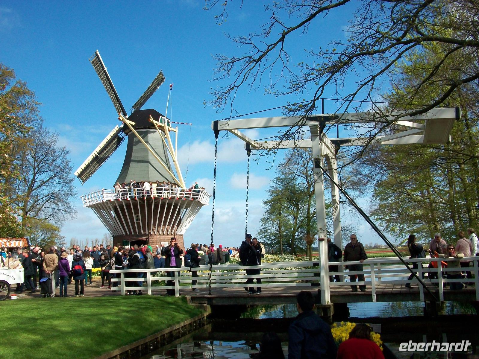 Am Ende des Parks steht eine typische Holländermühle die man besuchen kann und von hier hat man auch einen Blick auf die Blumenfelder des Landes. Dabei vergeht die Zeit wie im Fluge; am Nachmittag hat sich unsere Gruppe wieder eingefunden um einem weiteren Ereignis entgegen zu fahren.