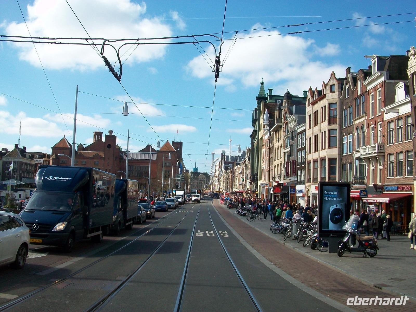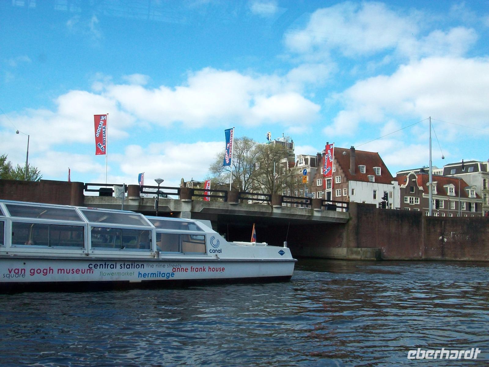 Gegen elf endet die Grachtenfahrt und nun steht unseren Reisegästen Amsterdam zur freien Verfügung. Da gibt es viel zu sehen; einmal den Damrak hinauf zum schlagenden Herzen der Stadt, man ist auf dem großen Platz angelangt. Von hier sieht man das Ehrenmal, das Königliche Palais und die Neue Kirche; nicht weit von hier, und der Besucher gelangt ins historische Zentrum der Stadt, rund um die Alte Kirche auch ins etwas verruchte Rotlichtviertel; Amsterdam ist reich an solchen Eindrücken die es nur hier gibt. Und überall die Kanäle, sie sind mit Brücken überspannt und von diesen aus hat der Betrachter einen besonderen Blick auch auf die Hausboote der Stadt.