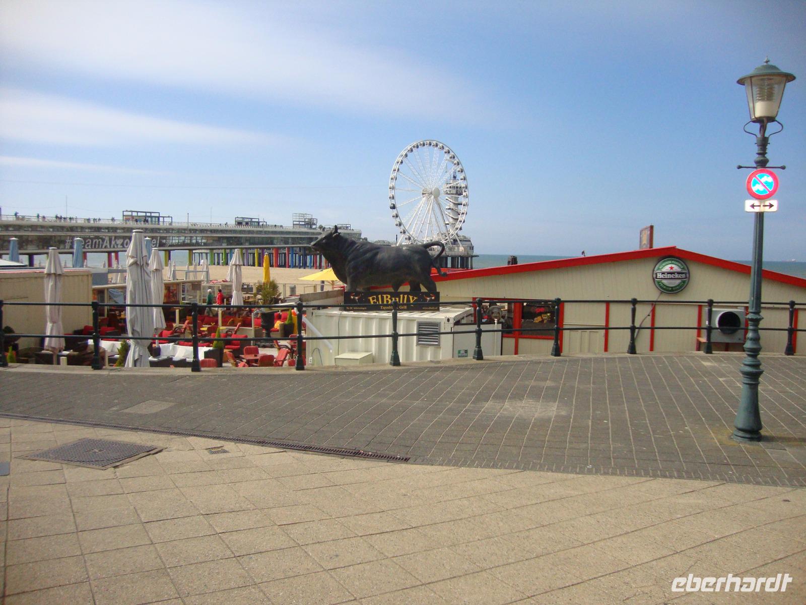 Am Nachmittag besuchten wir das Seebad Scheveningen. An sonnigen Wochenenden flanieren tausende Schau-und Badelustige auf der vier Kilometer langen Strandpromenade. Prunkstück ist der 400 m lange Pier, vis-a-vis vom pompösen Jugendstilbau des früheren Kurhauses, in dem heute ein Luxushotel und eine Filiale des Holland Casinos residieren. das in die Dünen eingefügte Skulpturenmuseum "Beelden aan Zee" zeigt interessante Objekte von Alfred Hrdlicka, Niki de Saint Phalle und anderen Künstlern. Bei einem Bummel über die promenade konnte man ein Eis essen, Matjes probieren oder Kibbeling kosten. Es war noch nicht das große Gedränge wie zur Sommerzeit. Bevor wir uns auf die Rückfahrt zum hotel begaben, erhielt jeder Reisegast noch eine kleine Tulpenschale als Souvenir, welches viel Freude bereitete. Den ganzen Tag schien die Sonne.