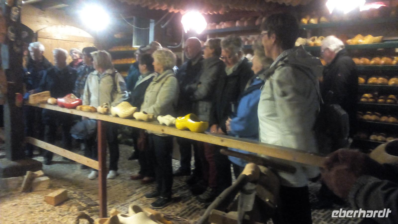 Es regnet auch heute am frühen Morgen. Die Wettervorhersage verkündet eine Besserung der Wetterlage. Deshalb fahren wir am Morgen zur Holländermühle in Amstelveen und besuchen den Rembrandt Hoeve, eine Käserei mit Verkostung und Holzschuhmacherei, die bei einer Fahrt nach Holland (Niederlande) nicht fehlen darf. Anschießend fahren wir mit Gisela nach