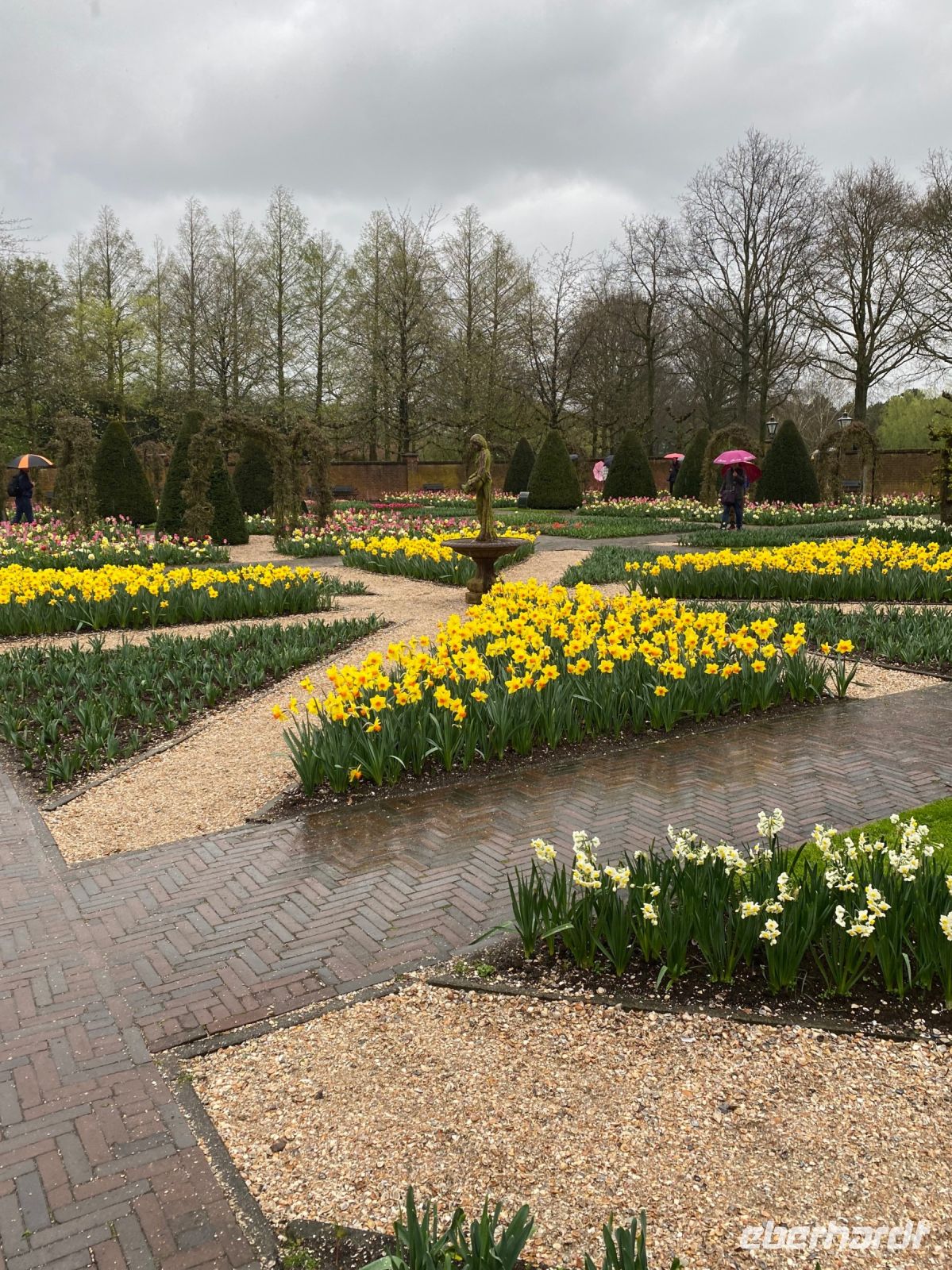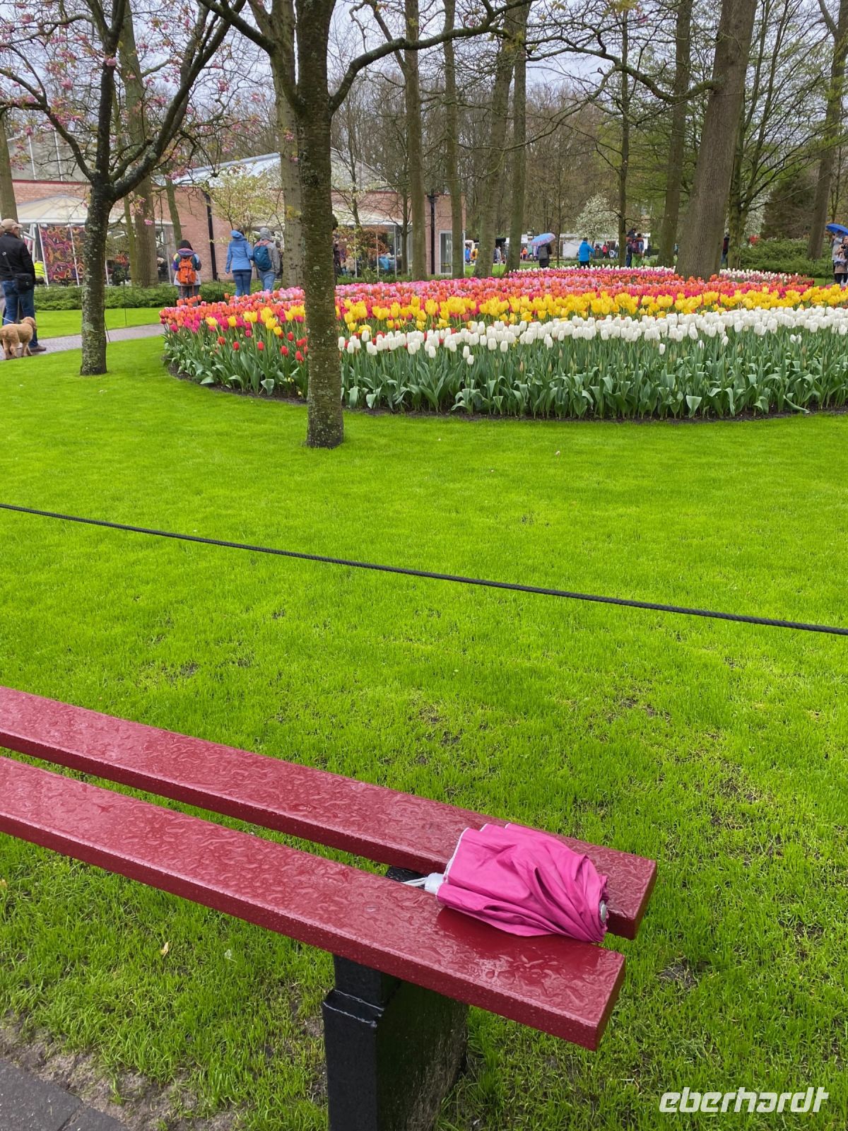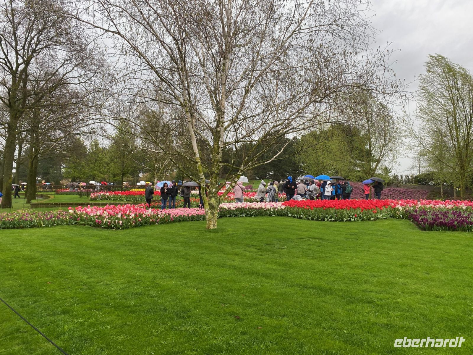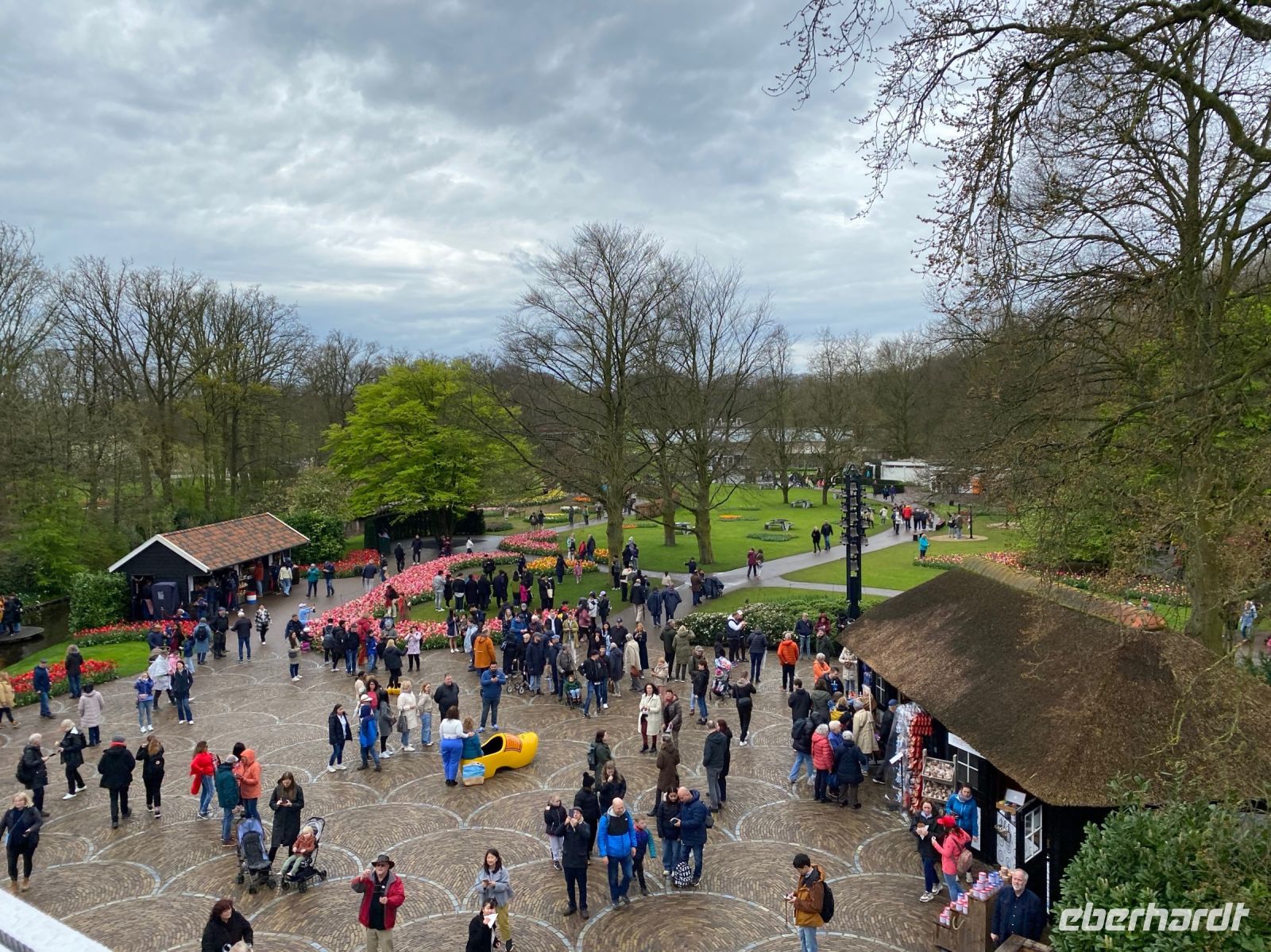 Der Name bedeutet eigentlich Küchenhof oder Küchengarten. Seine Ursprünge reichen zurück bis ins 15. Jahrhundert als hier Jakobäa von Bayern, eine adelige Dame aus einer Seitenlinie der Wittelsbacher die mit ihr endete, einen sehr feinen Garten für Kräuter, Obst und Gemüse anlegte. Im 19. Jahrhundert wurde daraus ein privater englischer Landschaftsgarten und nach dem zweiten Weltkrieg, genaugenommen 1949, hatte eine Gruppe niederländischer Blumenzwiebelzüchter und -händler die Idee hier eine Schau ihrer schönsten Züchtungen zu veranstalten, die bald immer größer und größer wurde. Dieses Jahr feiert man das 75. Jubiläum dieser Erfolgsidee und mittlerweile sind es100 Hoflieferanten, die für Tulpenzwiebeln sorgen und 600 Züchter liefern weitere Blumen und Pflanzen, die überall im Park und auch in mehreren Pavillons zu bewundern sind.