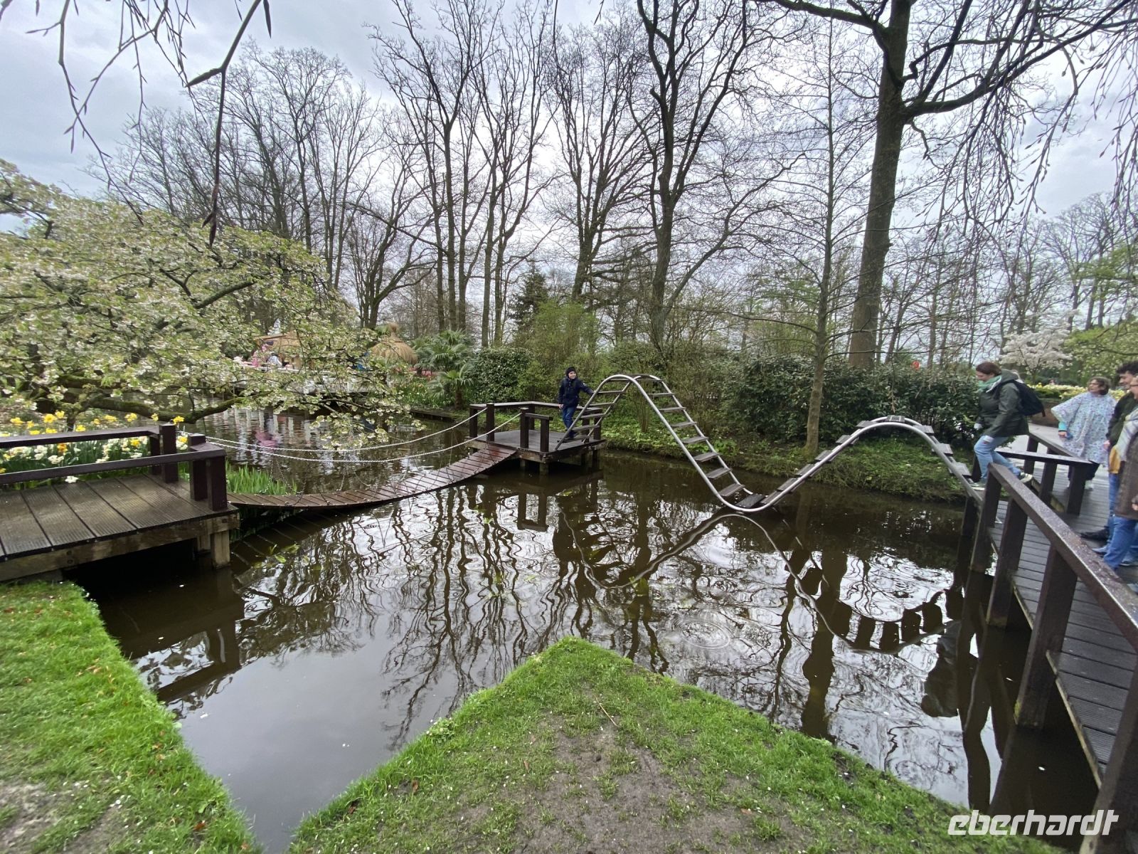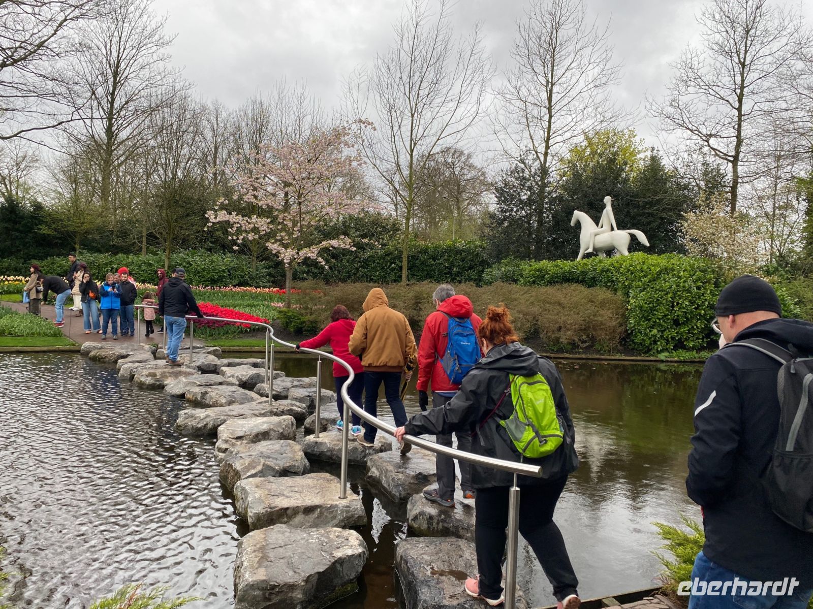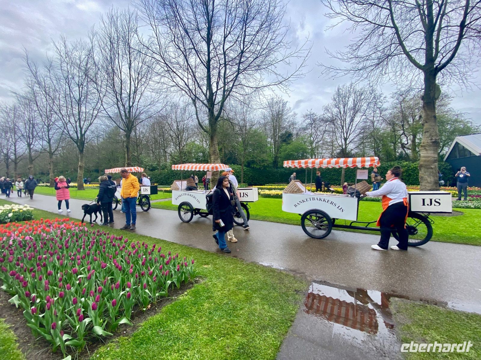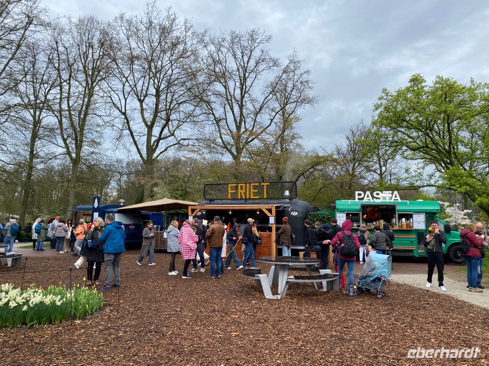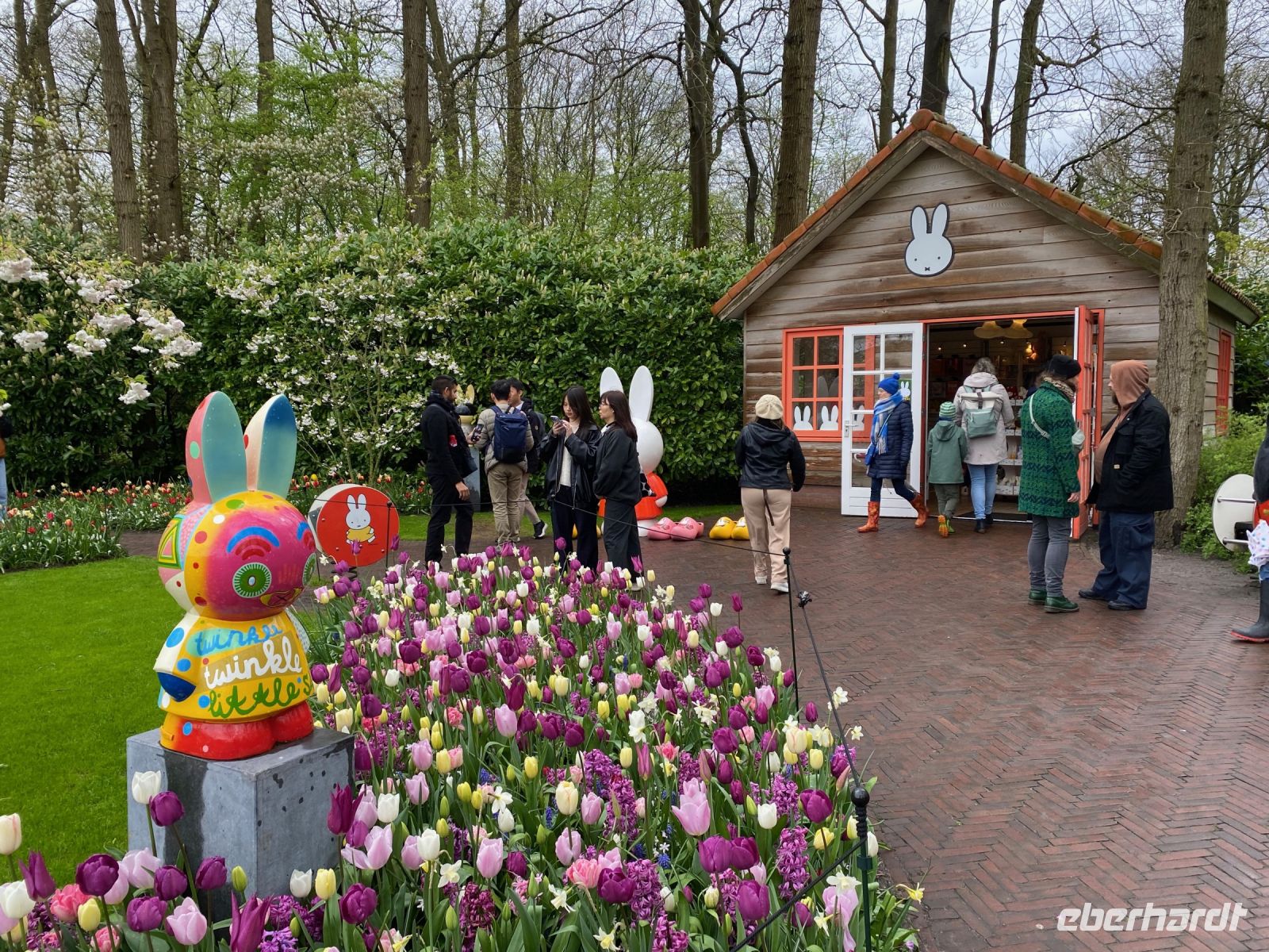 Der Name bedeutet eigentlich Küchenhof oder Küchengarten. Seine Ursprünge reichen zurück bis ins 15. Jahrhundert als hier Jakobäa von Bayern, eine adelige Dame aus einer Seitenlinie der Wittelsbacher die mit ihr endete, einen sehr feinen Garten für Kräuter, Obst und Gemüse anlegte. Im 19. Jahrhundert wurde daraus ein privater englischer Landschaftsgarten und nach dem zweiten Weltkrieg, genaugenommen 1949, hatte eine Gruppe niederländischer Blumenzwiebelzüchter und -händler die Idee hier eine Schau ihrer schönsten Züchtungen zu veranstalten, die bald immer größer und größer wurde. Dieses Jahr feiert man das 75. Jubiläum dieser Erfolgsidee und mittlerweile sind es100 Hoflieferanten, die für Tulpenzwiebeln sorgen und 600 Züchter liefern weitere Blumen und Pflanzen, die überall im Park und auch in mehreren Pavillons zu bewundern sind.