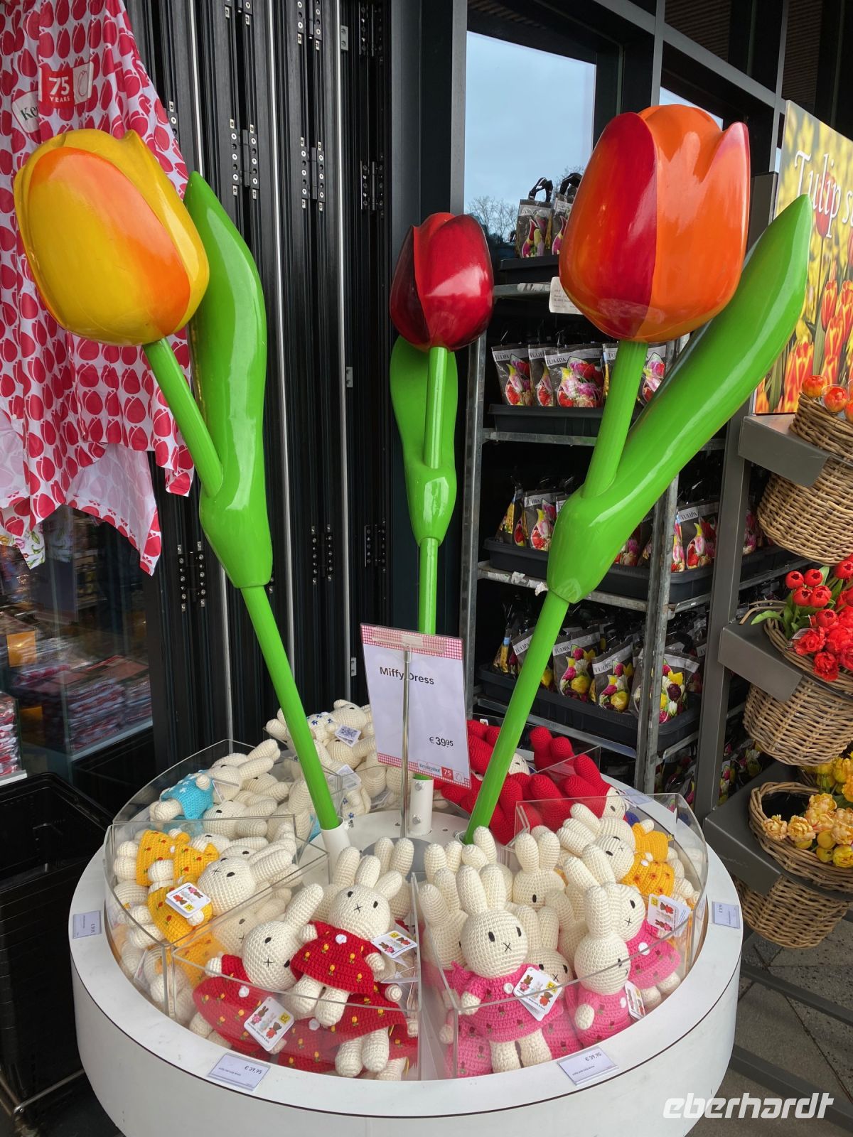 Tatsächlich nimmt nach einigen Stunden der Wind immer mehr zu und während wir genau zur rechten Zeit unseren Bus besteigen, klappen bei anderen Besuchern bereits die ersten Schirme im Wind um. Alle sind pünktlich an Bord und so haben wir noch Zeit um bei einem Blumenzwiebelhändler einen Halt zu machen. In einigen deutschen Häusern und Gärten wird in den nächsten Monaten wohl einiges an holländischer Blütenpracht zu bestaunen sein!