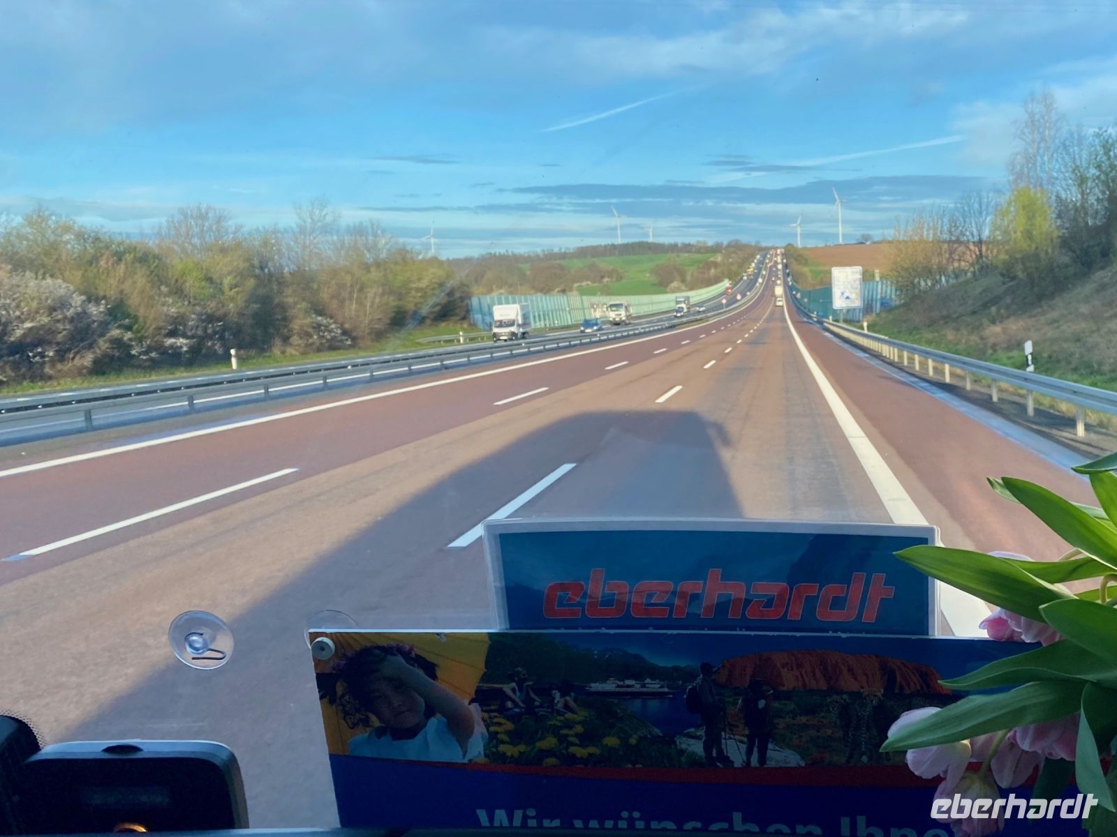 Vier von uns verabschieden sich und reisen mit dem Auto auf eigener Achse nach Hause. 34 steigen noch einmal in unseren großen blauen Eberhardt-Luxusbus zu Frank, der uns sicher Richtung Heimat bringt. Schon bald erreichen wir die deutsche Grenze, heute ist Sonntag und ohne LKW-Verkehr auf der Autobahn vergeht die Fahrt fast wie im Fluge.