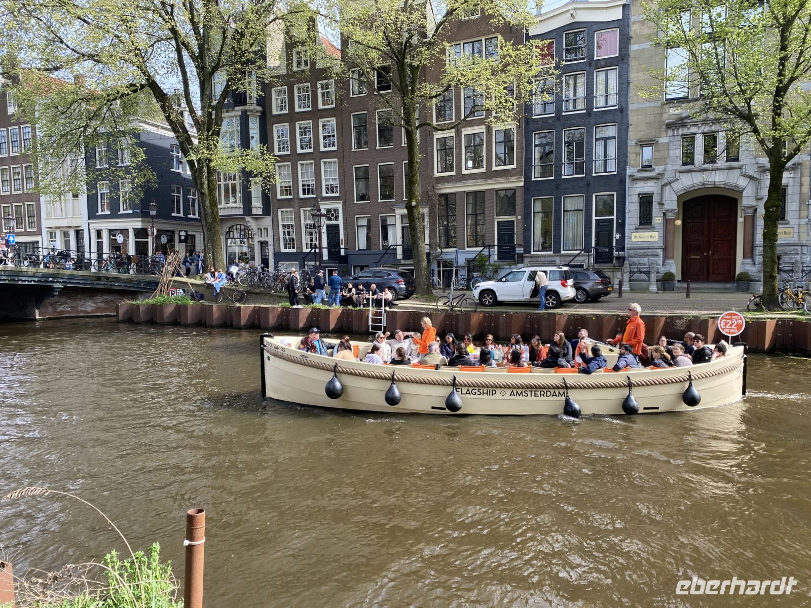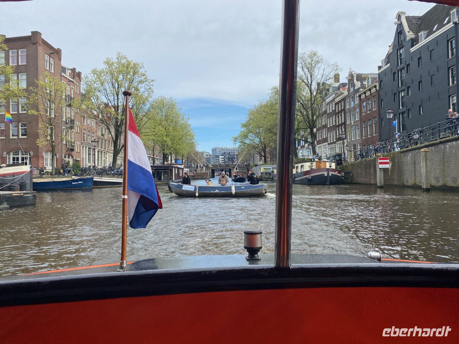 Auf keine Weise kann man die Stadt am und im Wasser besser erkunden als mit dem Boot. Die Innenstadt ist durchzogen von Kanälen, die hier Grachten genannt werden. Unsere Gruppe hat ein exklusives Boot gechartert auf dem wir unter unzähligen flachen Brücken hindurch die Stadt aus der Wasserperspektive kennenlernen.