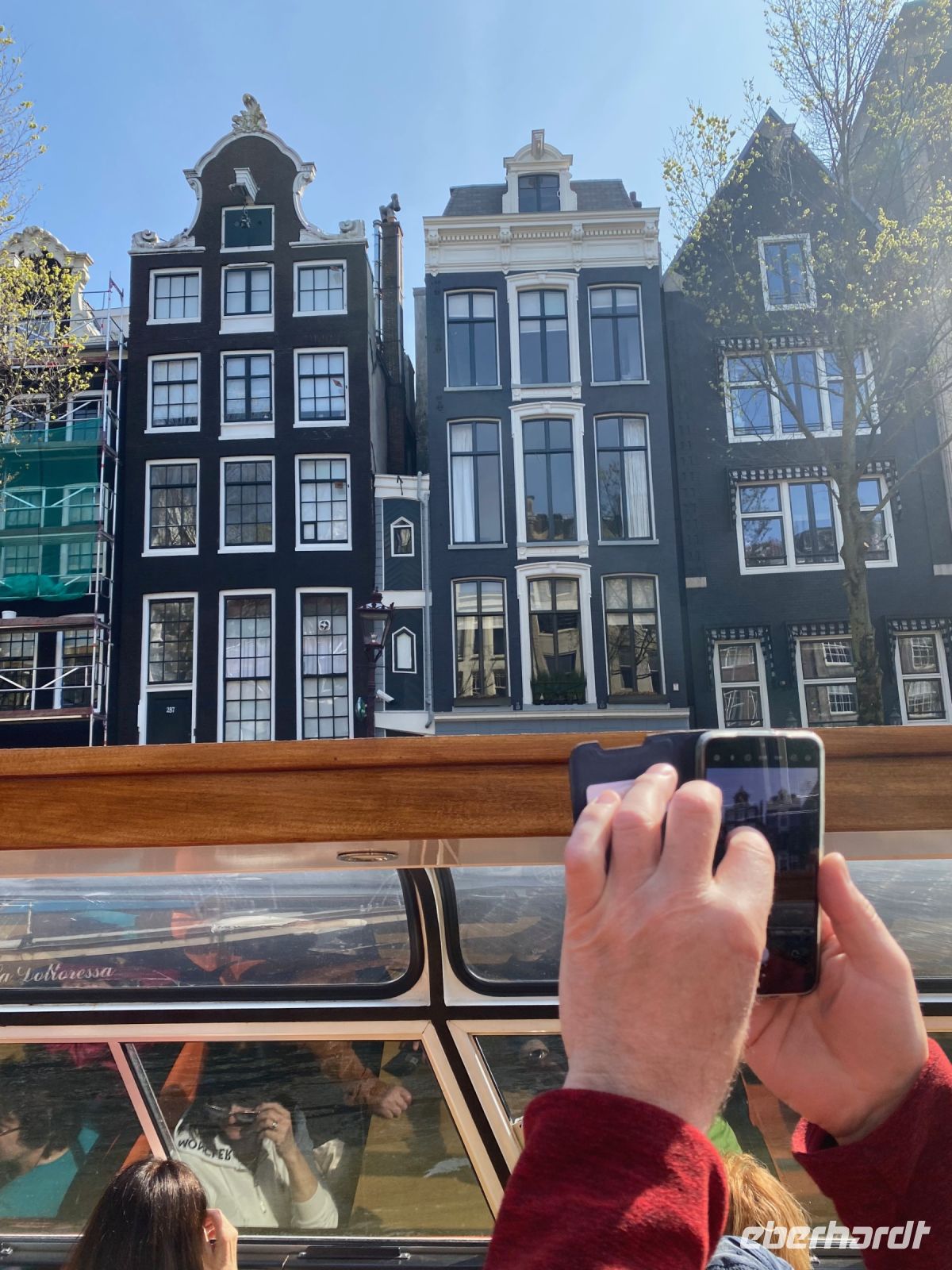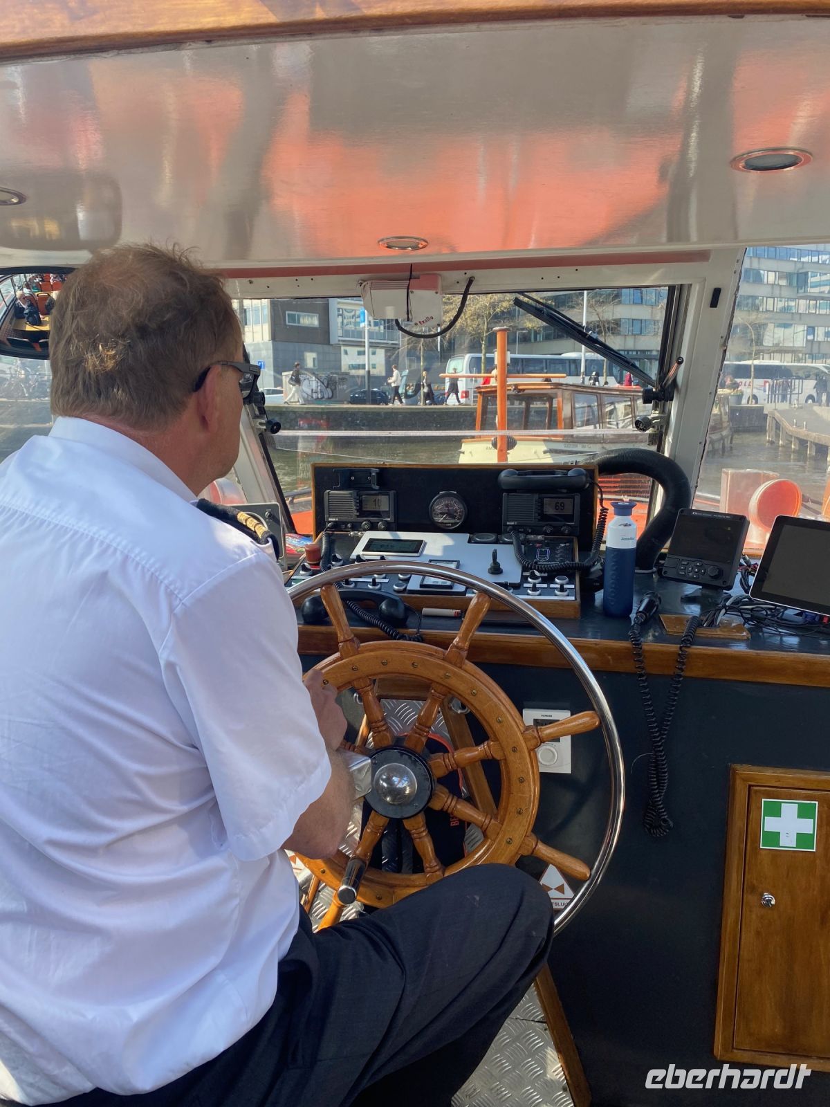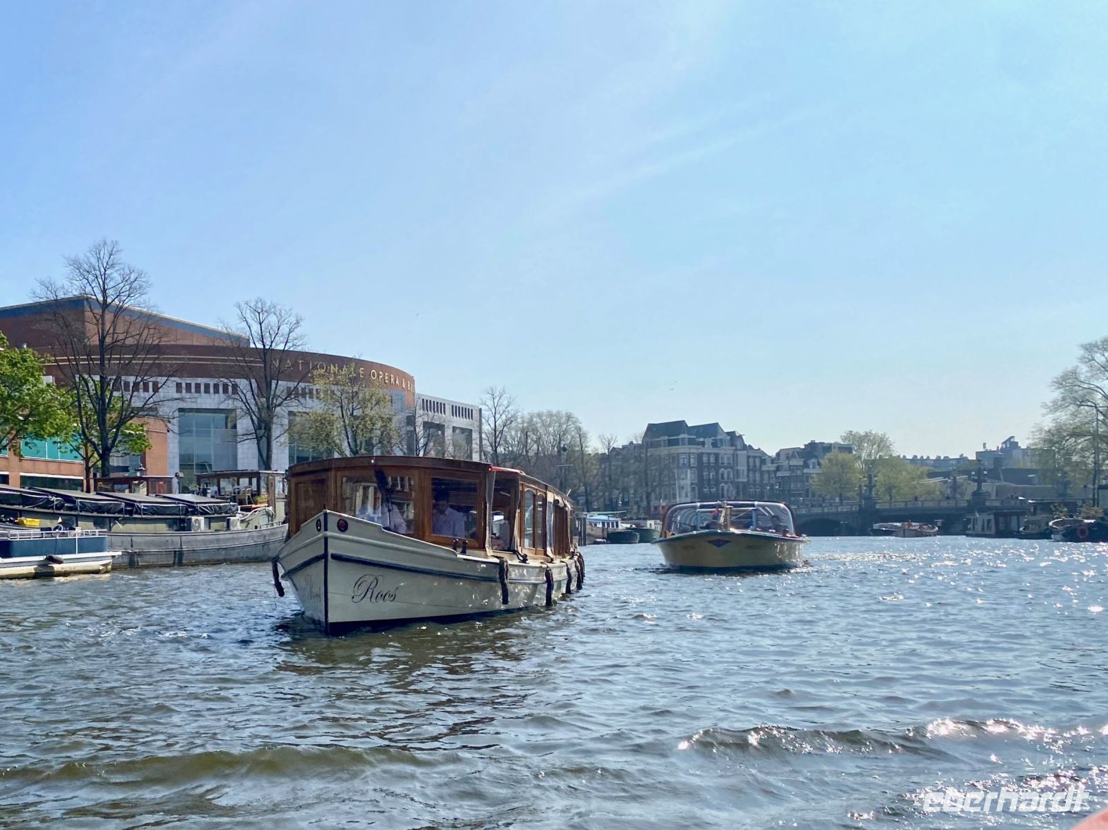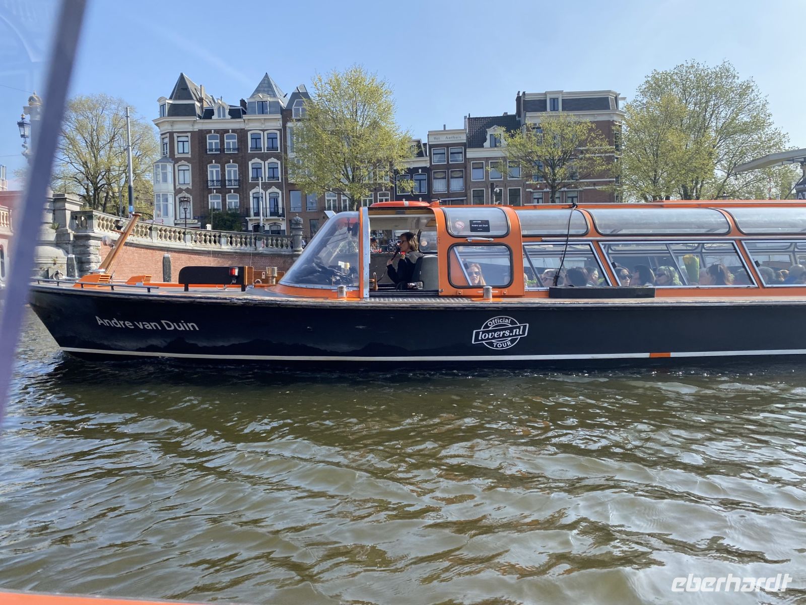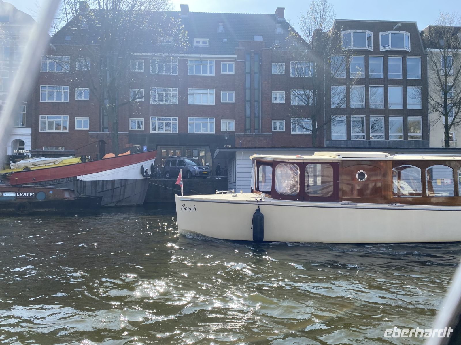 Das Herz Amsterdams entdecken wir vom Wasser aus: Bei einer exklusiven Bootsfahrt steuert uns unser Kapitän André souverän und humorvoll durch die Innenstadt Amsterdams. Fast lautlos gleiten wir unter niedrigen Brücken hindurch durch das Labyrinth der Grachten, vorbei an Giebelhäusern und teils sehr verwegen geparkten Autos. Unsere Tour endet nahe dem monumentalen Hauptbahnhof, von wo aus der Damrak zum Königlichen Palast am zentralen Damplatz führt.