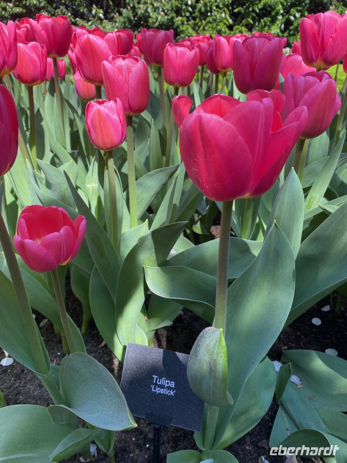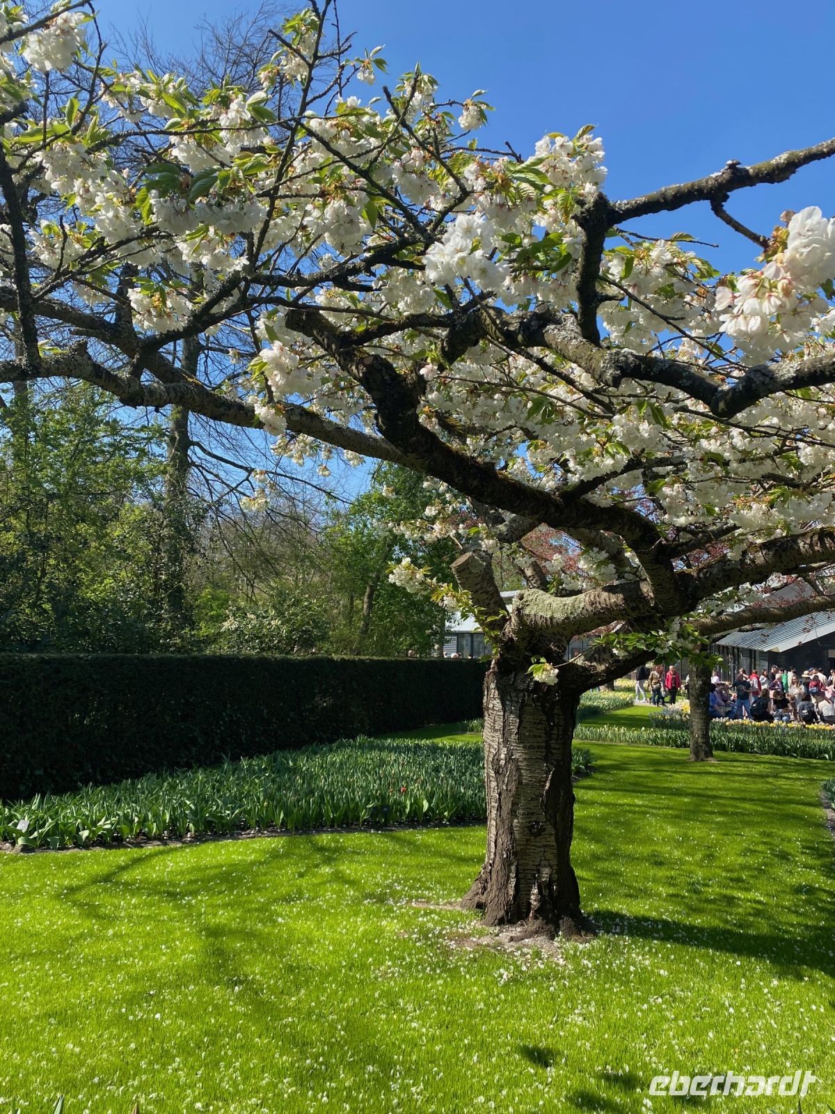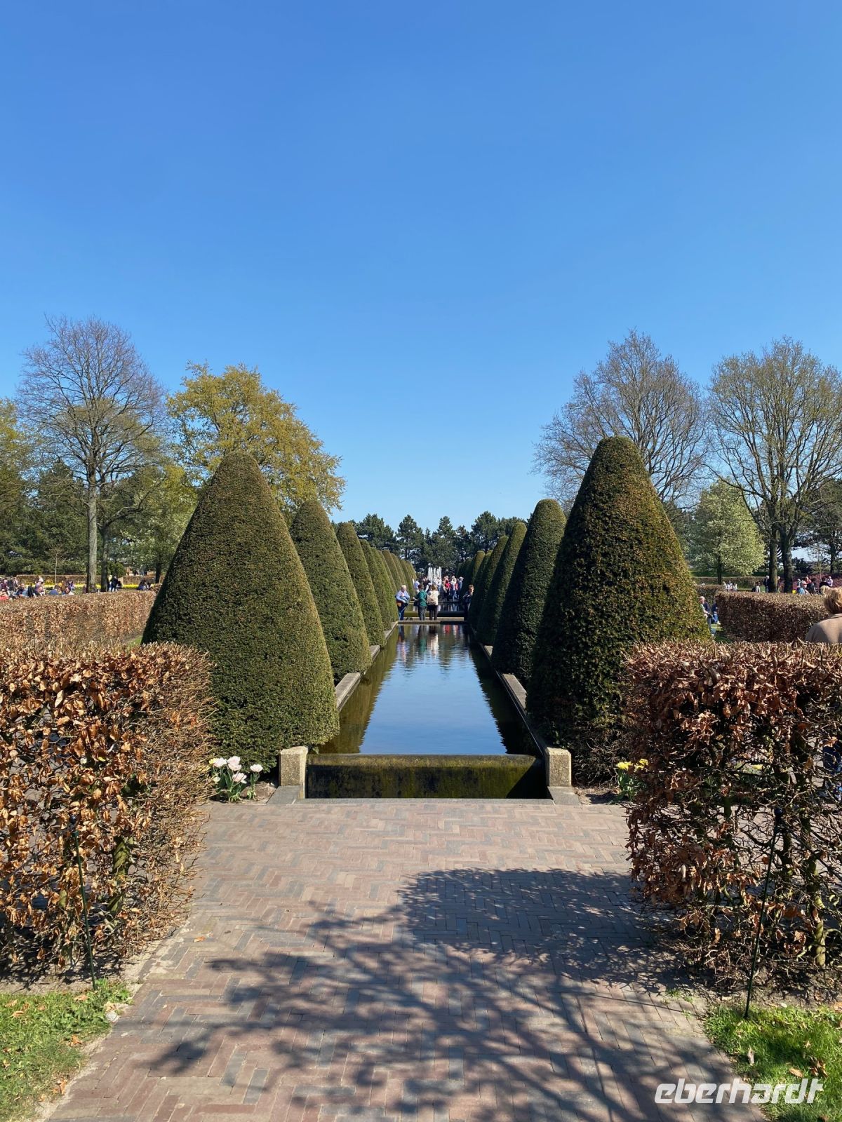 Der Name bedeutet eigentlich Küchenhof oder Küchengarten. Seine Ursprünge reichen zurück bis ins 15. Jahrhundert als hier Jakobäa von Bayern, eine adelige Dame aus einer Seitenlinie der Wittelsbacher die mit ihr endete, einen sehr feinen Garten für Kräuter, Obst und Gemüse anlegte. Im 19. Jahrhundert wurde daraus ein privater englischer Landschaftsgarten und nach dem zweiten Weltkrieg, genaugenommen 1949, hatte eine Gruppe niederländischer Blumenzwiebelzüchter und -händler die Idee hier eine Schau ihrer schönsten Züchtungen zu veranstalten, die bald immer größer und größer wurde. Dieses Jahr feiert man das 75. Jubiläum dieser Erfolgsidee und mittlerweile sind es100 Hoflieferanten, die für Tulpenzwiebeln sorgen und 600 Züchter liefern weitere Blumen und Pflanzen, die überall im Park und auch in mehreren Pavillons zu bewundern sind.
