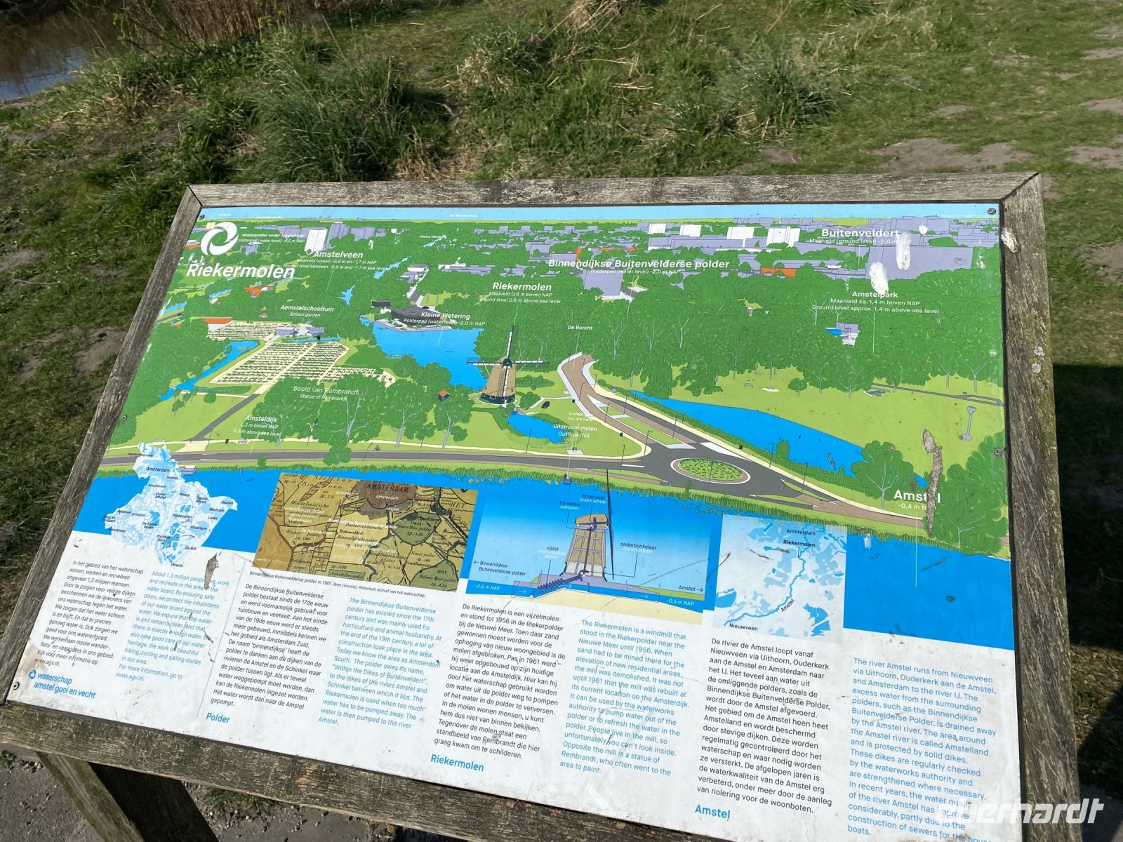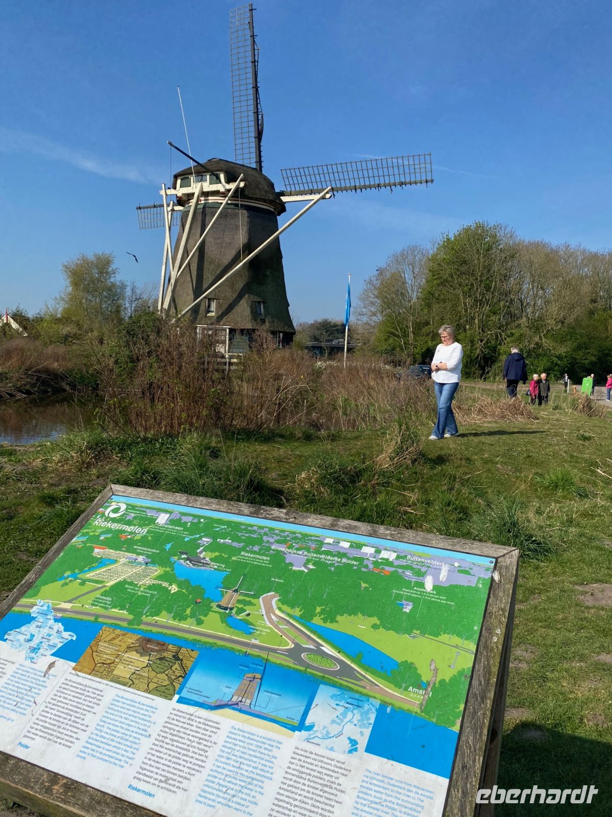Auf dem Weg passieren wir einen liebevoll angelegten Schulgarten Amsterdamer Kinder, bevor die Riekermühle aus dem Jahr 1636 ins Blickfeld rückt. Die einst zur Entwässerung der Polder genutzte Windmühle steht heute als Denkmal am Amstelufer und dient bei Sonnenschein als beliebtes Fotomotiv. Obwohl sie nur von außen zu besichtigen ist, fasziniert ihre historische Pracht – besonders, wenn sich die Flügel bei gutem Wind noch drehen.