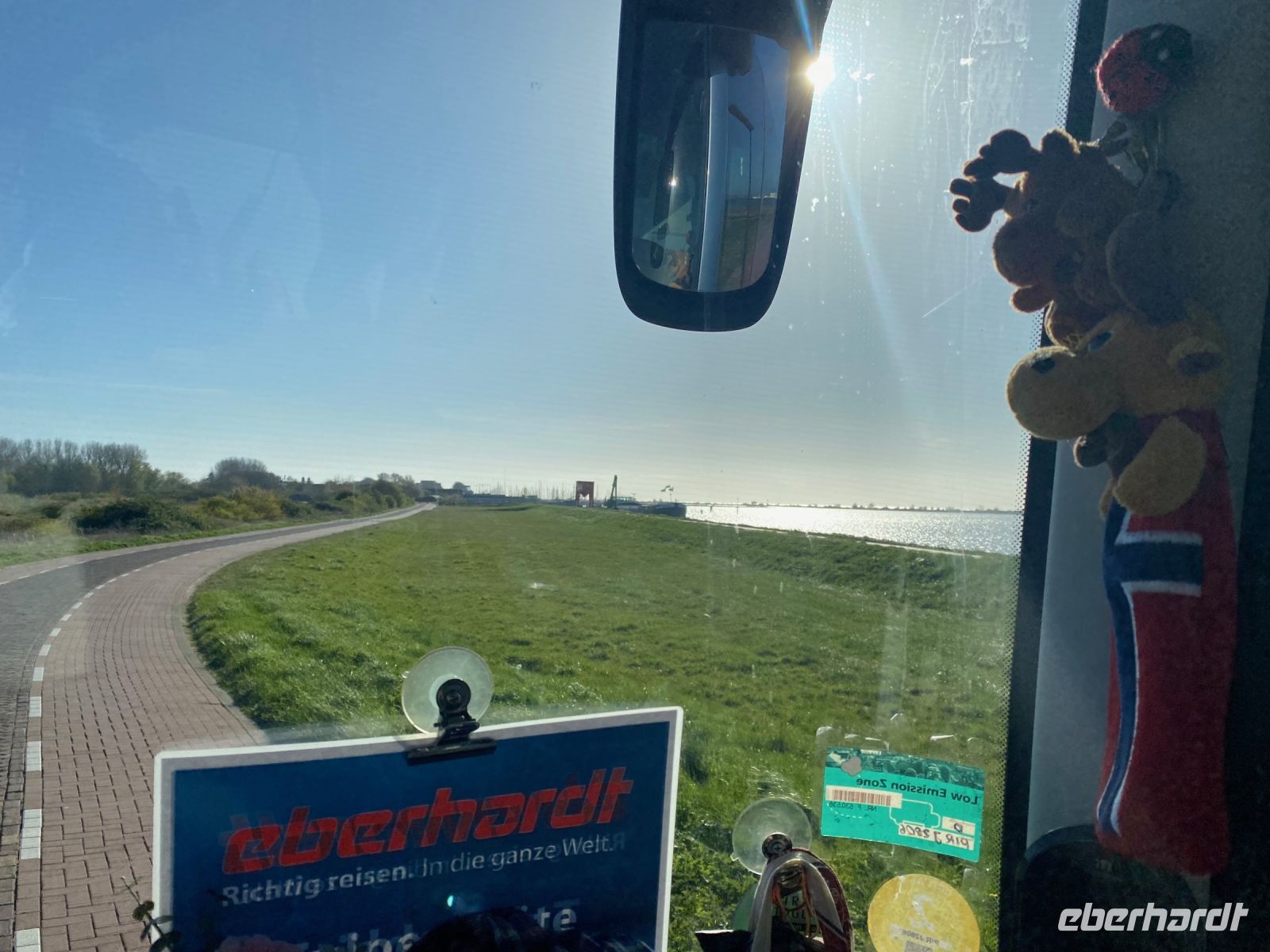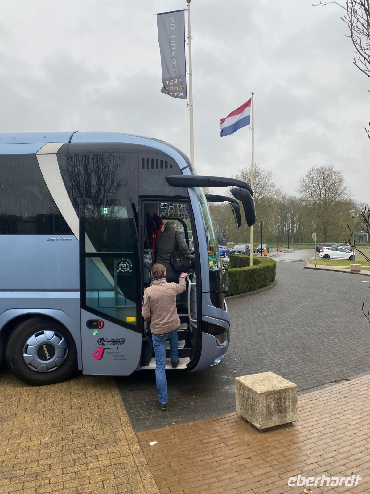 Auch wie nahe die Nordsee am Keukenhof liegt überrascht und verblüfft. Nach der sicheren Landung sammelt unser treuer Fahrer Uwe die Fliegertruppe an einer regulären Bushaltestelle auf dem Weg zum letzten Highlight des Tages – und der Reise – ein.