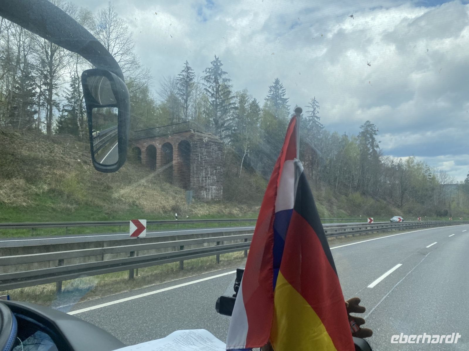 Unterwegs legen wir nur wenige kleine Pausen ein, als wir Thüringen bei strahlendem Sonnenschein erreichen, Hier gibt es eine große Mittagspause bei der Uwe in seiner Bordküche wieder alles aufbietet, was der hungrige Reisende begehren könnte. Eine schöne Gelegenheit, über die Erlebnisse der letzten Tage in Holland zu sprechen.