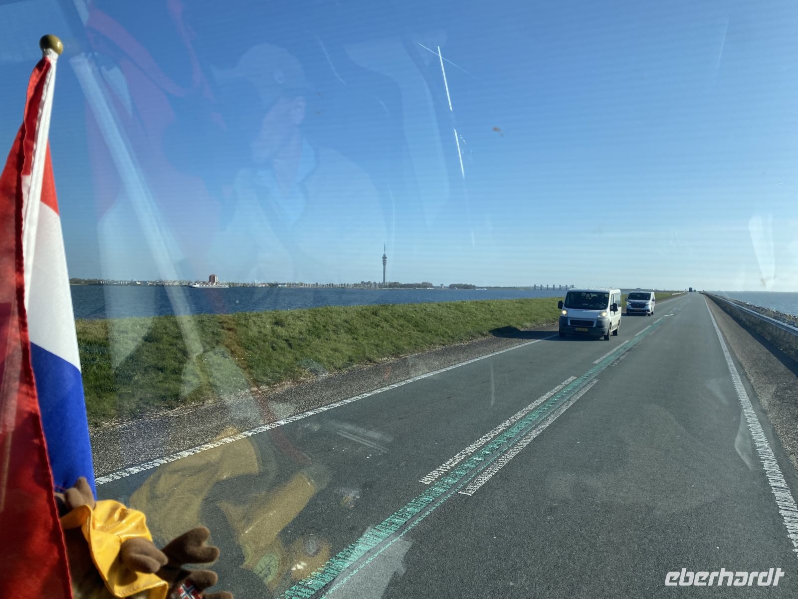 Von hier führt unsere Route nun über den imposanten Markerwaarddijk. Die 26 Kilometer lange Dammstraße bietet beeindruckende Ausblicke auf das IJsselmeer und das Markermeer zu beiden Seiten. Nach dieser etwas ungewöhnlichen Straße erreichen wir nun Lelystad.