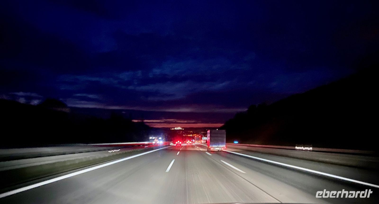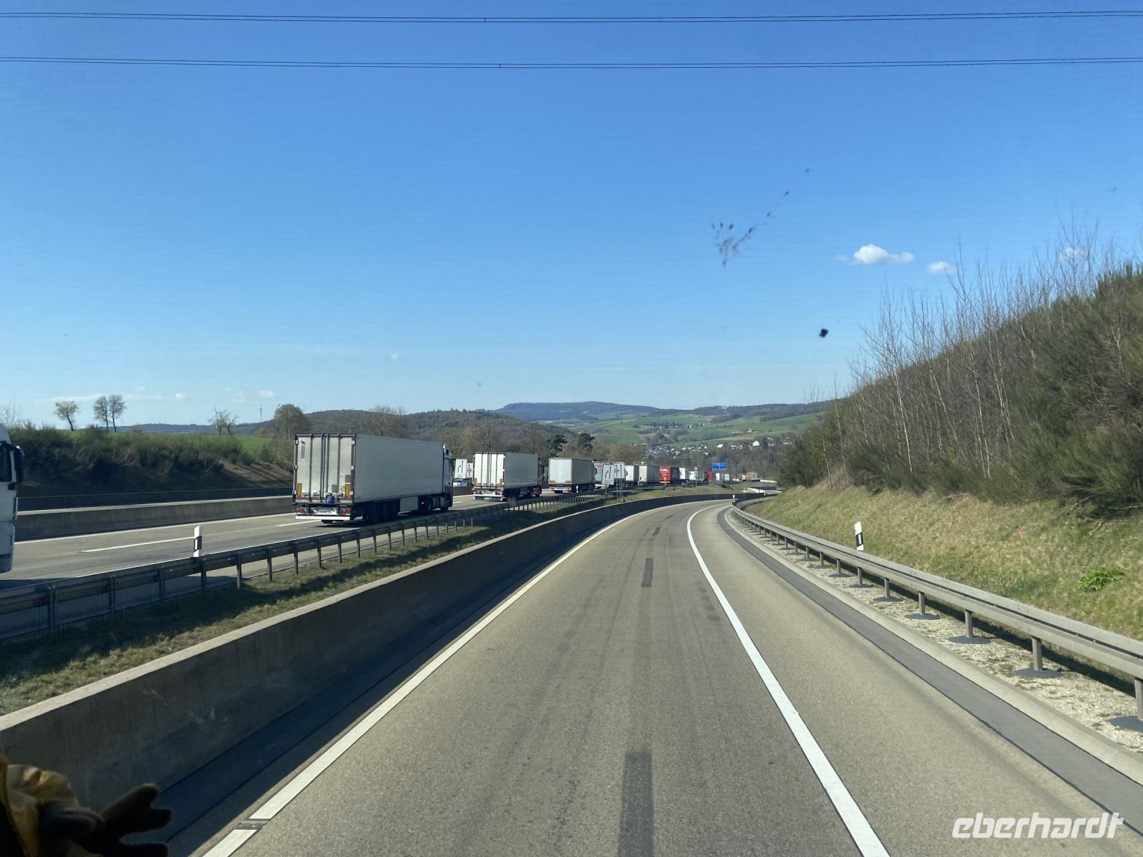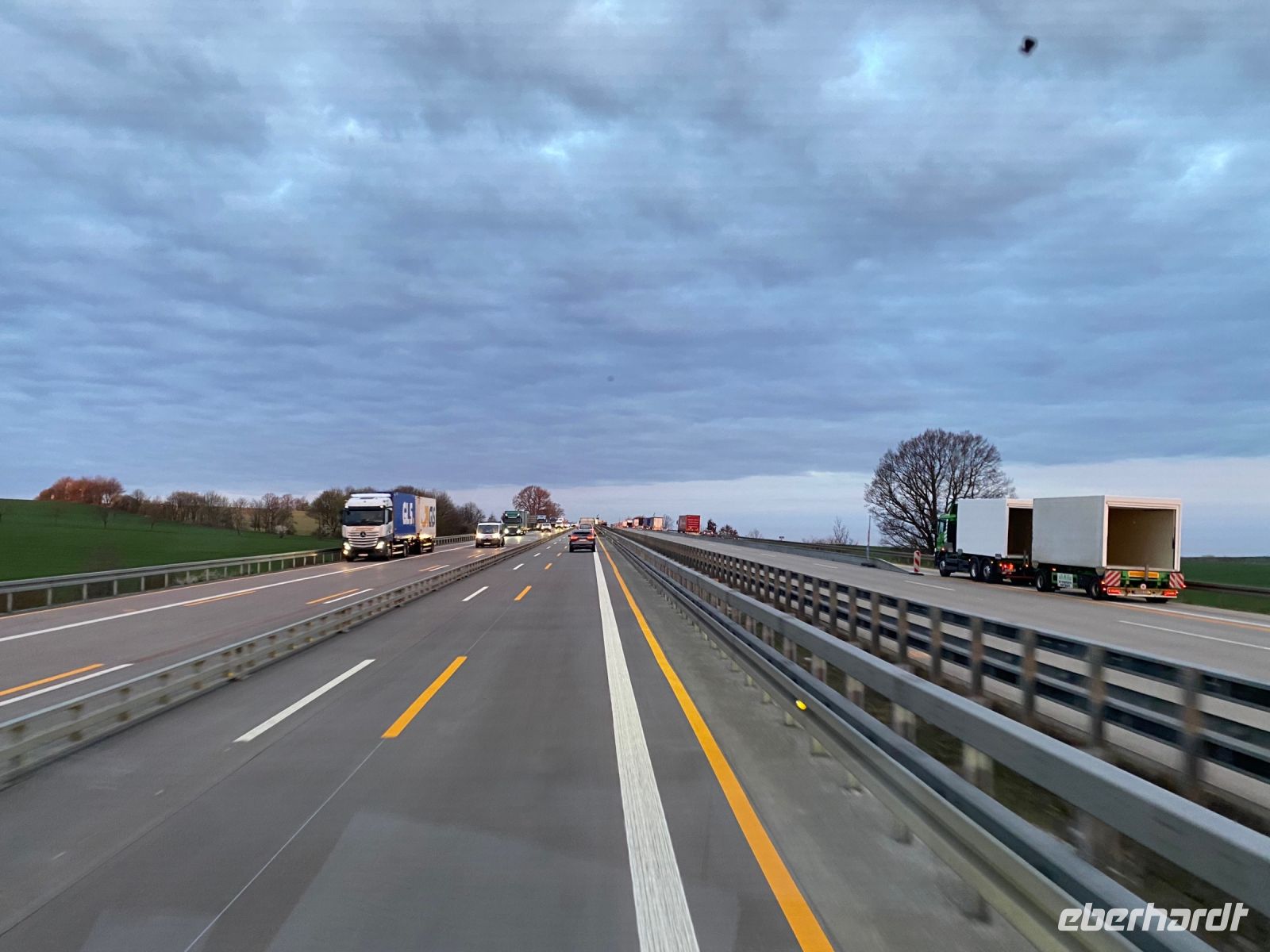 Es geht los, die Anreise führt uns quer durch Deutschland. Dank einer gut geplanten Route passieren wir alle Baustellen ganz ohne Stau und erreichen bald den Westen des Landes. Bei einer ersten Mittagspause genießen wir frisch servierte Würstchen und noch viel mehr aus Uwes umfassend sortierter Bordküche, dazu gibt es Getränke aller Art, insgesamt Kraftnahrung, die uns stärkt und für gute Laune sorgt!
