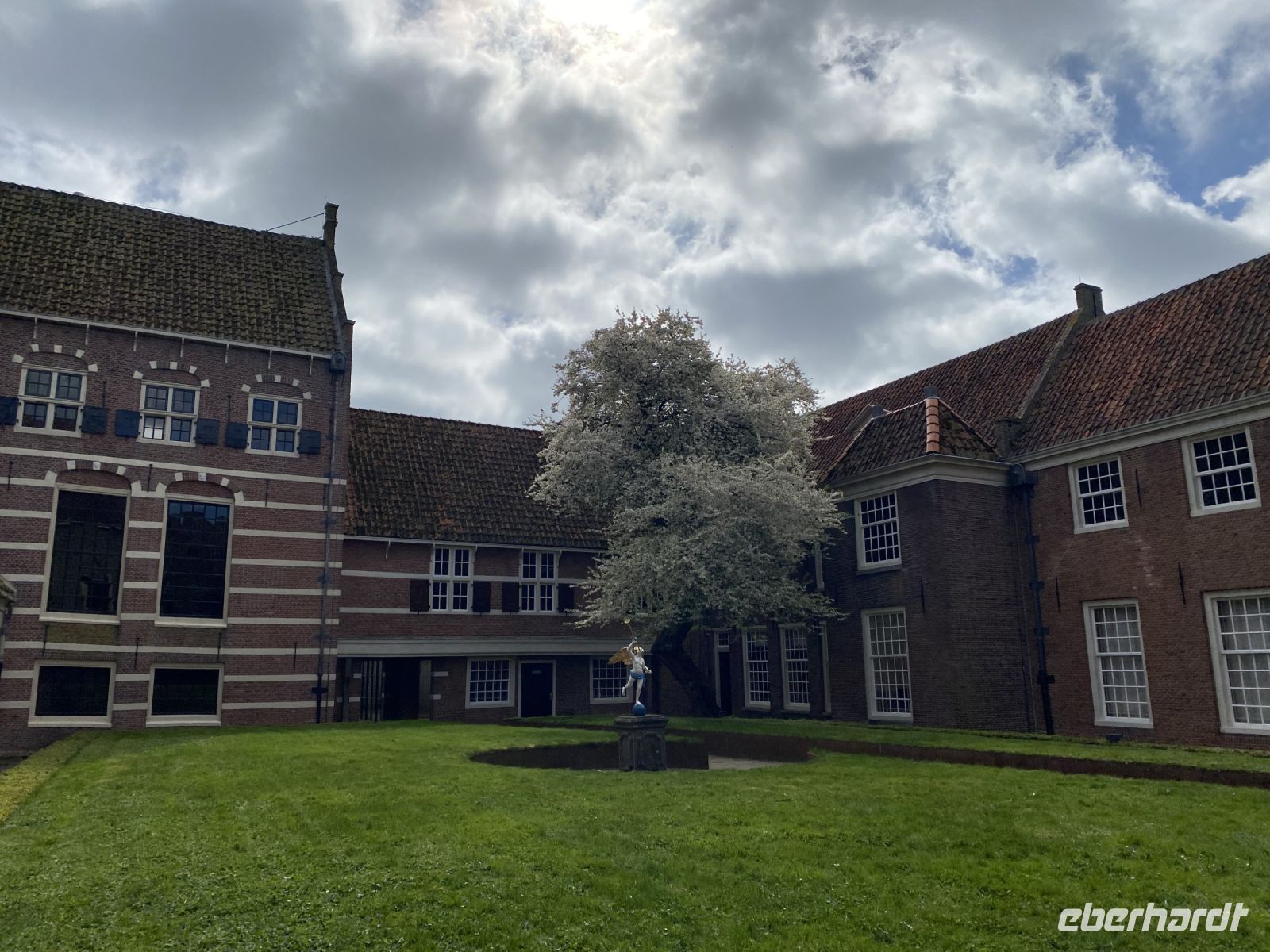 Schließlich erreichen wir unser elegantes und modern wirkendes Hotel Postillion, idyllisch gelegen an einem See, der einst ein Meer war und heute „Meer“ genannt wird. Die Worte See und Meer werden in Holland genau anders herum benutzt als bei uns. Diese sprachliche Nähe zwischen Holländisch und Deutsch ist faszinierend und wird uns in den nächsten Tagen immer wieder beschäftigen.