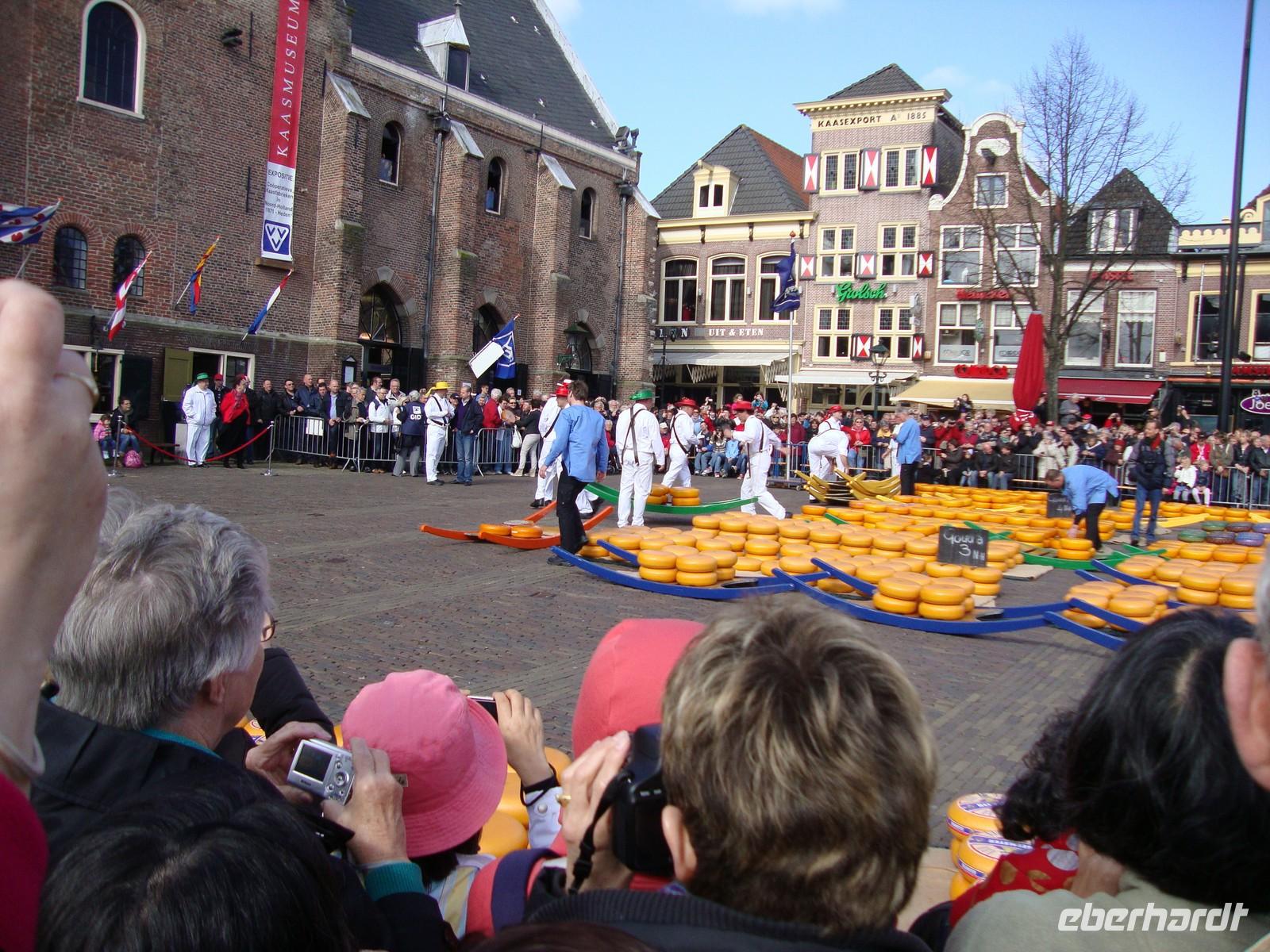 Heute war der Besuch des Käsemarktes in Alkmaar auf unserem Programm am Vormittag. Wir fuhren über den 32 km und 90m breiten Abschlußdamm, welcher im jahr 1932 fertiggestellt wurde Aus der offenen Nordseebucht Zuidersee wurde ein Binnengewässer, das fortan Ijselmeer hieß. Weiter ging unsere Fahrt nach Alkmaar in Noord-Holland. Sehenswert ist das Käsespektakel in der Altstadt, wenn Käseträger zur Stadtwaage am Markt eilen. jeden Freitag von mitte April bis Mitte September findet diese Attraktion statt.Auch wir waren vom Käse - Markt bei Sonnenschein begeisterte Zuschauer. Weiter ging unsere Fahrt zum weltbekannten Keukenhof bei Lisse. Er ist das Zentrum von Blumenliebhabern, wenn 8 Millionen die Anlage in einen Blumenteppich verwandeln. Auch wir konnten uns an der blühenden Pracht erfreuen. Zum Abschluß des Tages machten wir noch kurz Station beim Blumen - Zwiebel - Händler. Jeder Gast konnte für zu Hause Blumenzwiebeln mitnehmen. Auf der Rückfahrt zum Hotel hatte ich für alle Teilnehmer dieser Reise noch ein kleines Präsent, 10 Tulpenzwiebeln, besorgt. Alle waren darüber sehr erfreut.