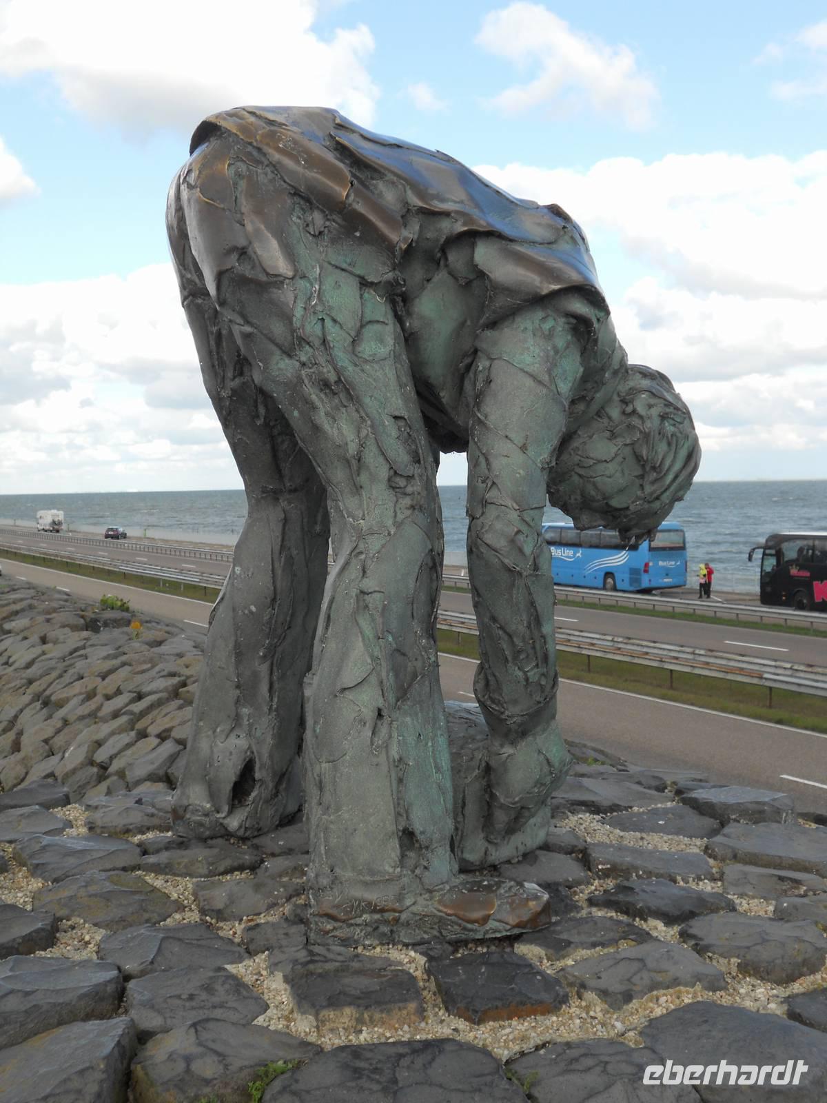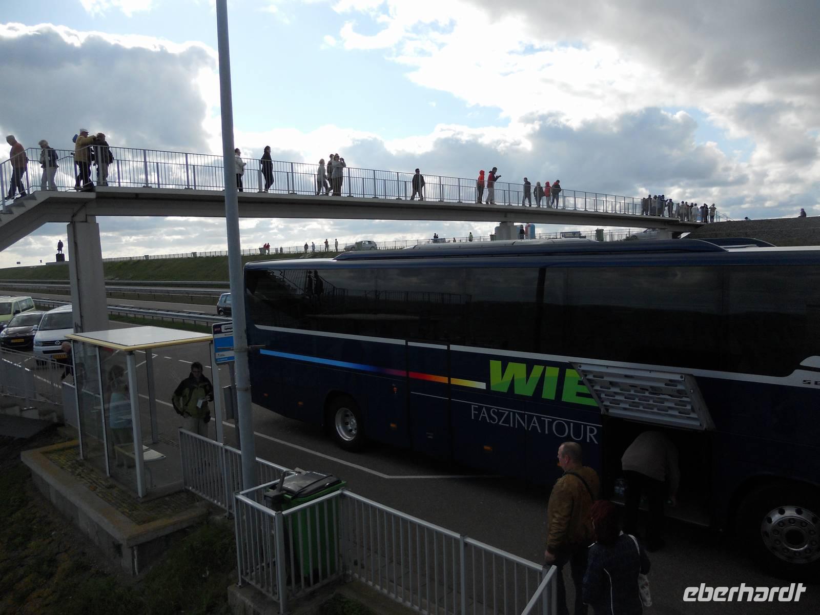 Unsere Rückfahrtstrecke nahmen wir dann über den sogenannten Abschlussdeich. Hier konnte man bei peitschendem Sturm auf der Deichkrone etwas Besonderes erleben: den Blick zum offenen Meer und gleichzeitig zum heutigen Binnengewässer, dem Ijsselmeer. Und hier auf der Deichkrone konnte man auch ein wenig nachempfinden, was für eine Leistung der Ingenieure und Bauarbeiter hinter diesem Deichbau stecken mochte!