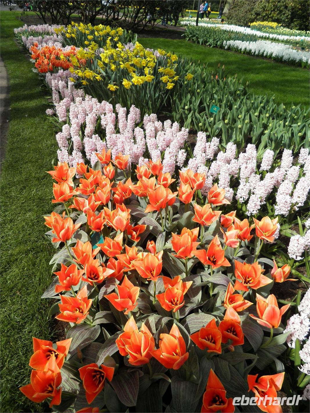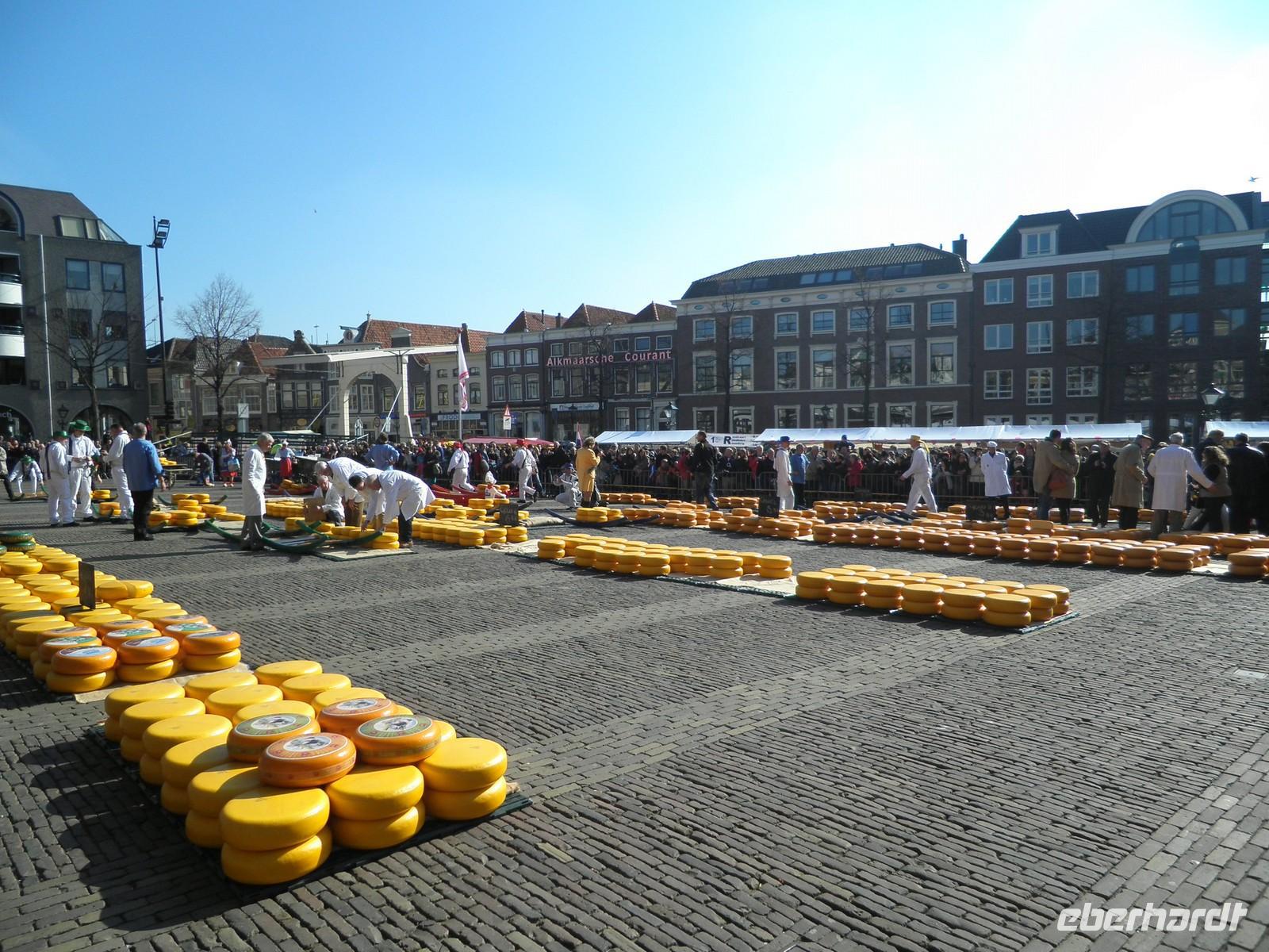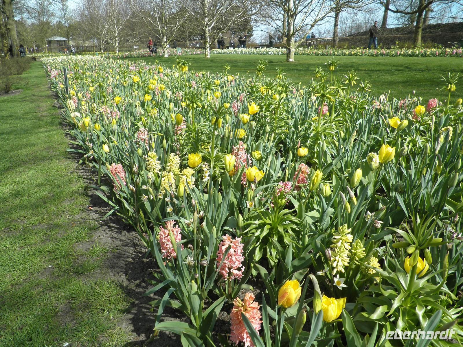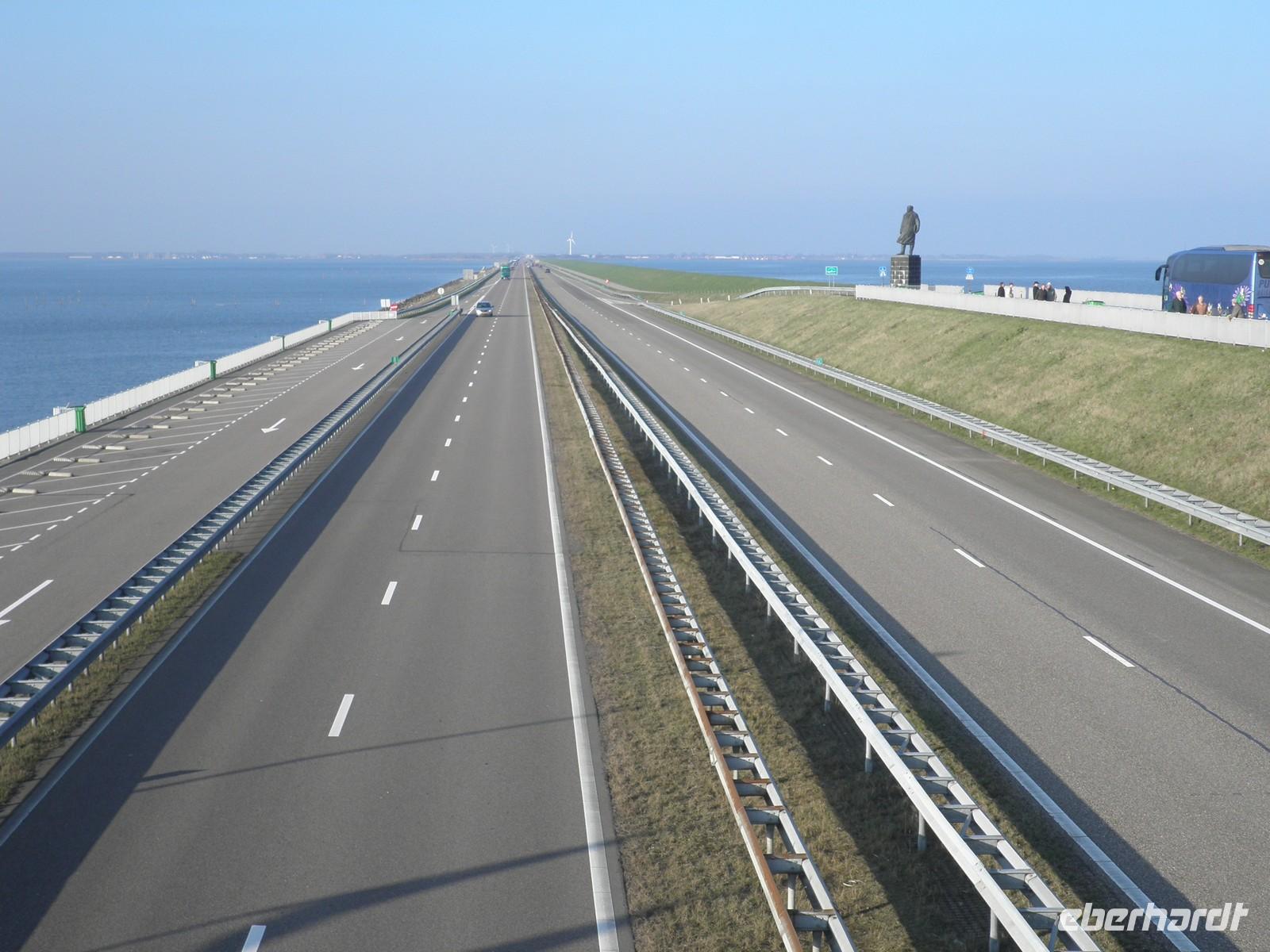 1. Tag: Donnerstag - Anreise Bei etwas trüben Wetter, das uns auch ein paar Tropfen Regen bescherte, ging es am frühen Morgen ab Dresden los. Unterwegs in Richtung Westen hielt unser Bus noch mehrmals an und nahm weitere Reisegäste auf, bis wir ab Neudietendorf alle beisammen waren und unsere Osterreise in die Niederlande beginnen konnte. Die Fahrt verlief reibungslos, wir durchquerten sogar das Ruhrgebiet ohne Probleme auf den Straßen. So kamen wir am späten Nachmittag schon an unserem Hotel Haje Joure in der niederländischen Provinz Friesland an. Kurz zuvor waren wir über den Nordoostpolder gefahren, und hatten den ersten Eindruck davon gewonnen, welche gigantischen Leistungen das Land beim Deichbau und damit dem Gewinn von neuem Land aus der Nordsee vollbracht hat und weiterhin vollbringt. Der Nordoospolder ist ein Gebiet, das einzig und allein durch den Menschen als Land existiert und vorher komplett unter Wasser gelegen hatte. 2. Tag: Freitag - Abschlussdeich, Käsemarkt Alkmaar, Keukenhof Wir wurden geweckt von strahlendem Sonnenschein, der uns aus unseren Betten lockte. Gestärkt von einem guten Frühstück stiegen wir in unseren Bus und waren doch überrascht, dass es trotz der Sonnenstrahlen noch ziemlich kalt war. Unsere Fahrt begann und wir verließen das "Festland" und kamen zum Abschlussdeich, einem gewaltigen Deichbauprojekt. Entlang des Deiches führt eine mehrspurige Schnellstraße, natürlich auch breite bequeme Fahrradwege, die schon an diesem Morgen gut befahren waren. Der Deich ist etwa 30 km lang, an der Stelle, an der die letzte Lücke im Deich geschlossen worden war, steht ein Denkmal für den Wasserbauingeneur Lely. Nur durch seine Berechnungen war es möglich, dieses gewaltige Projekt zu realisieren, er ist somit der "Vater des Abschlussdeiches", auf den die Niederländer zu Recht stolz sind. Auf einer Fußgängerbrücke kann man die Autobahn überqueren und ein Monument zu Ehren der Erbauer des Deiches besteigen. Von dort oben hat man einen schönen Blick über das Wattenmeer und das Jisselmeer.