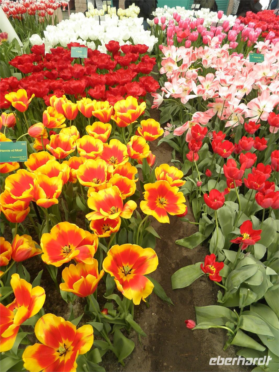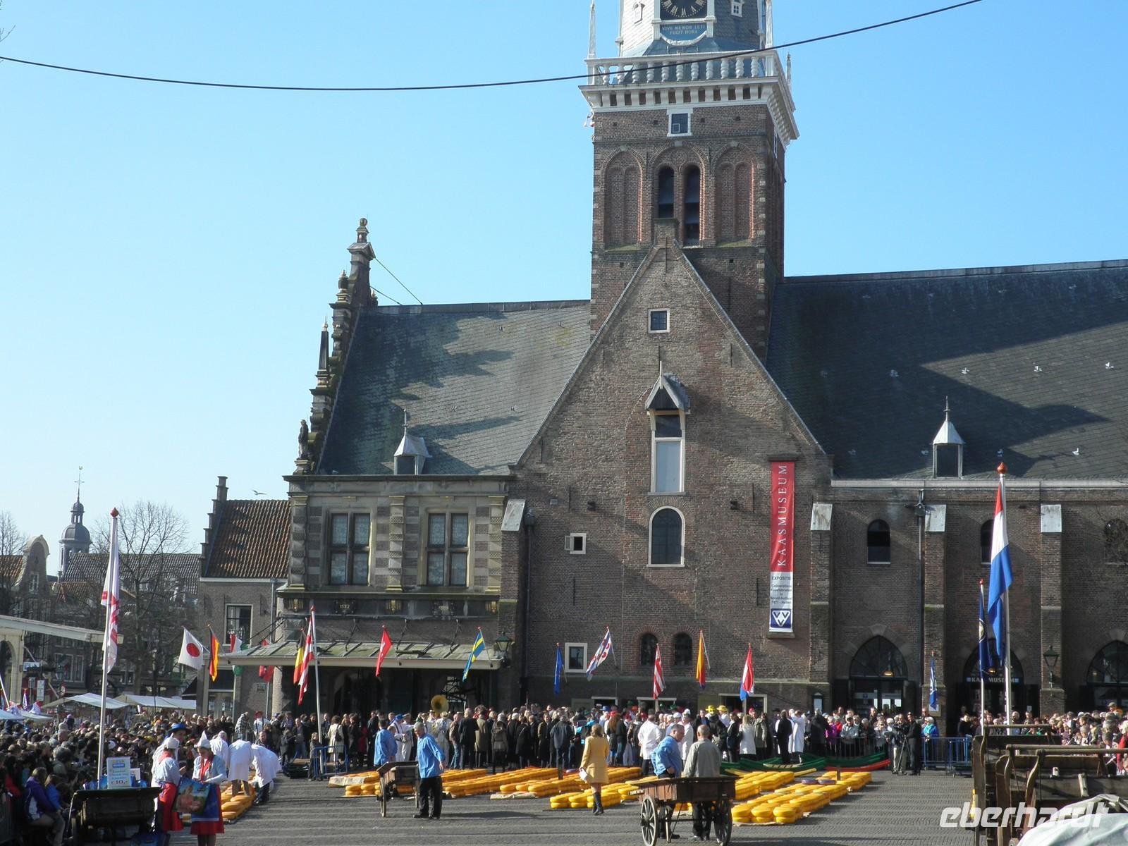 Unsere nächste Station war die typisch holländische Stadt Alkmaar. Wir stiegen in der Nähe des Waagplein (Waagplatz) aus dem Bus und erreichten nach ein paar Schritten schon den Käsemarkt. Gelb lechteten die Käseleibe in der Sonne. Die Stapler hatten sie in Reih und Glied auf dem Pflaster des Waagplein aufgestapelt. Punkt 10 Uhr läutete eine Glocke und das Marktgeschehen begann. Eine Dame im Kostüm moderierte das Markttreiben und erklärte den Besuchern, was genau geschah. Ernst dreinblickende Männer in weißen Kitteln begutachteten die Ware, es wurde gefachsimpelt und gefeilscht. War man sich handelseinig geworden und hatte den Kauf per Handschlag besiegelt, luden die Stapler die verkauften Käseleibe auf die Schlitten der Träger der Käsegilde. Diese Träger waren weiß gekleidet und nur durch die Farbe ihrer Strohutes ihrer entsprechenden Gilde zuzuordnen. Sobald der Käse umgeladen war, flitzen die Träger mit der Ware in Richtung Waaghaus. Dort wurden die Laibe gewogen auf ganz alten Eisenwaagen bevor sie letztendlich zum Transportmittel des Käufers gebracht wurden. Ein lustiges Spektakel, das uns Beobachtern einen guten Einblick in die Tradition des Käsehandels Hollands geben konnte. Rund um den Waagplein gibt es natürlich Geschäfte mit Käse und anderen Souvenirs, wie Holzschuhen in allen Farben und Größen, Delfter Kacheln, Tulpenzwiebeln und vieles mehr. Gegen Mittag verließen wir die Stadt des Käses und begaben uns auf die Spur der Blumen. Holland ist neben dem Käse ja auch berühmt für Blumen, besonders für die, die aus Zwiebeln heraus ihre Pracht entfalten. Eine besondere Adresse dafür ist in den Niederlanden der Keukenhof, der ehemalige Küchen- und Kräutergarten eines Schlosses. Heute öffnet der Keukenhof für etwa 2 Monate im Frühjahr seine Pforten. Wir wanderten durch bunte Wiesen mit Narzissen, Tulpen, Hyazinthen, die ersten farbenfrohen Boten des Frühlings. In Hallen werden den Besuchern Orchideen und Rosen und Kreationen mit diesen Blumen gezeigt. Nach einem abwechslungsreichen und wunderschönem Tag mit reichlich Sonnenschein erreichten wir unser Hotel am frühen Abend. 3. Tag: Sonnabend - Amsterdam - Stadtrundfahrt, Grachtenrundfahrt, Bummeln