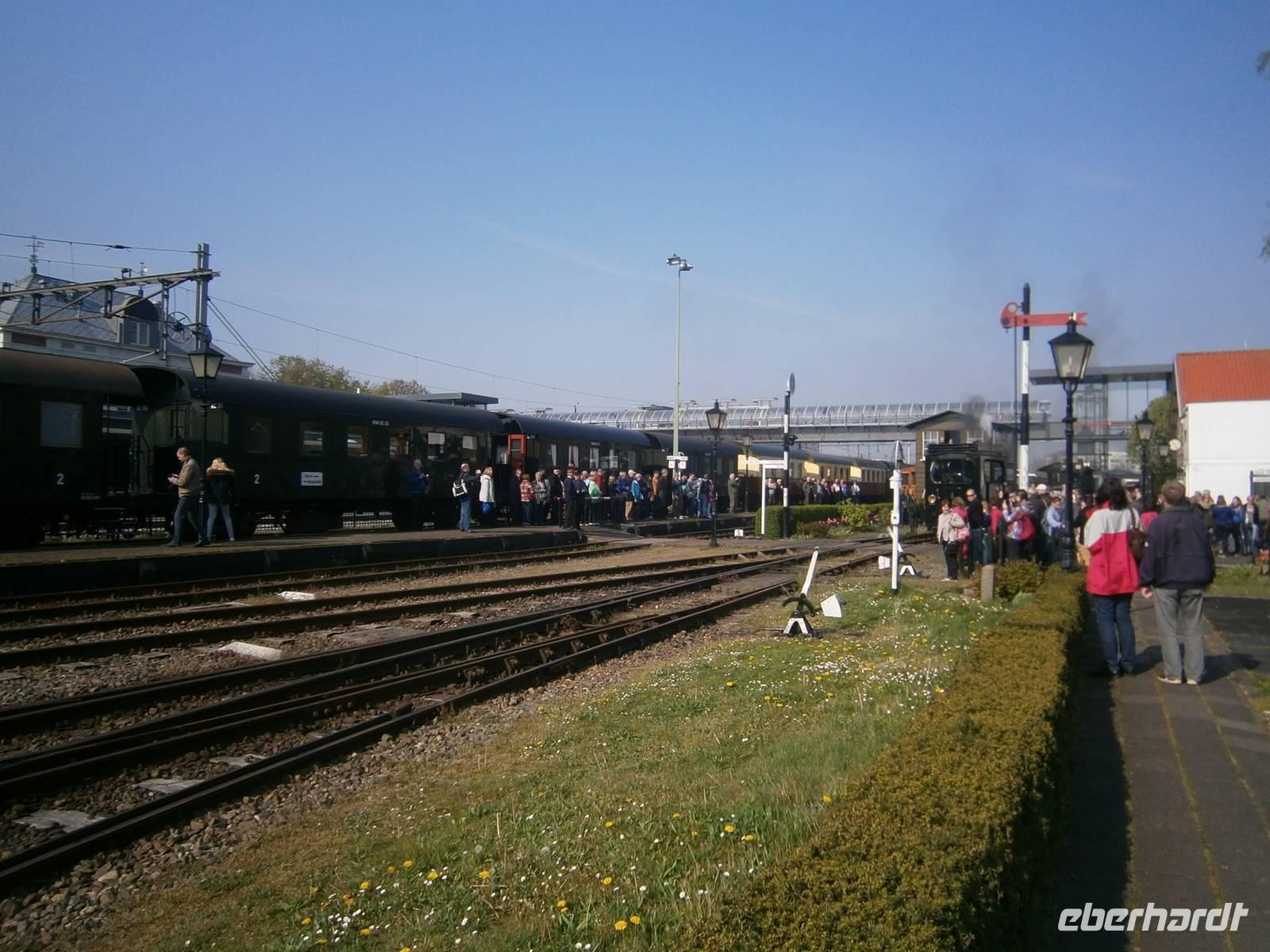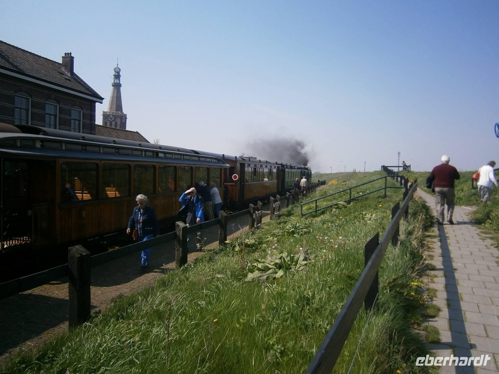 Der Ostersonntag begann mit einer kleinen Osterüberraschung für die Gäste in unserem Bus. Kleine Schokoladentäfelchen mit Motiven von Rembrandt und Vermeer, den bekannten niederländischen Malern, wurden an jeden Gast überreicht.Dann fuhren wir in die Provinz Nordholland nach Hoorn, dem Geburtsort von Willem Schouten, der 1616 die Südspitze von Amerika umsegelte und sie nach seiner Vaterstadt benannte. Mit einem Zug, der von einer alten, sehr gut gepflegten Dampflok gezogen wurde, fuhren wir nach Medemblik, dem ältesten Ort Westfrieslands. In der Nähe des Bahnhofs lag bereits das MS „Friesland", das die Gruppe und viele andere Gäste zum Freilichtmuseum Enkhuizen schipperte. Das sog. Zuidersee-Museum bot an diesem Tage eine Reihe von Möglichkeiten, um sich die Zeit zu vertreiben. Viele alte Handwerke wurden gezeigt, so u.a. Hufbeschlag von Pferden, eine alte Schmiede, eine Gerberei, eine Seilmacherei, eine Fleischerei, Korbmacherei, Böttcherei und anderes mehr. In einer Fischräucherei konnte man frisch geräucherten Aal und Hering verzehren. In alten Geschäften konnte man viele Dinge käuflich erwerben. Vor allem auch an die Familien wurde gedacht. So waren viele lebende Osterhasen unterwegs, die Süßigkeiten u.a. für die Kinder, die zahlreich erschienen waren, dabei hatten.Nach dem Besuch des Museums fuhren wir mit einer Fähre zum Bahnhof von Enkhuizen, einer kleinen idyllischen Hafenstadt am Ijsselmeer. Dort wartete schon unser Bus, der uns zum Hotel zurück brachte.