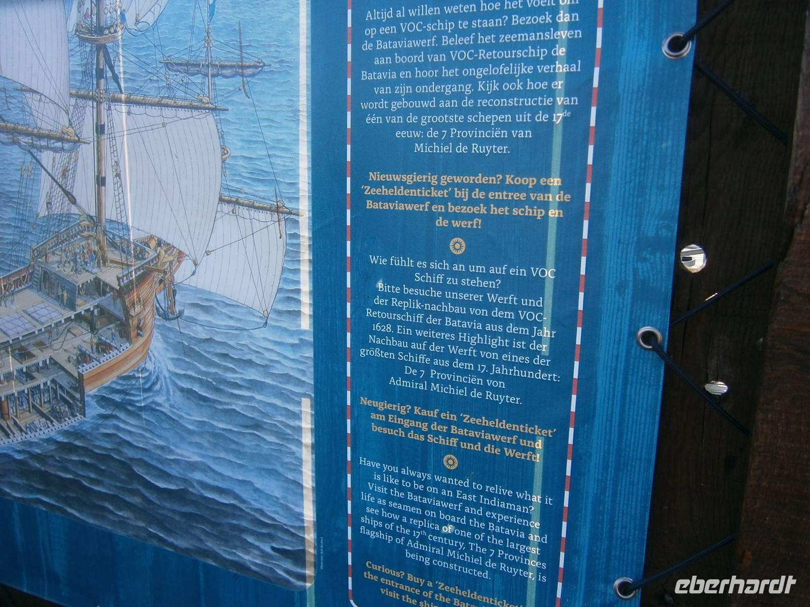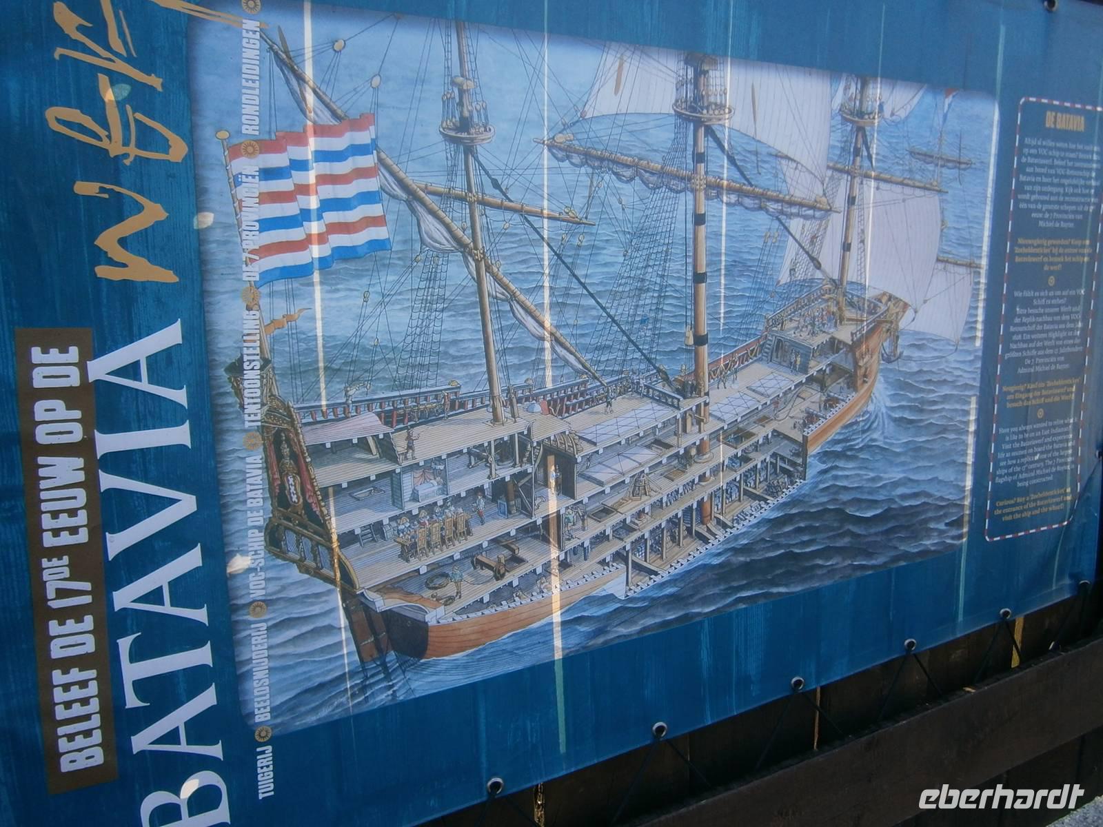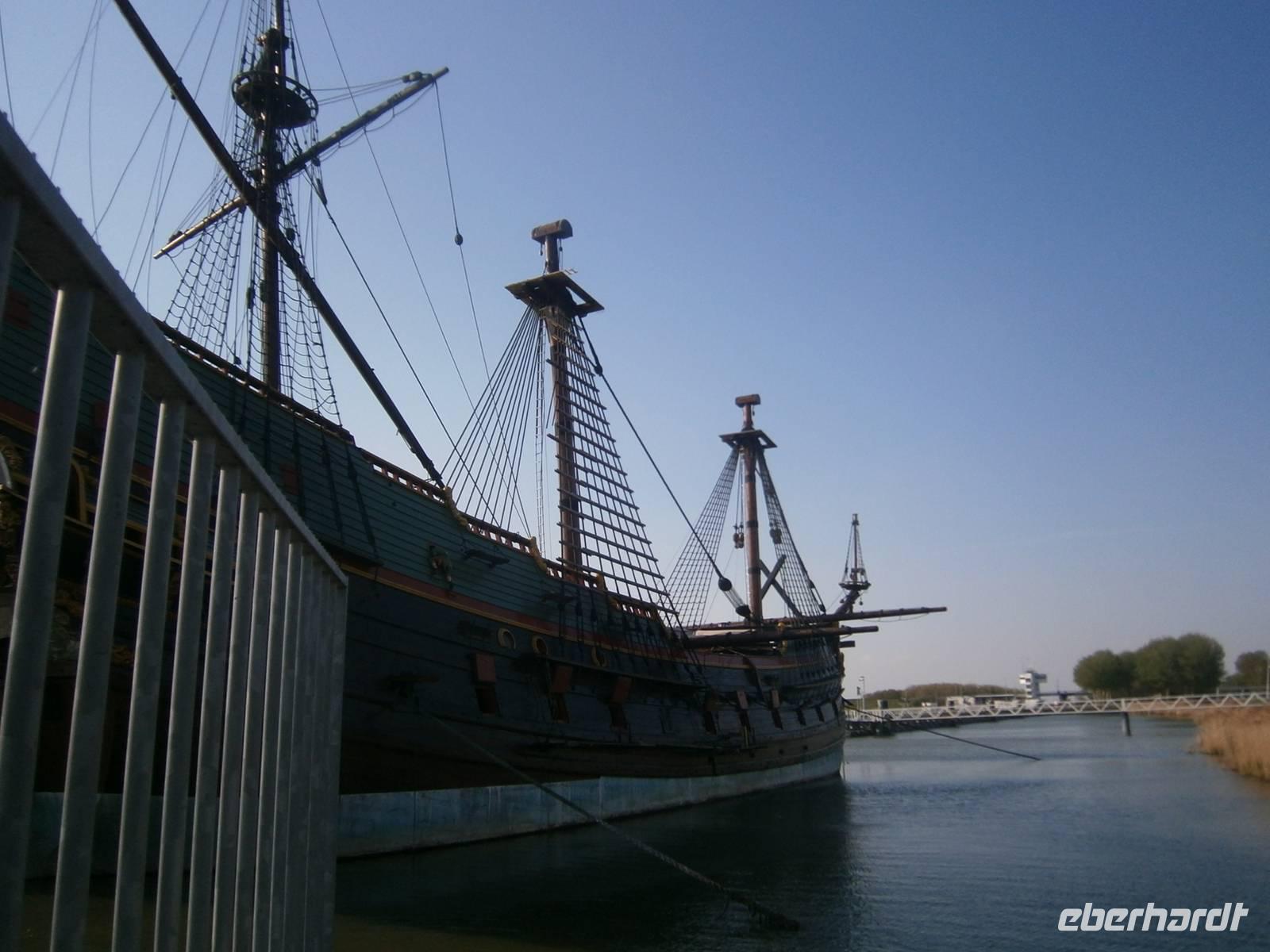 Die Rückfahrt erfolgte von Enkhuizen nach Lelystad über den „Markerwarderdijk", der das Ijsselmeer vom Markermeer trennt. Am rekonstruierten historischen Schiff „Batavia" von1628, das einst bis Australien fuhr, erfolgte ein letzter Fotostop bei dieser Reise.