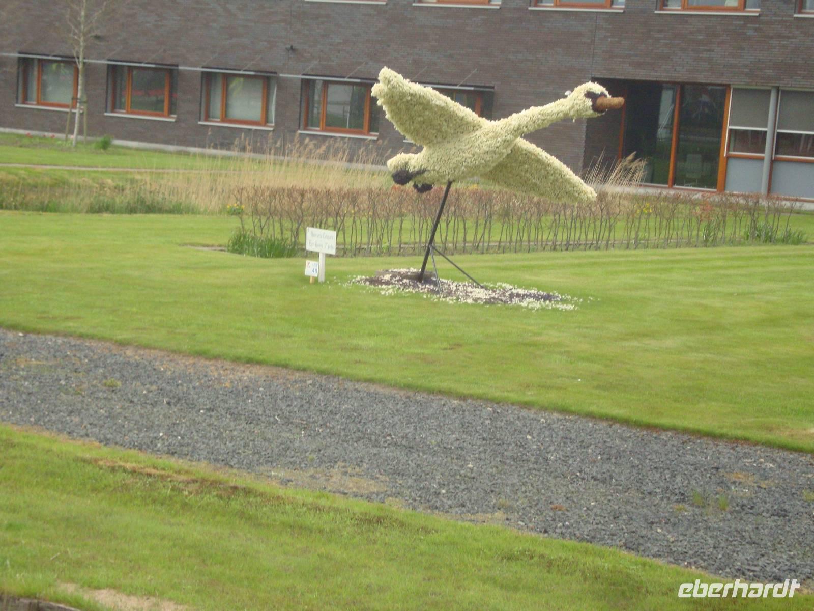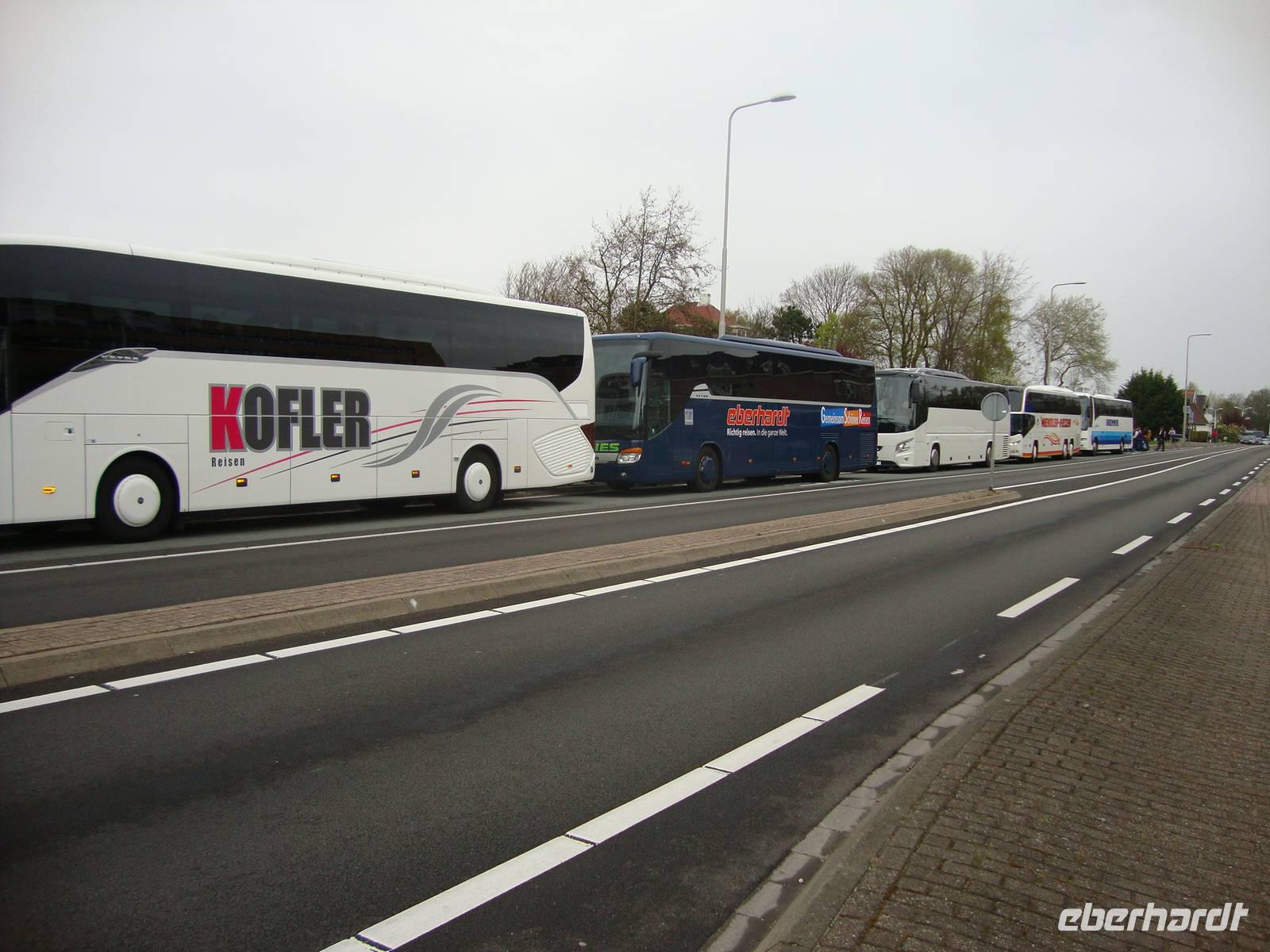 Insgesamt 4 Reisebusse traten am Morgen die Reise in unser Nachbarland an, um als Höhepunkt den prächtigen Blumencorso zu erleben. Die Anreise verlief ohne Störungen, quer durch das schöne Thüringen mit seinen beachtenswerten Sehenswürdigkeiten. Die Gäste aus Pforzheim waren schon an der Raststätte Reinhardshain als wir gegen Mittag dort eintrafen und damit war unsere Reisegruppe vollzählig, insgesamt 38 Personen und für alle verteile ich das appetitliche Lunchpaket. Nach einem kurzen Tankstop an der Raststätte "Resser Mark" erreichen wir die Grenze. Die Stadt Arnhem, auch bekannt durch den Film "Die Brücke von Arnheim" passieren wir am frühen Nachmittag. Nun ist es nicht mehr weit bis Apeldoorn, unseren Übernachtungsort für die nächsten 4 Tage. Nach der Begrüßung im Hotel und dem Bezug unserer Zimmer nahmen wir das Abendessen als 3-Gang-Menü, welches sehr schmackhaft war, ein. Sodann endete der lange Tag der Anreise.