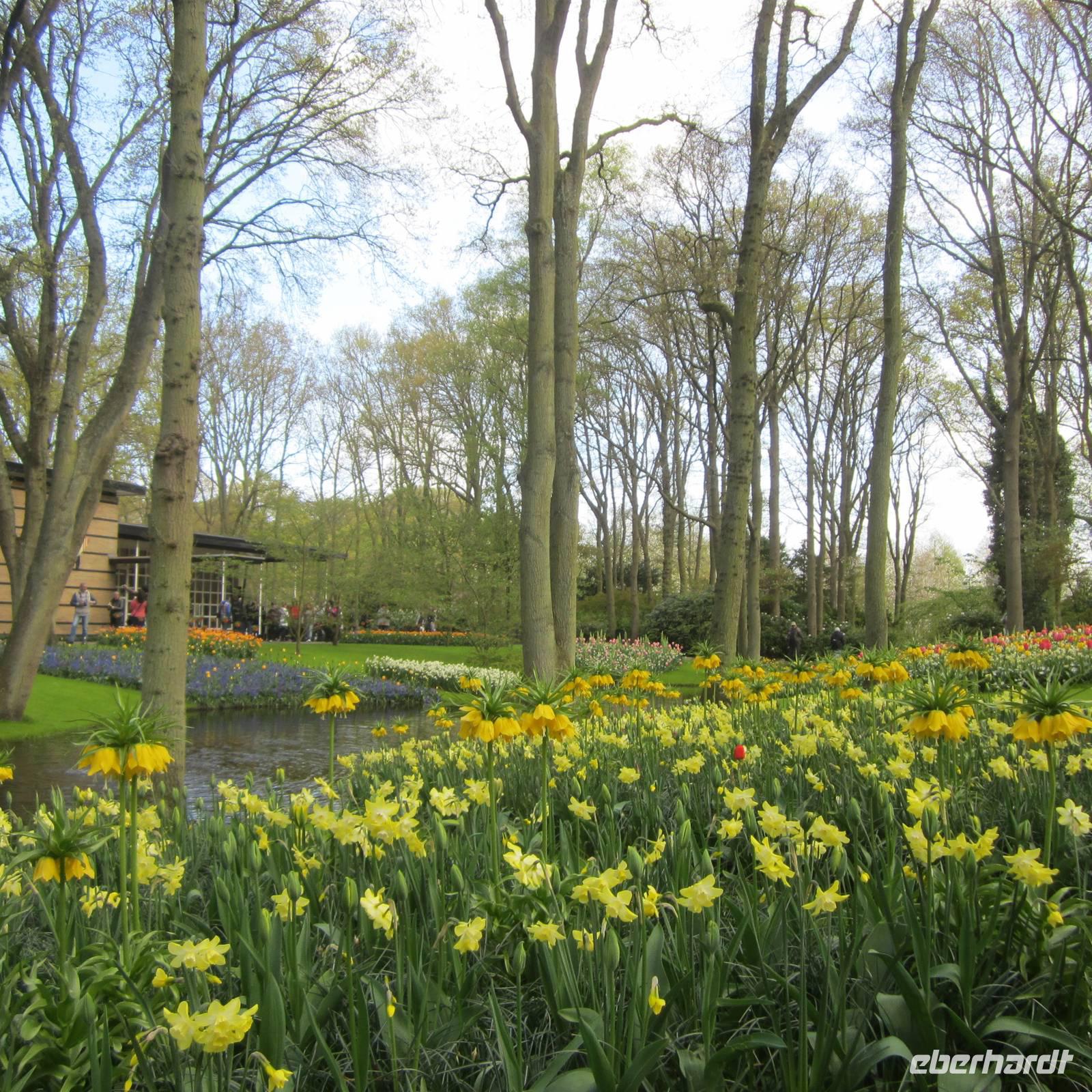 Hier blühen Meere von Tulpen, Narzissen, Traubenhyazinthen. In diesem Jahr steht die Blumenausstellung ganz im Zeichen des Künstlers Vincent von Gogh. Höhepunkt ist ein 250 Quadratmeter großes Porträt des Künstlers-bestehend aus 60.000 Tulpen. Neben dem Porträt aus Tulpen ist dieses Jahr auch erstmals die Tulipa Vinsent van Gogh, eine gefranste rotbraune Tulpe, zu bewundern. Bei unserem Spaziergang konnten wir  mehreren Malern über die Schulter schauen und beobachten, wie sie sich von der Umgebung inspirieren lassen.